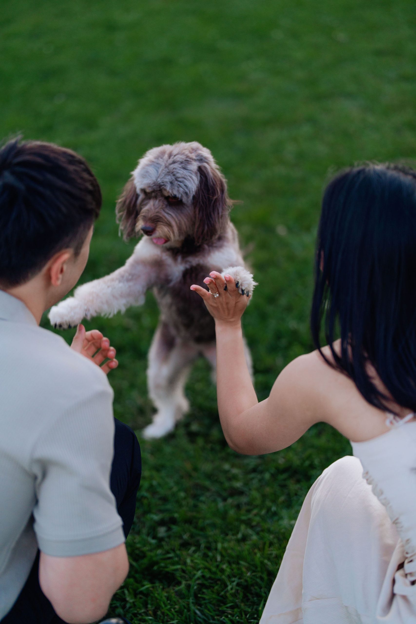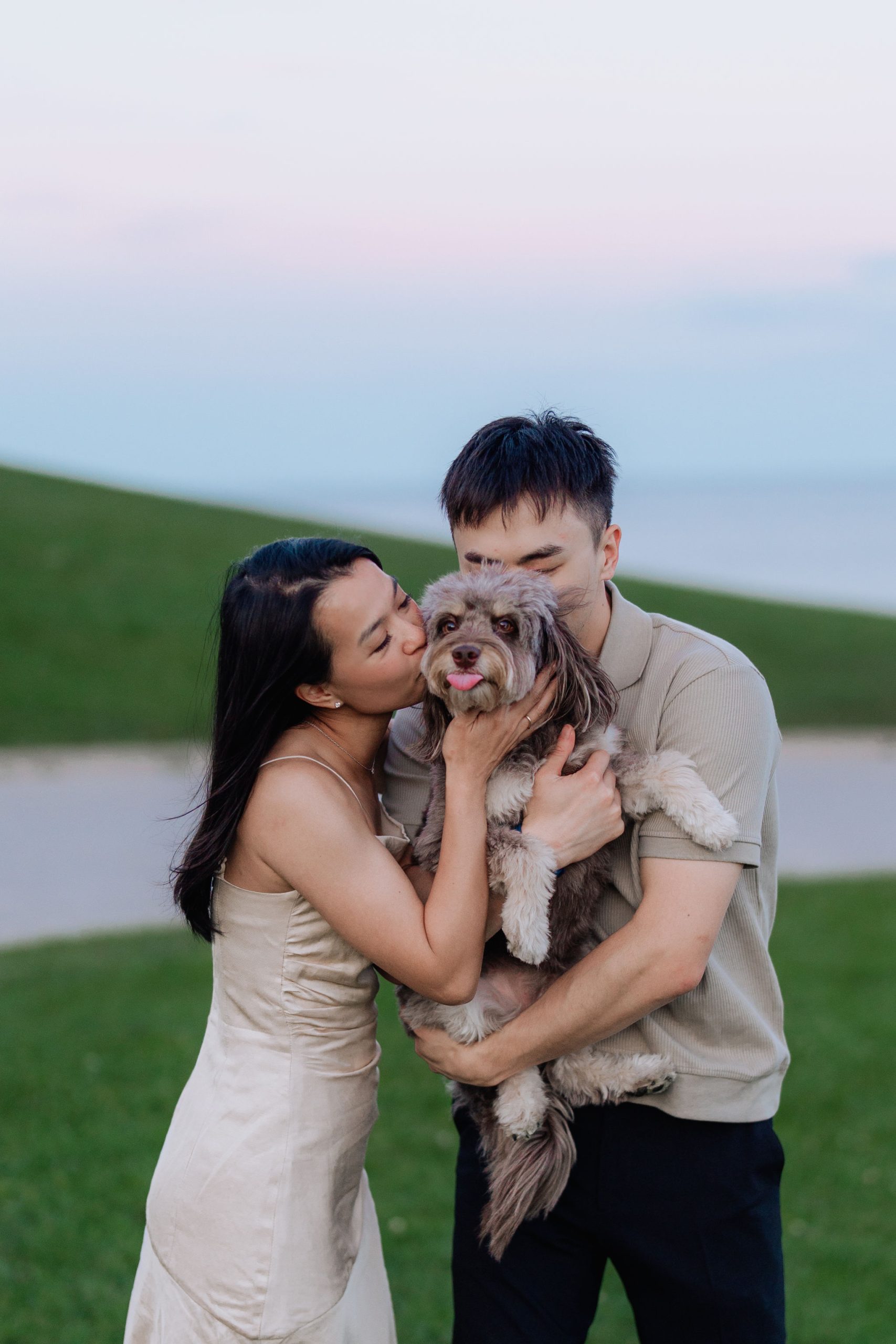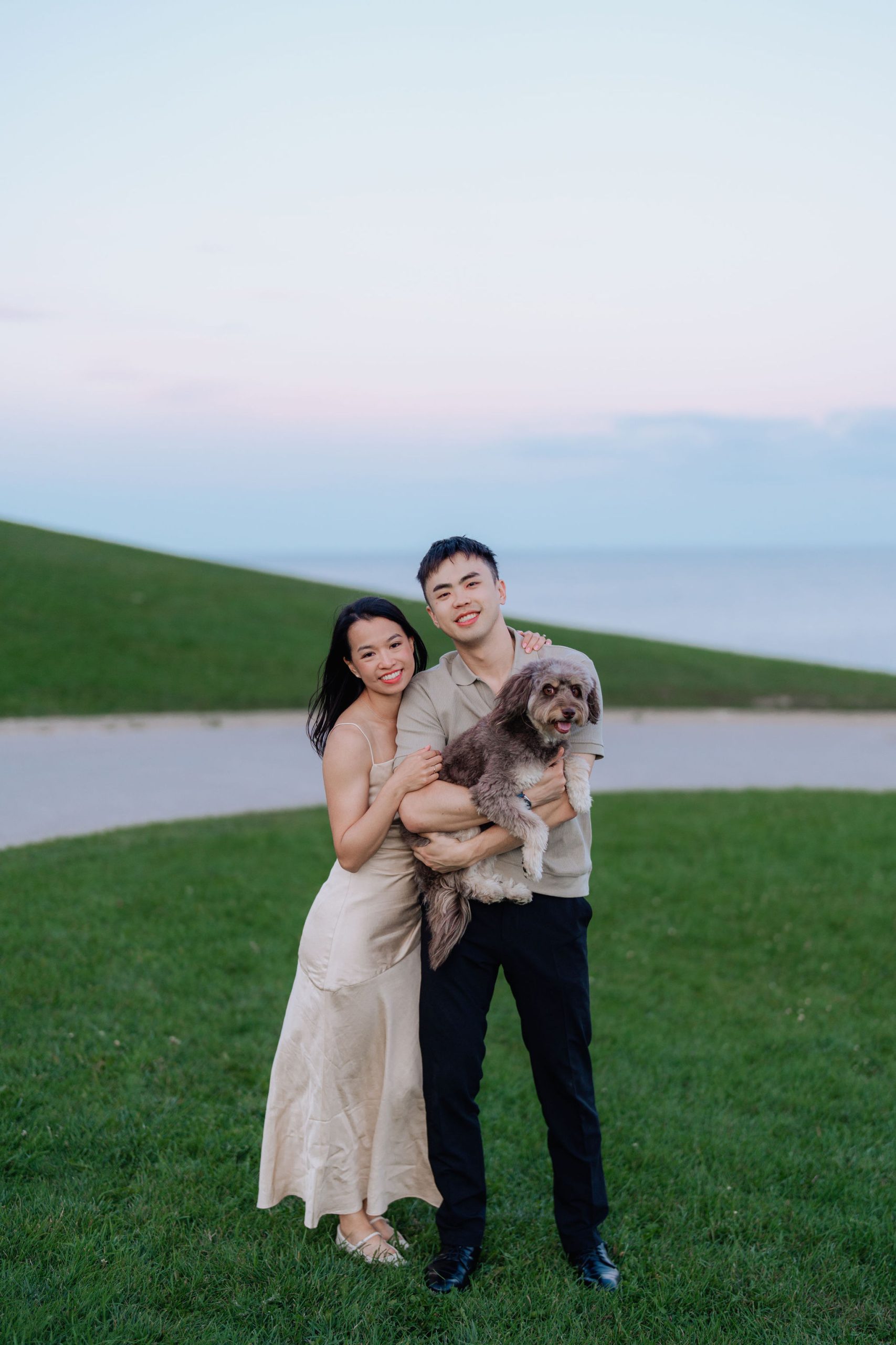 For the outdoor shoot, they wanted their pet dog to be a part of the pictures as well. And so for the rest of the afternoon, they kept running around and playing with their dog. Everything looked gorgeous. The sun was setting, the sky barely had any clouds, and the three of them looked like one happy, little family.