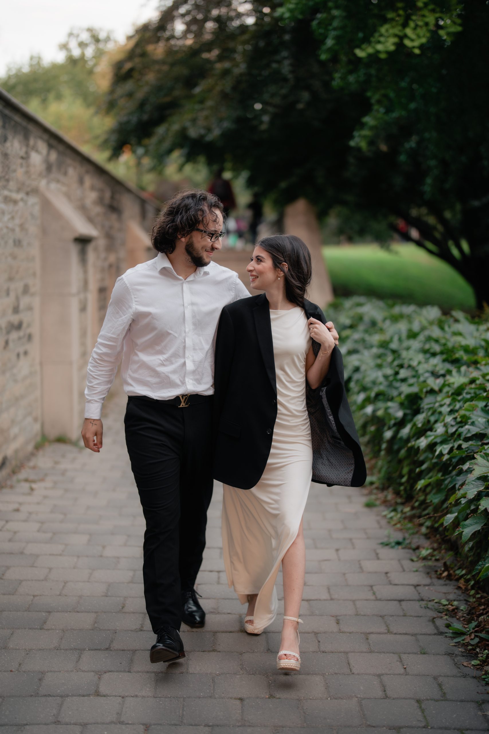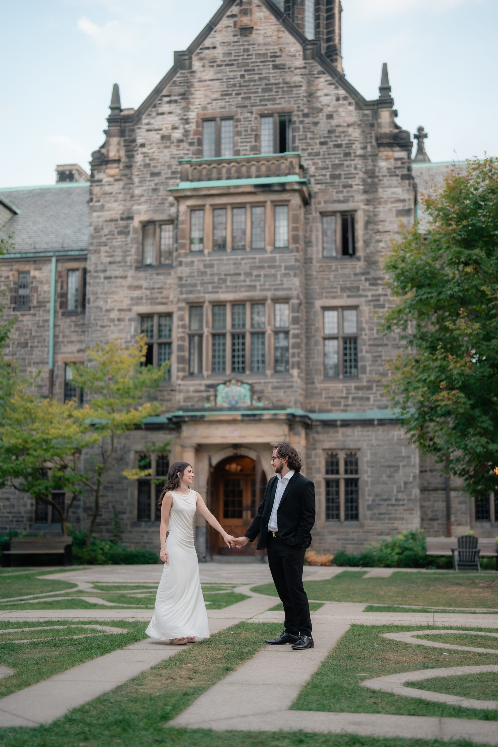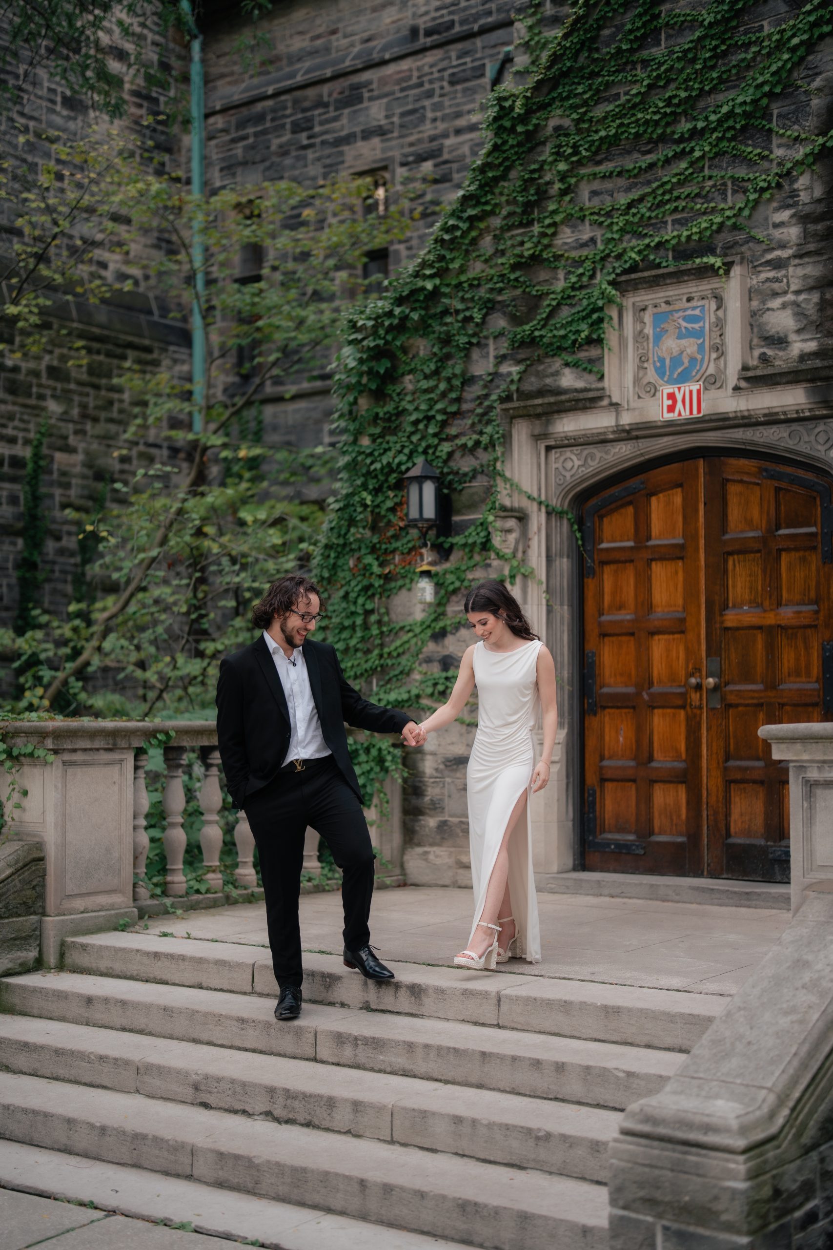 At Casa Loma, Daniel and Julia wanted to opt for a more classy shoot. They dressed up in formal clothes. When I saw Julia’s stunning dress, I knew I had to do close-up shots of every detail, especially the beaded dates on the back of it. That was such a sweet touch, and I couldn’t stop myself from gushing over the two of them.