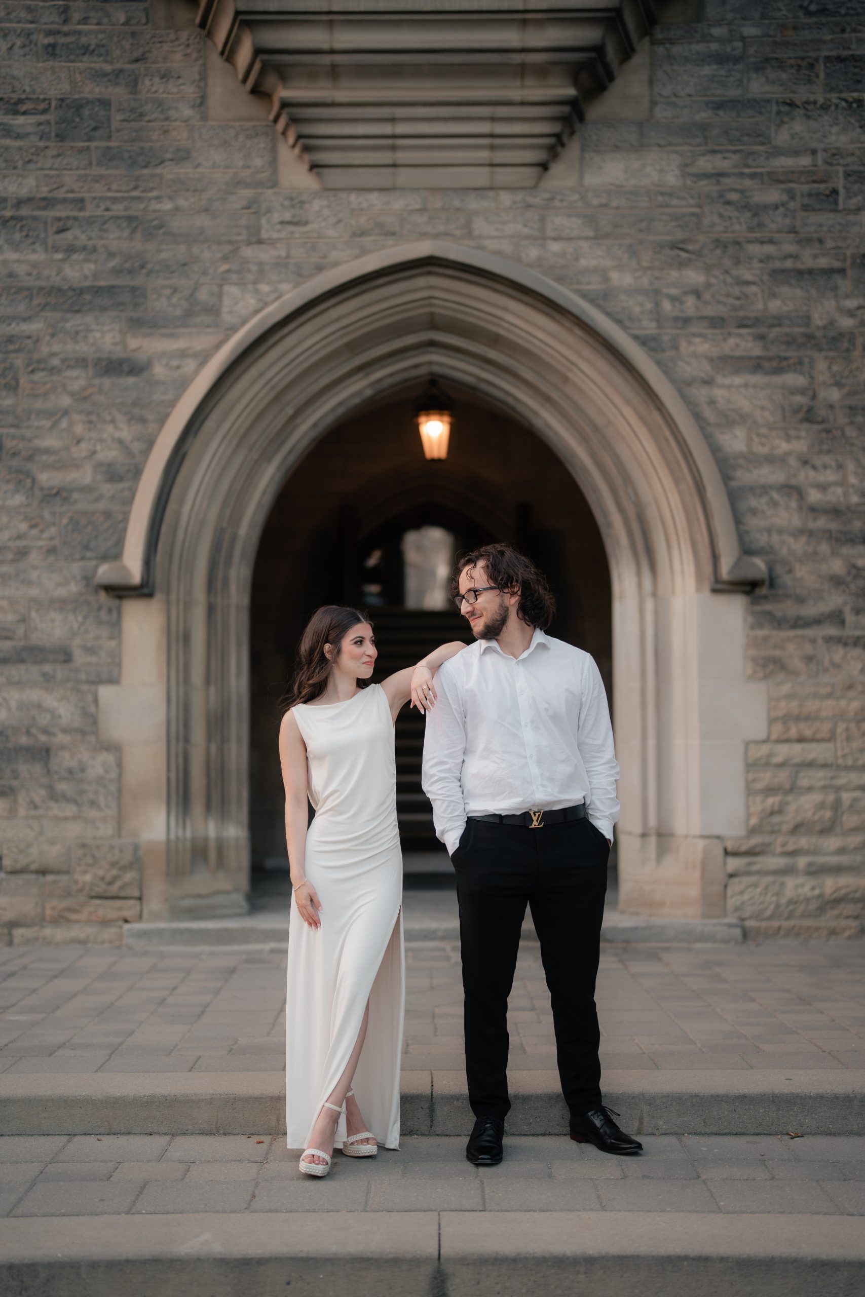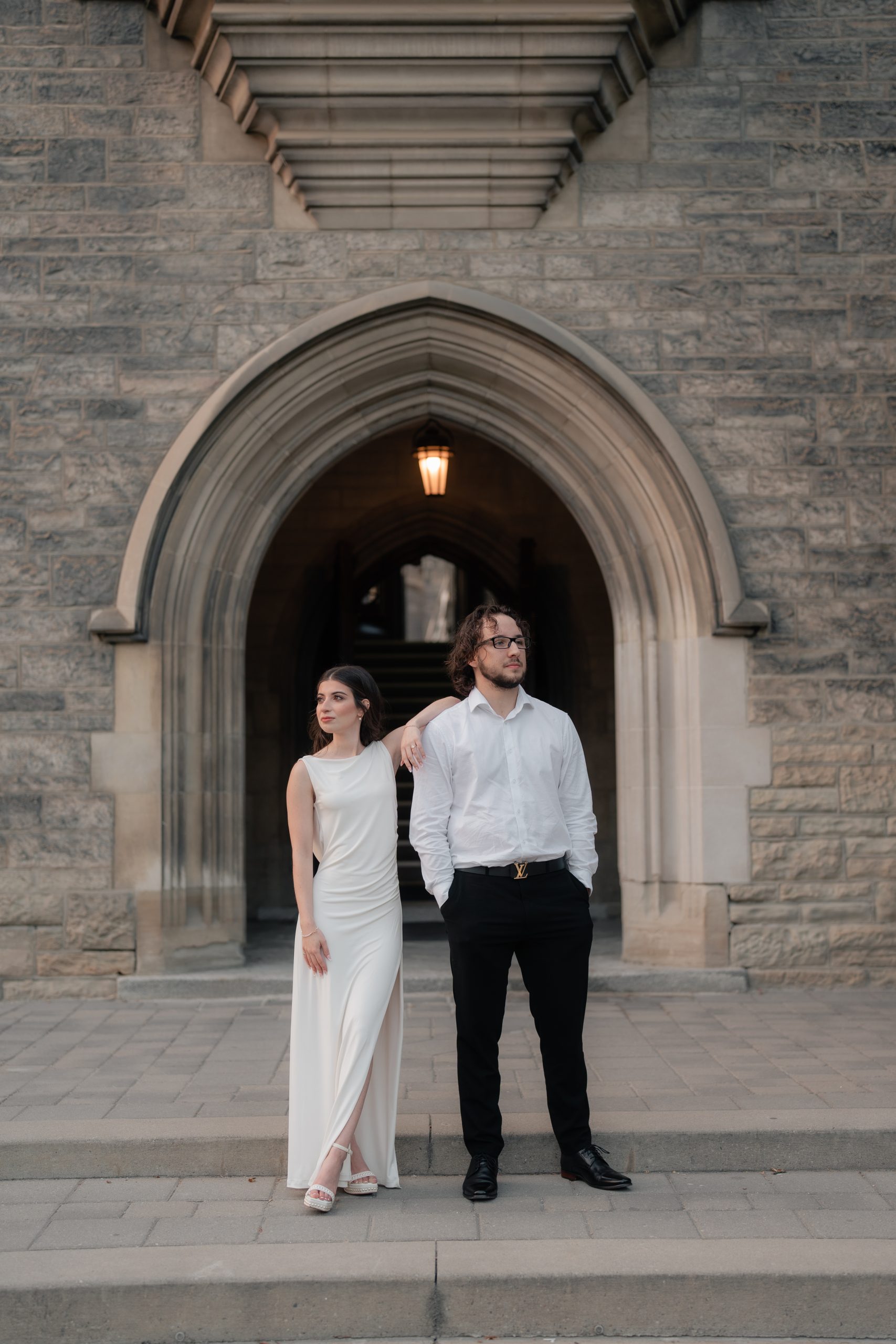 They had a full day planned with me. The photoshoot for their engagement began at Casa Loma. Then, we were going to quickly transfer to the Union Station. And our last stop was at the Distillery District. They wanted to go for three different atmospheres at each location. Our schedule was jam-packed, but Daniel and Julia were such a delight to work with.