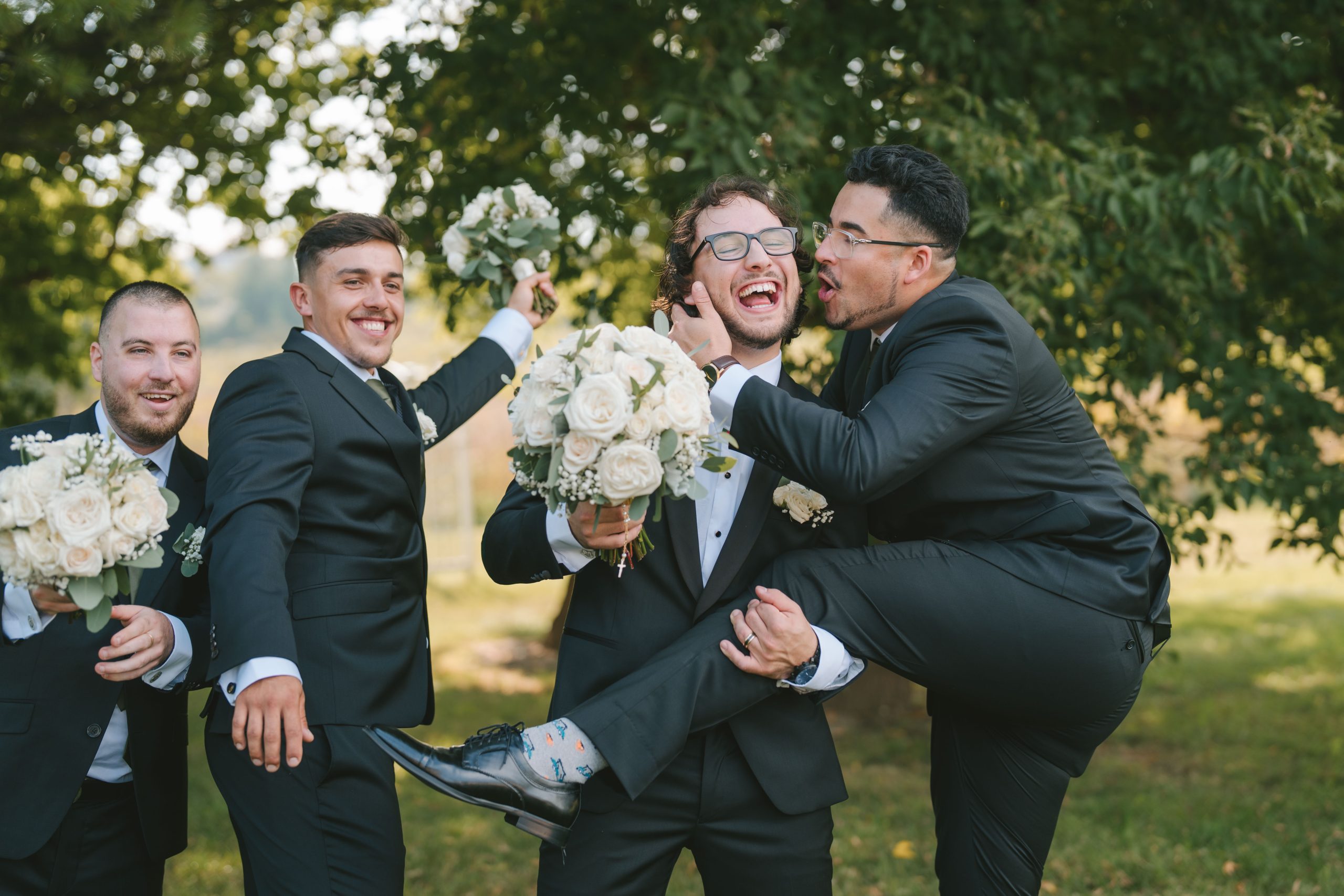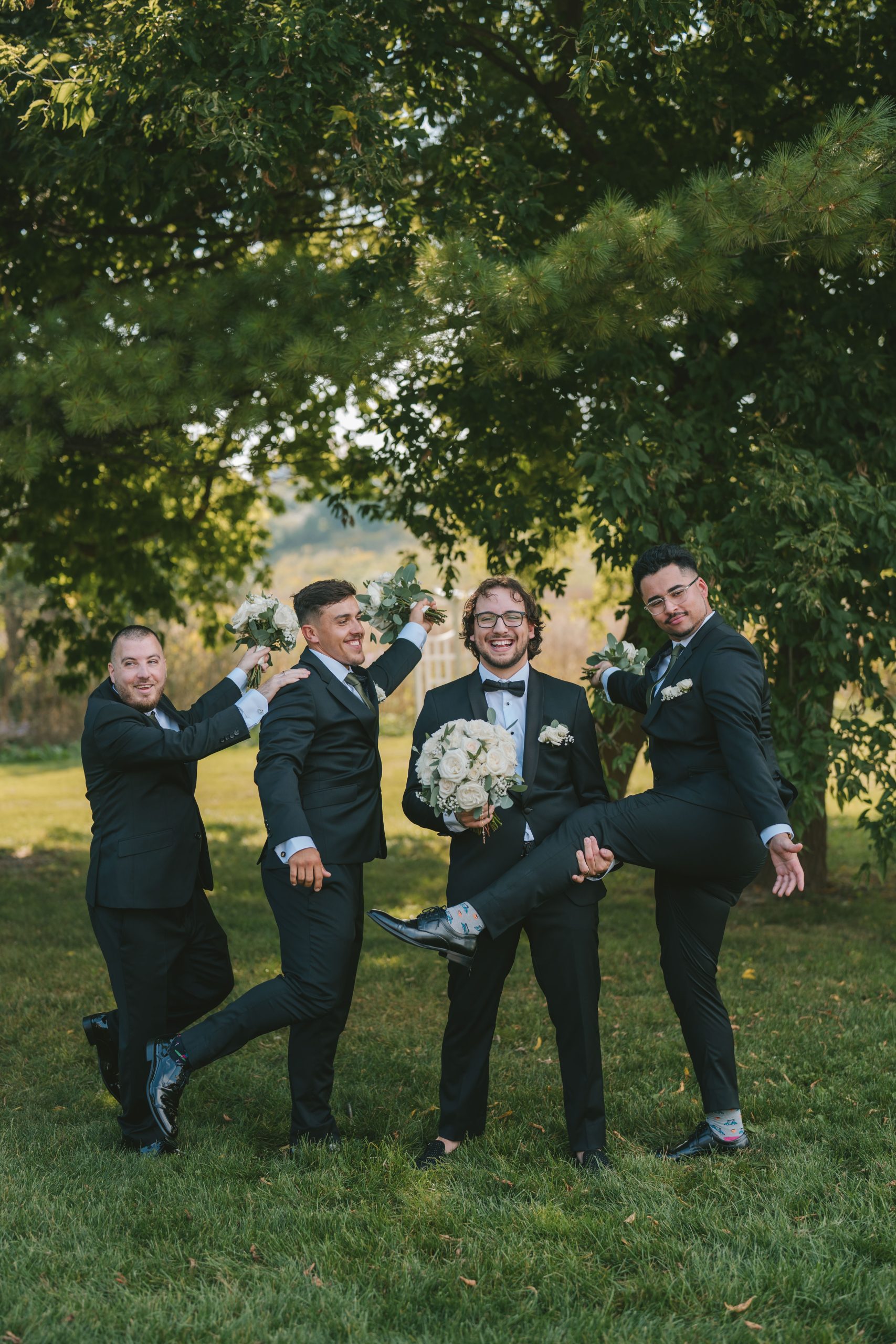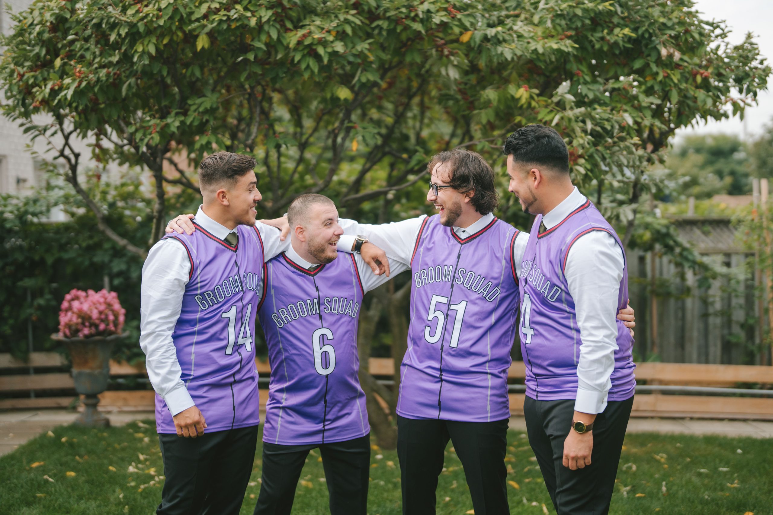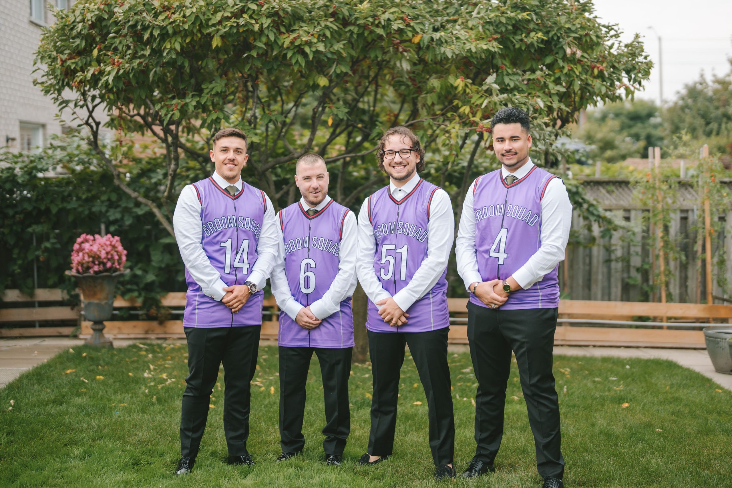 Daniel and Julia always made sure to reference important details about their relationship, and incorporated these into their wedding. For Daniel, he wore customized cuffs for his suit. It was an emblem of the Toronto Maple Leafs. Other than that, he and his groomsmen wore matching hockey jersey shirts as well for their photoshoot.