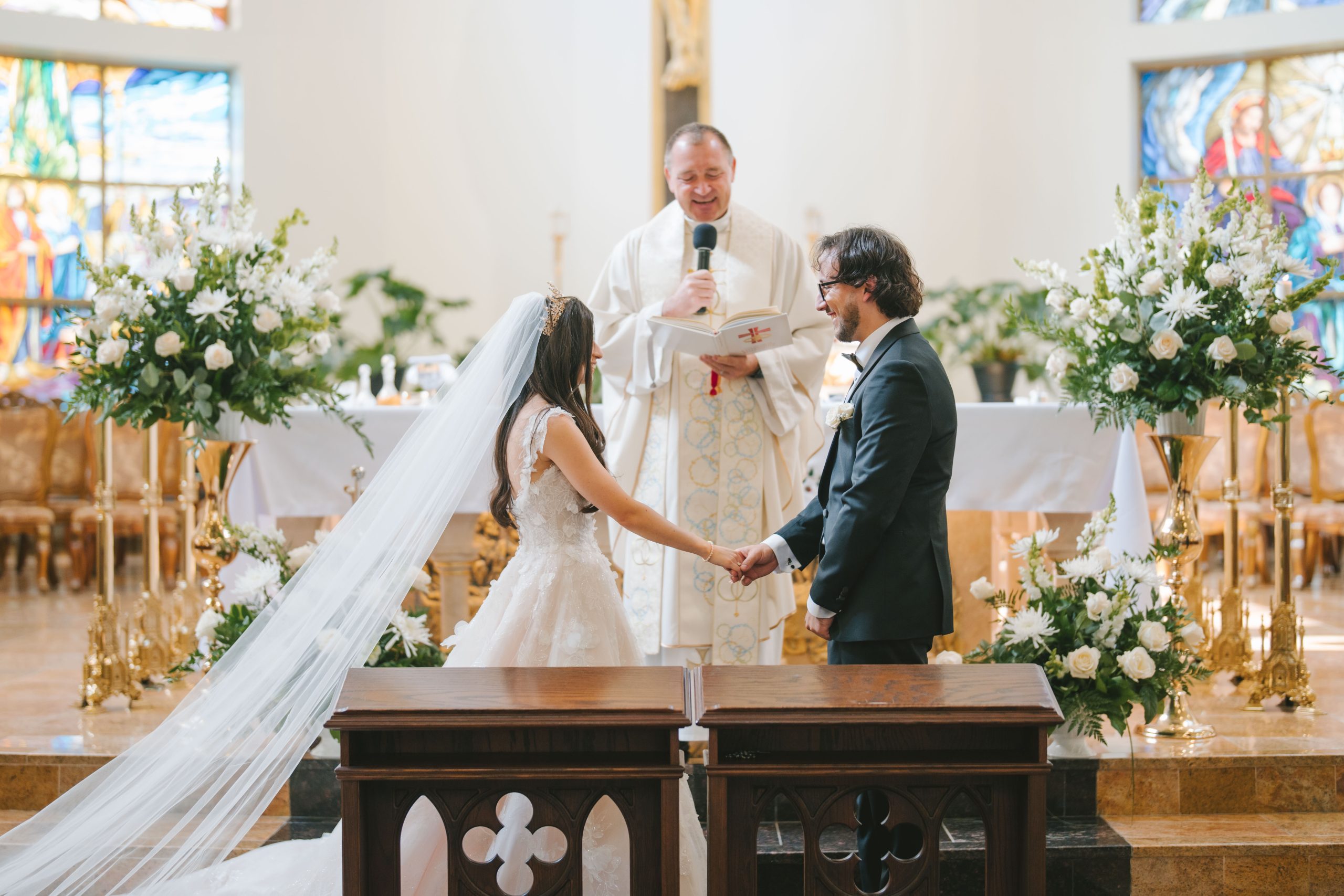 Julia looked like a princess. She wore a lacy wedding gown with floral designs all over the bodice and skirt. Apart from that, she wore a bedazzled tiara and a veil. And when she walked down that aisle, it only felt appropriate that Daniel broke down in tears as he watched her.