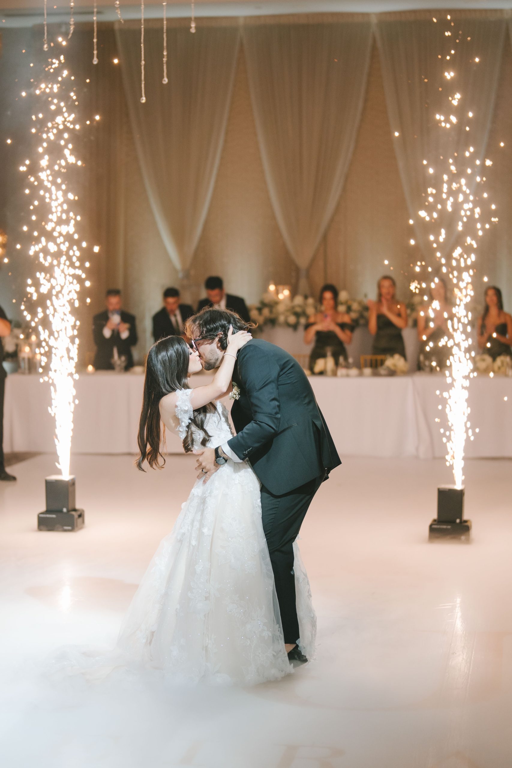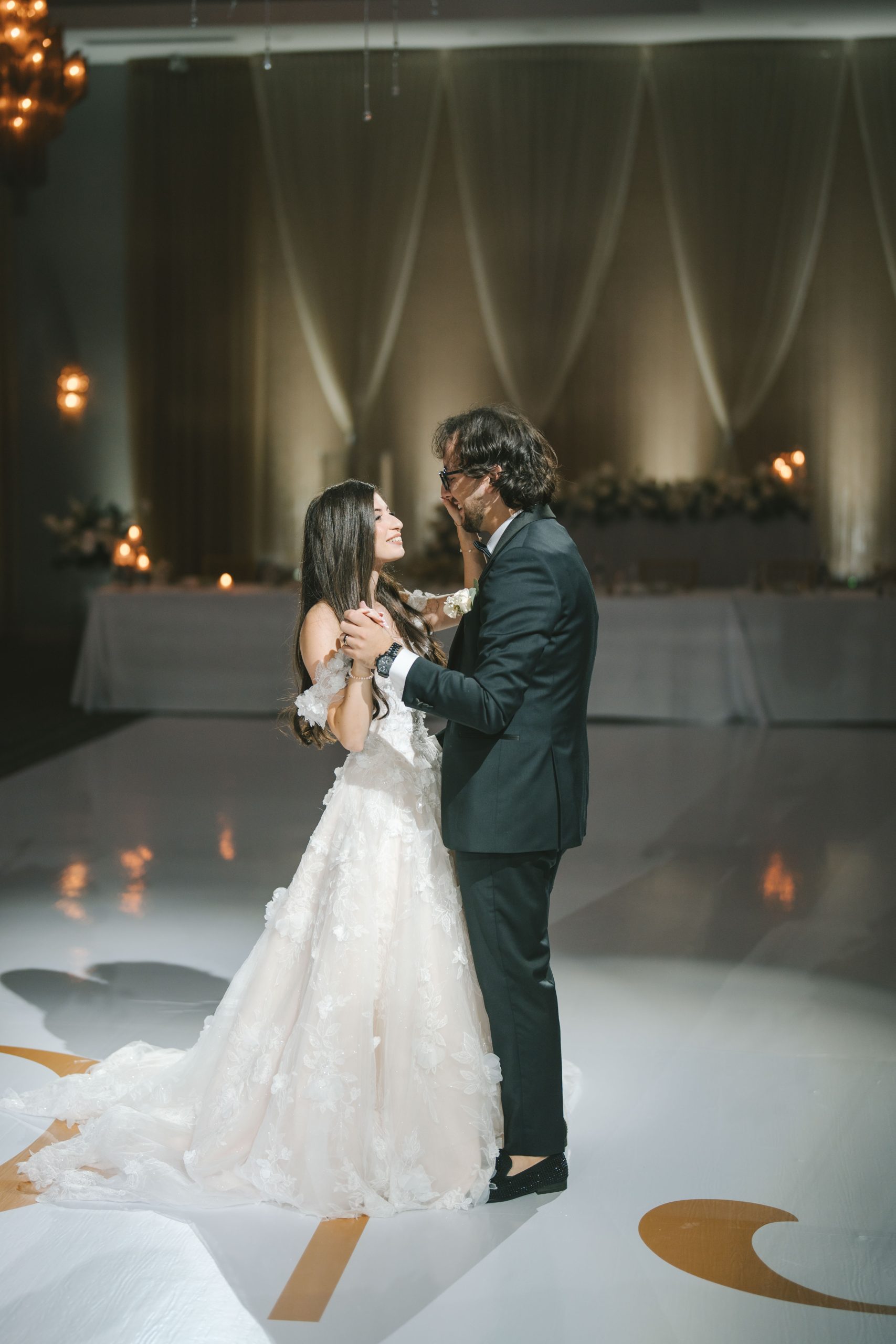Before everybody else was seated, I took the time to photograph Daniel and Julia having their first private dance together as husband and wife. They had a huge spotlight beaming down on them, and it was such a wonderful and intimate memory. Daniel and Julia really looked happy together.
