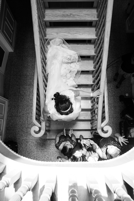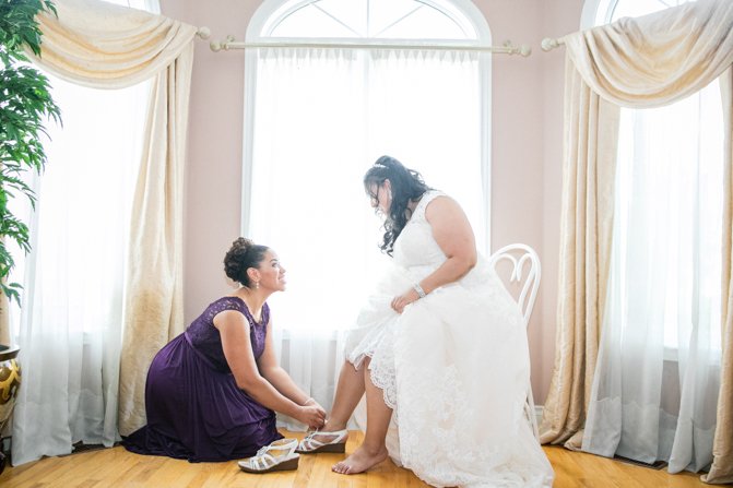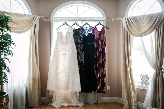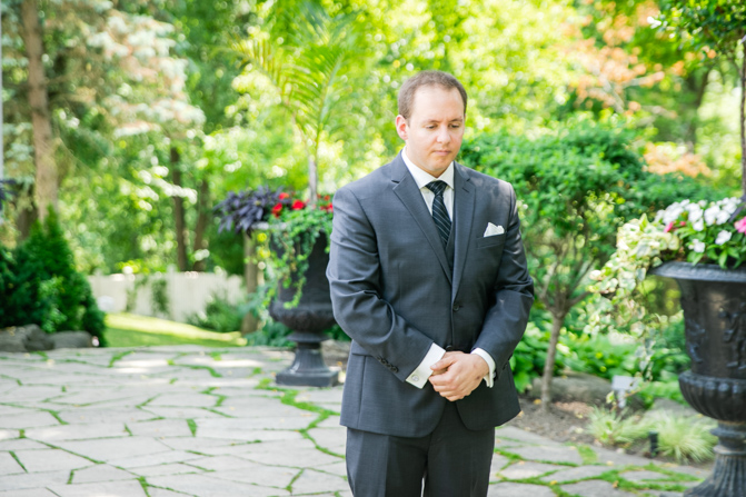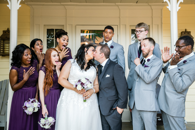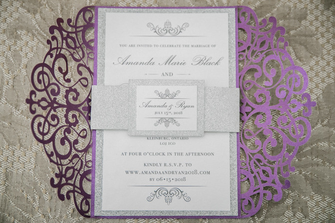 We were thrilled when Amanda and Ryan chose us to capture their special day at The Doctor’s House in Kleinburg. Amanda looked stunning in her stylish wedding gown with a lace overlay. Her love for crystals was evident in her jewelry, headpiece and shoes, adding just the right amount of bling to her look. Her bridesmaid’s dresses hung on personalized hangers next to hers while they all got ready. The deep purple color theme was used throughout the day, including in the wedding stationery, dresses and flowers, and the bride’s bouquet was a delicate collection of white and purple lilies.