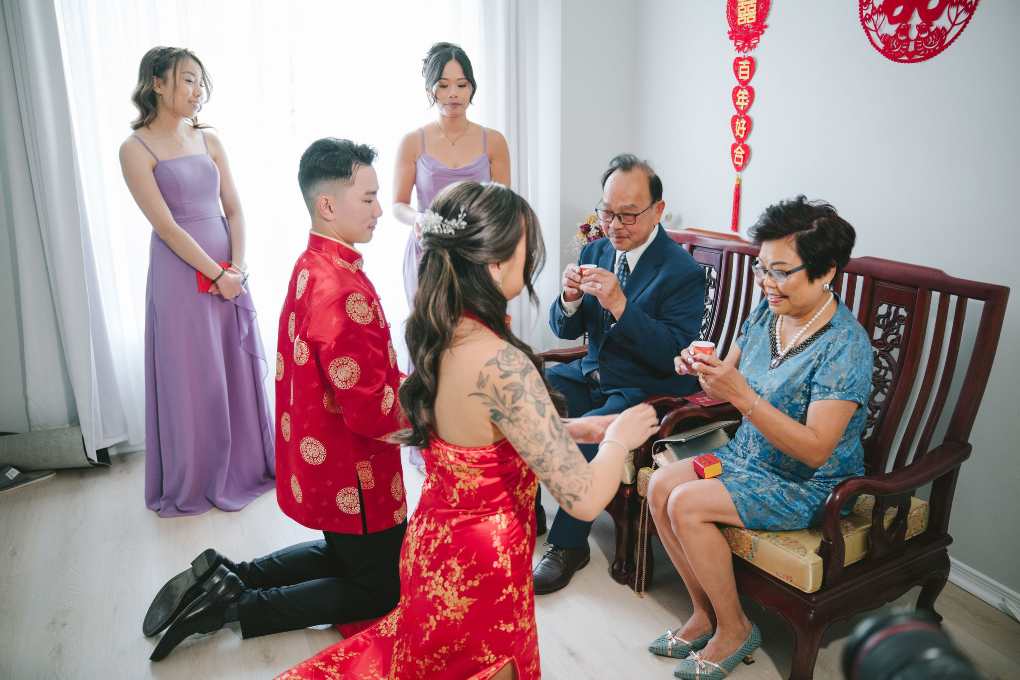 The two of them began their morning with warmth and tradition as their families gathered for the tea ceremony, a heartfelt exchange rooted in respect and gratitude.