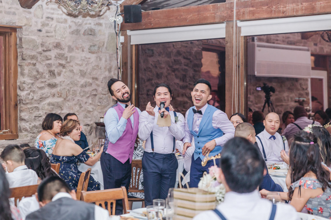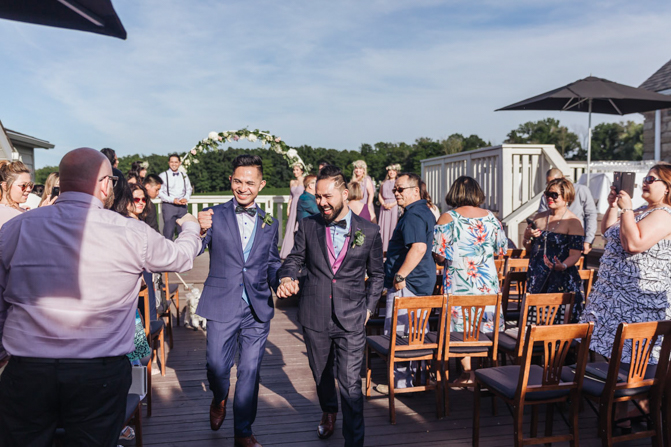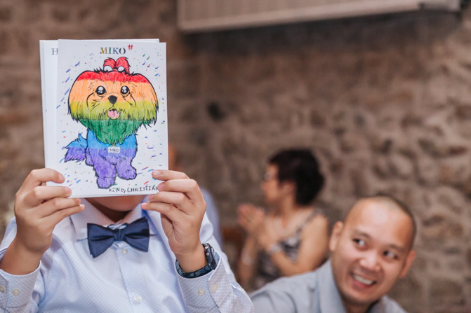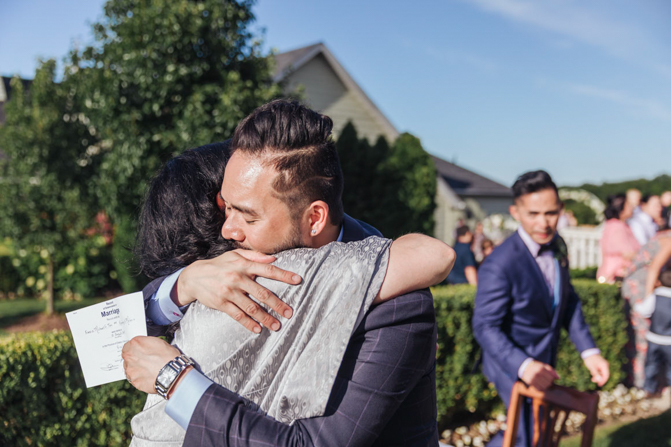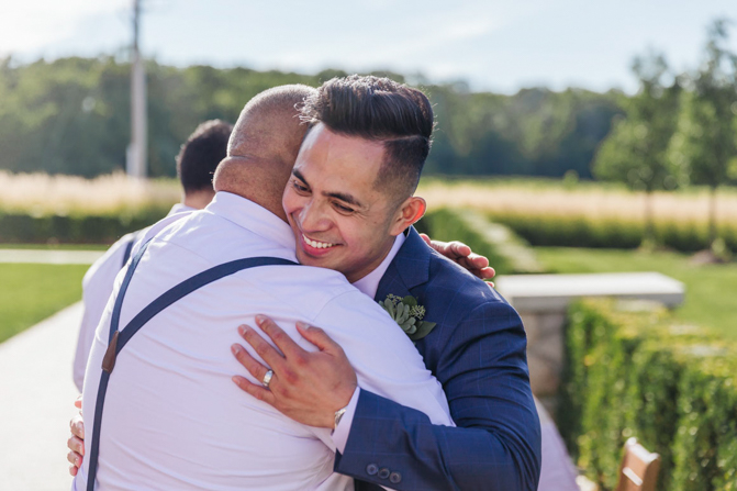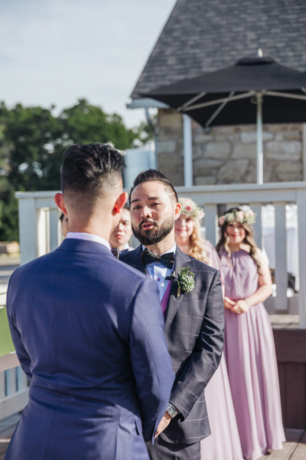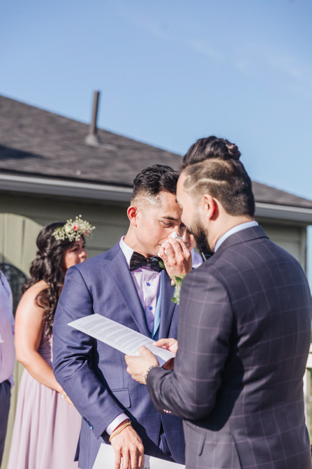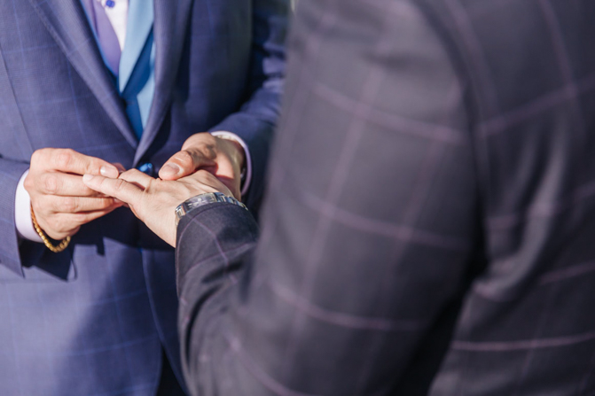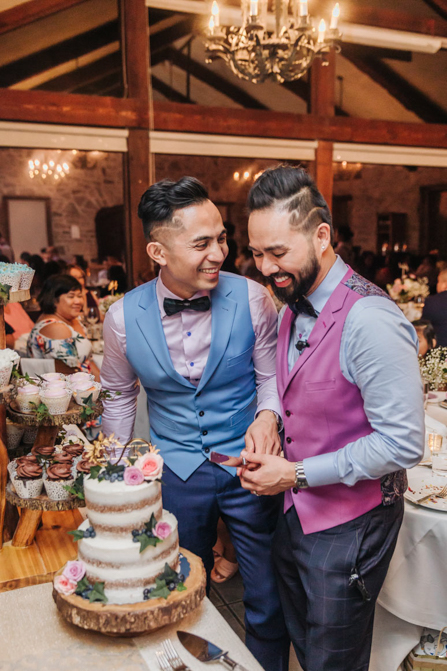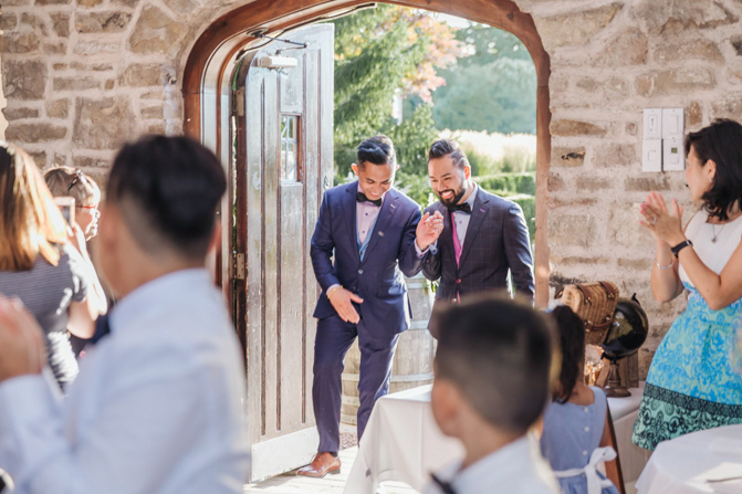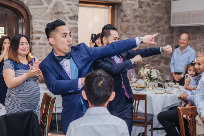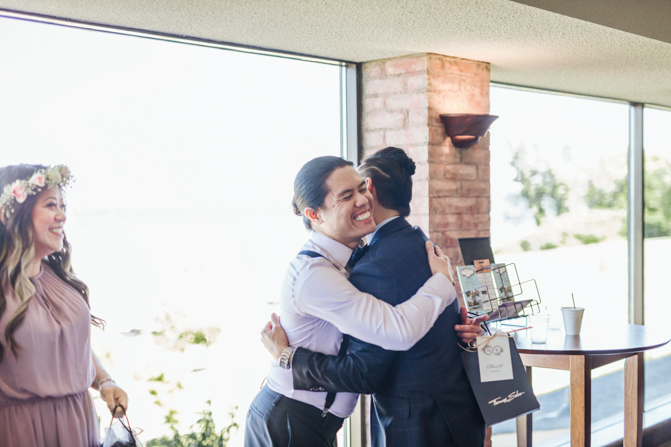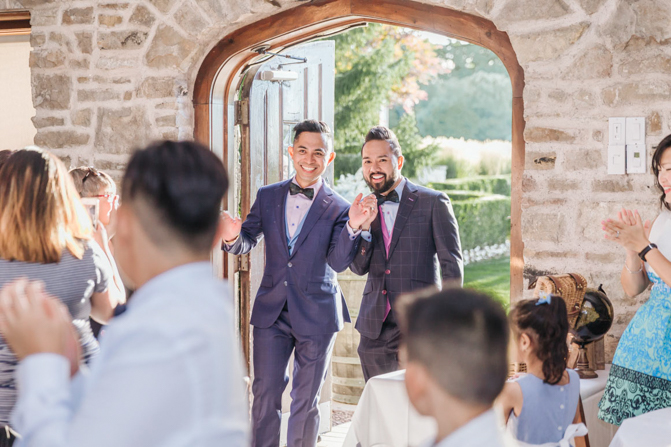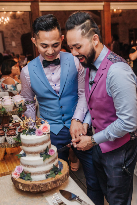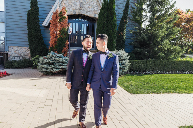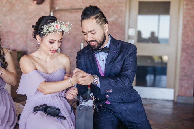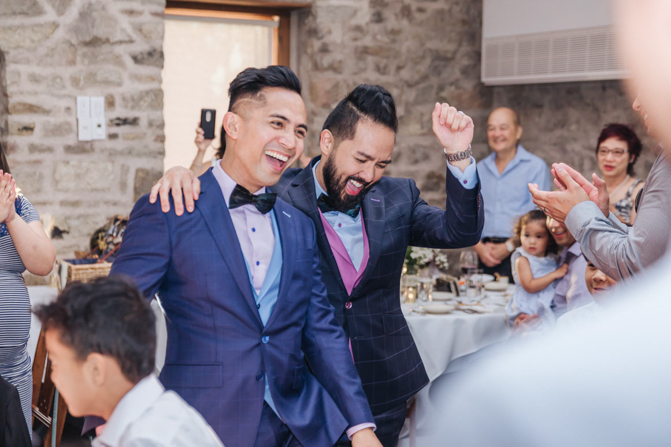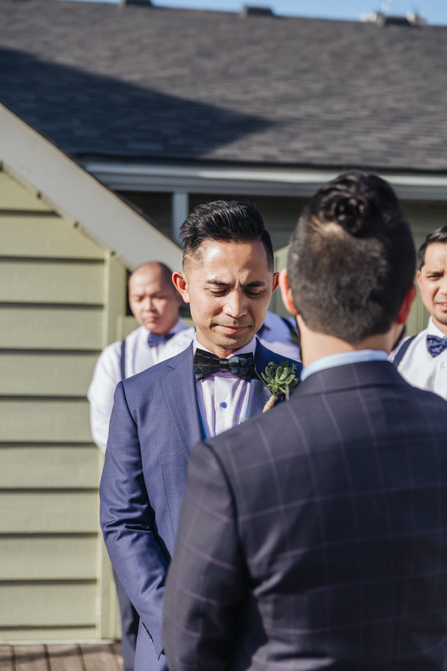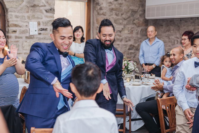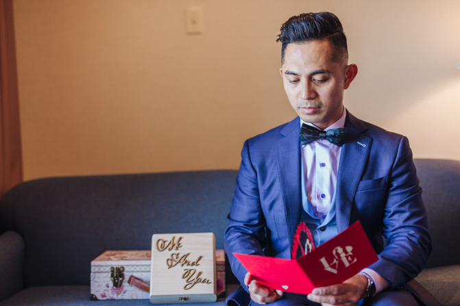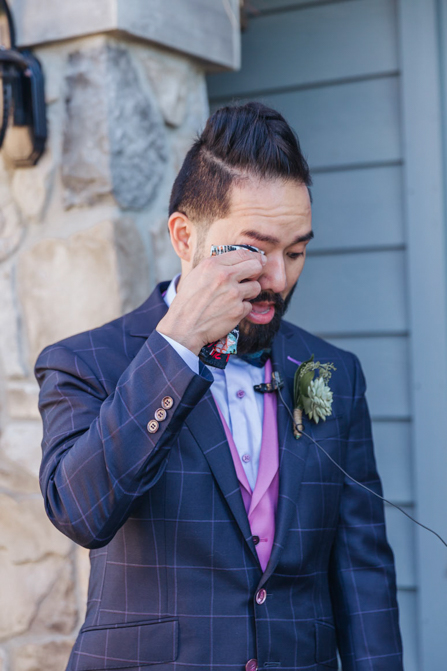 As I walked down the stairs, I couldn’t fight back the tears. I was so overwhelmed with so much joy. It was the happiest day of our lives. Kim and I decided not to see each other the morning of our wedding (as we both got ready separately). Although we picked the fabrics and the buttons and the finishes of our custom-made suits, we actually have not seen it on each other. So seeing each other for the first time was the best moment of our wedding.