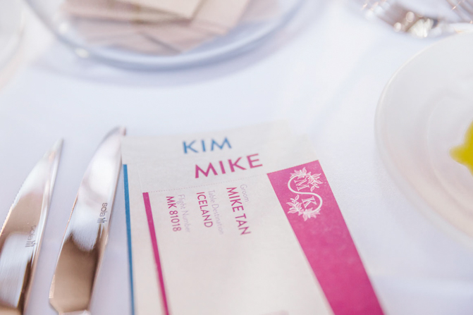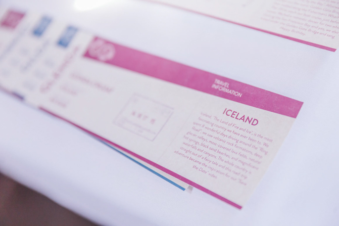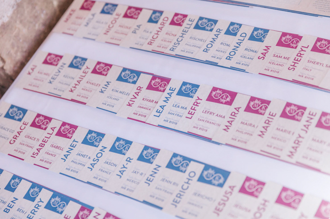 As soon as we finalized our logo, we were able to design our own invitations, wedding programs, stationaries, decors, centerpieces, etc. Our invitations were all custom-made passports, complete with the original passport stamps from the 7 countries we have visited together over the years: Iceland, Philippines, Jamaica, San Francisco (USA), France, Mexico and Italy (each country represented a table). We had 7 tables in the venue.