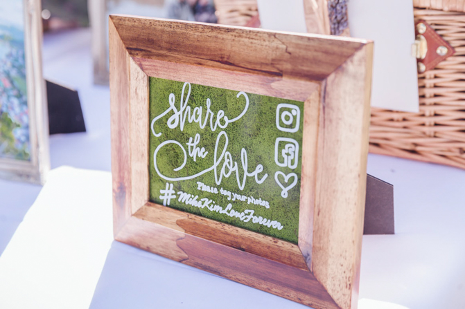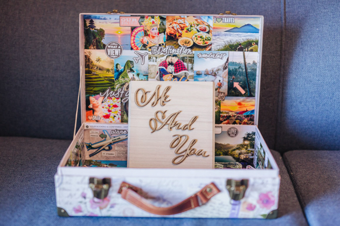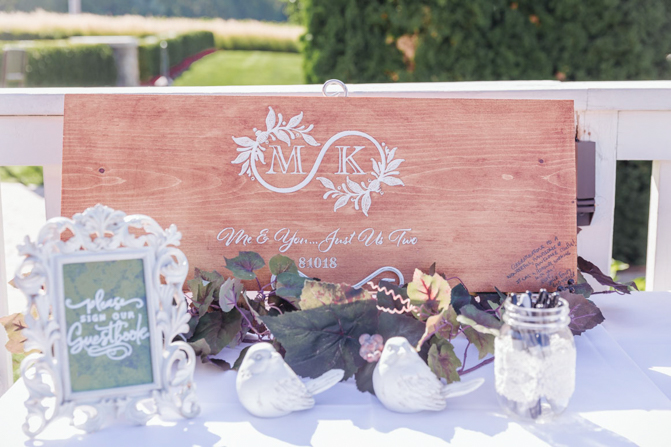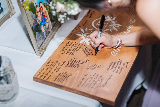 Our guestbook was made out of wood and we had our friend, carved our logo in the middle with “Me and You…Just Us Two” written underneath for a nice finishing touch.