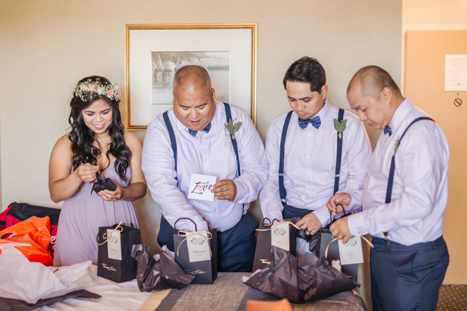 Our wedding guests from out of town who stayed with us at the hotel near the venue were treated with a basket full of goodies that Kim and I love from around the world. For our wedding colors, we complimented each other using our favorite hues: blue and purple. During our ceremony, we worked very closely with our officiant, Tade Credgeur (a.k.a. The Marrying Lady). She helped us customize our own ceremony (which was not religious in anyway), but incorporating all the important aspects in our relationship. We honored our parents during our ceremony, and we had 8 individuals (who are very dear to us) to serve as our “Infinity8”.