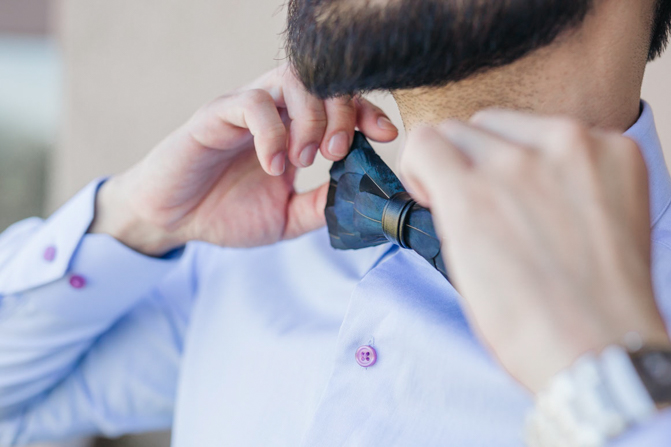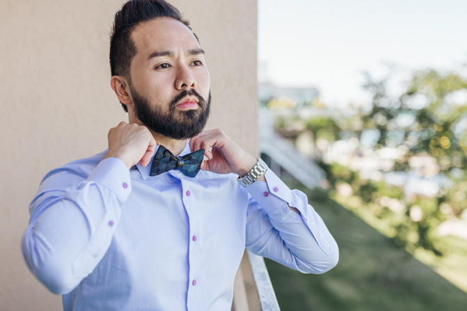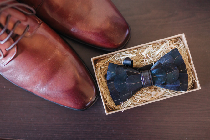 During our fittings, we were always in separate rooms and so we have never really seen it on each other until the day of our wedding during our “First Look”. As finishing touches, we had matching feather bowties and dark brown shoes. We even had vines silhouettes designed on the side of our hair.