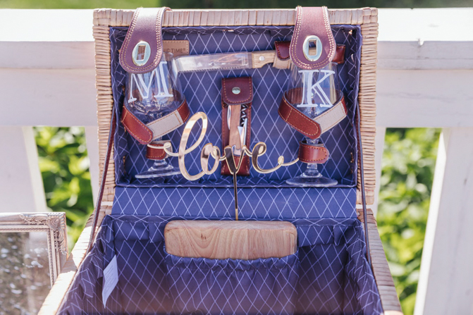 We used a wine-picnic-basket-for 2 and we put our initials on it and turned it into our cardholder. We even filled the bottom of this basket with white sands and seashells because we love the beach so much.