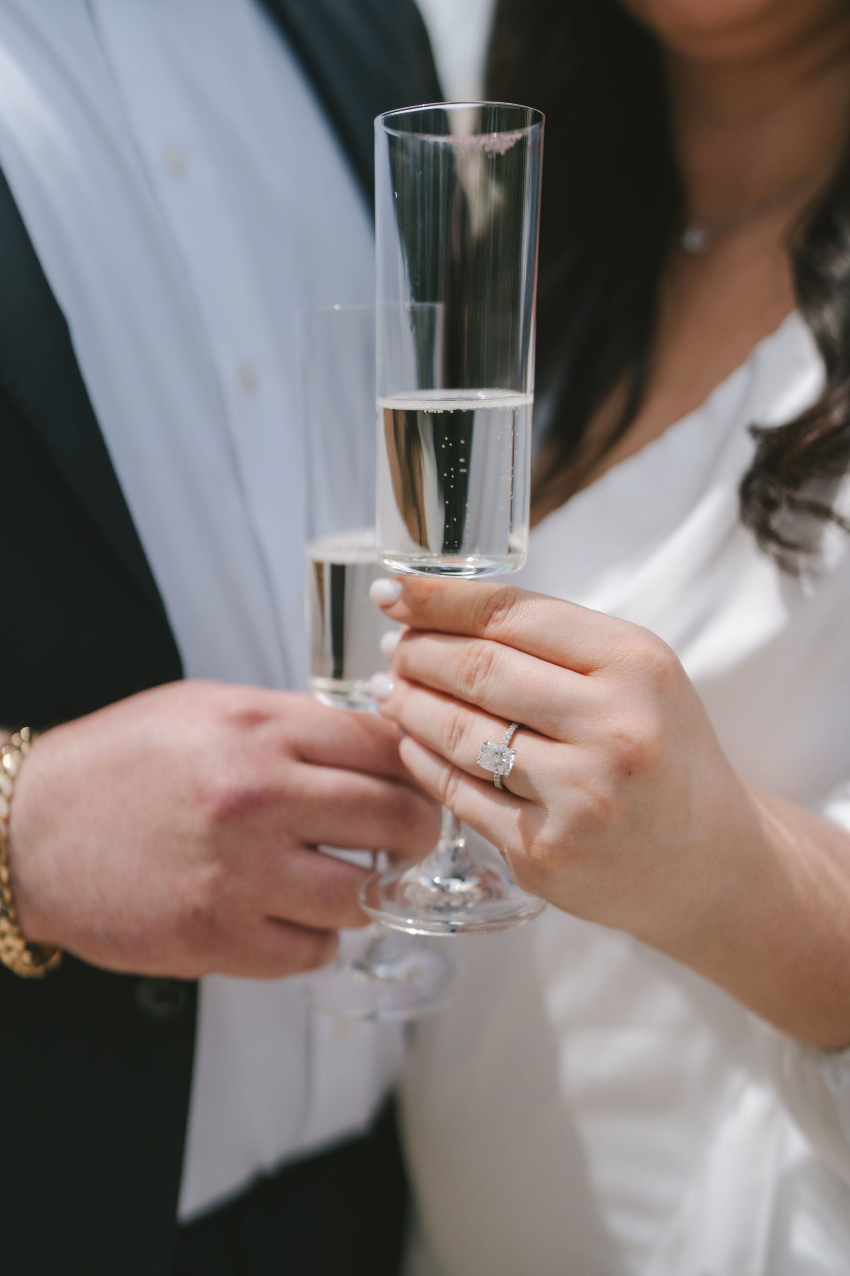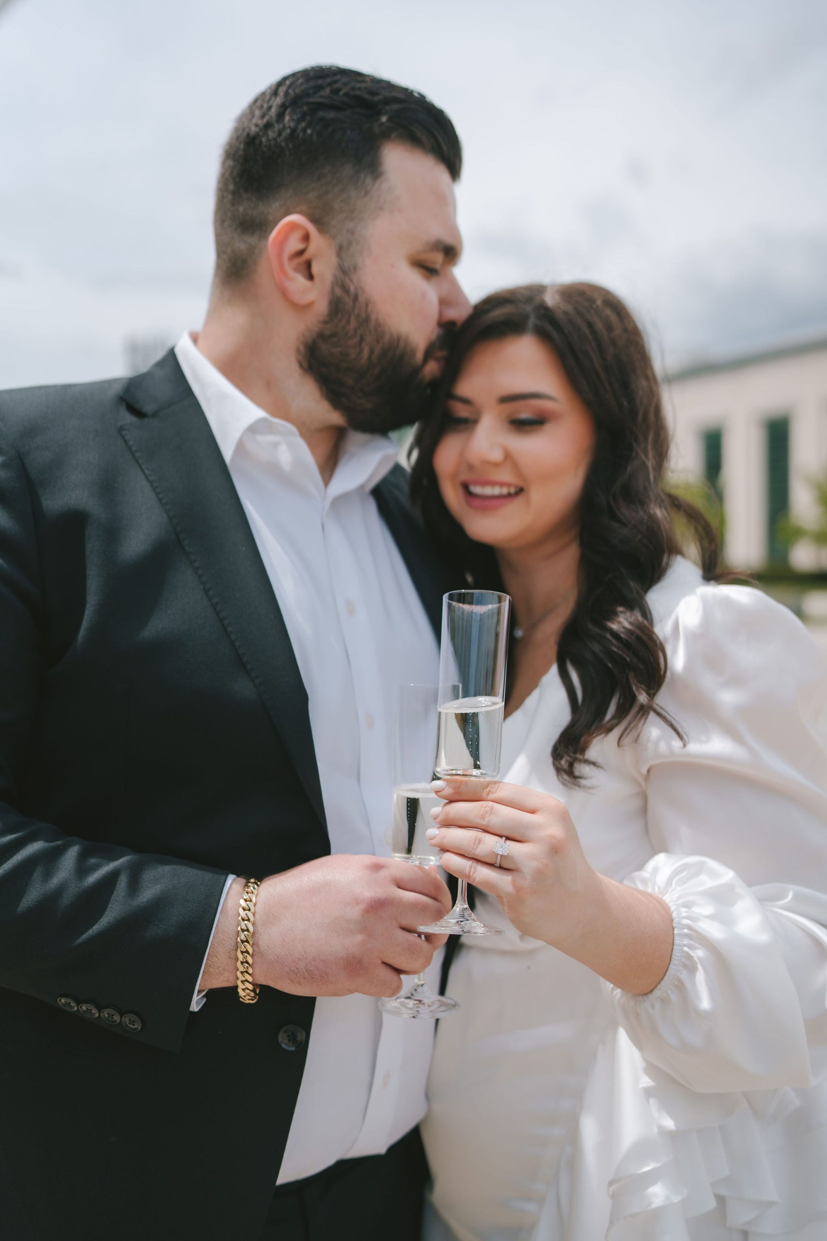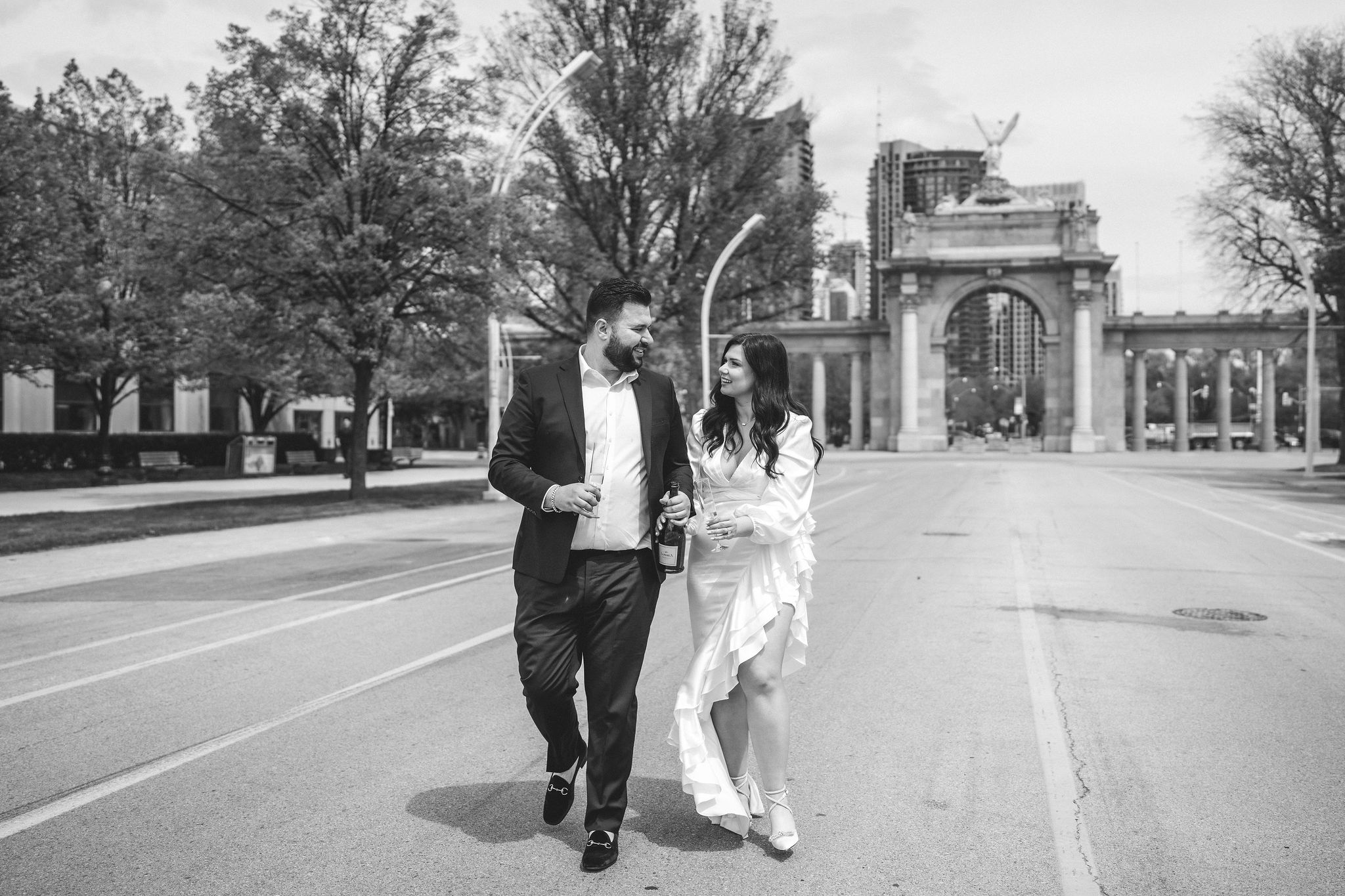 Afterwards, we transferred to the somewhat busy streets of Toronto. Herma and Dean brought a prop to our photoshoot, which I thought was funny at first. They had a bottle of champagne and a pair of glass flutes. It was such a fun moment, to be honest! I made them pop it open and drink from their glasses.