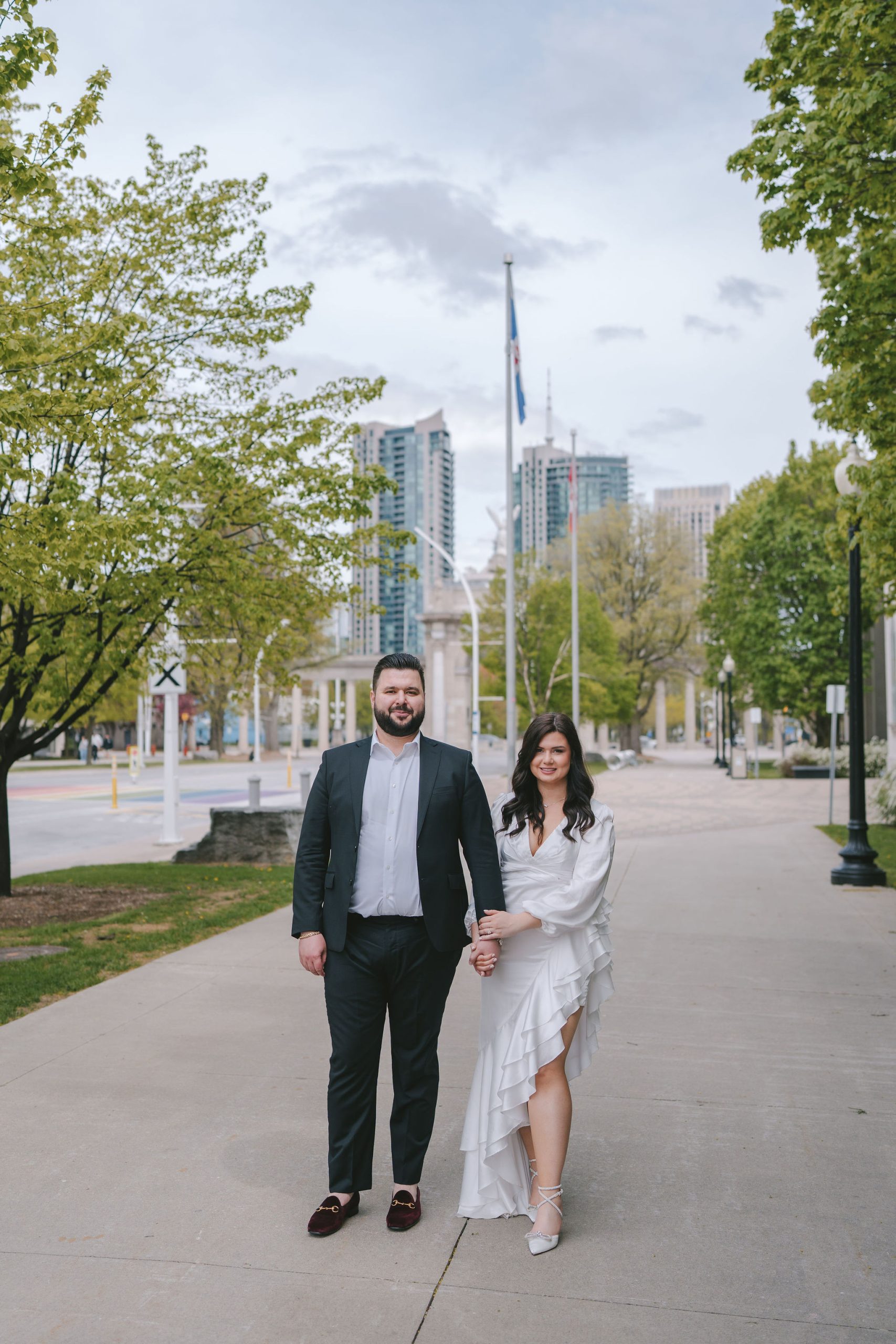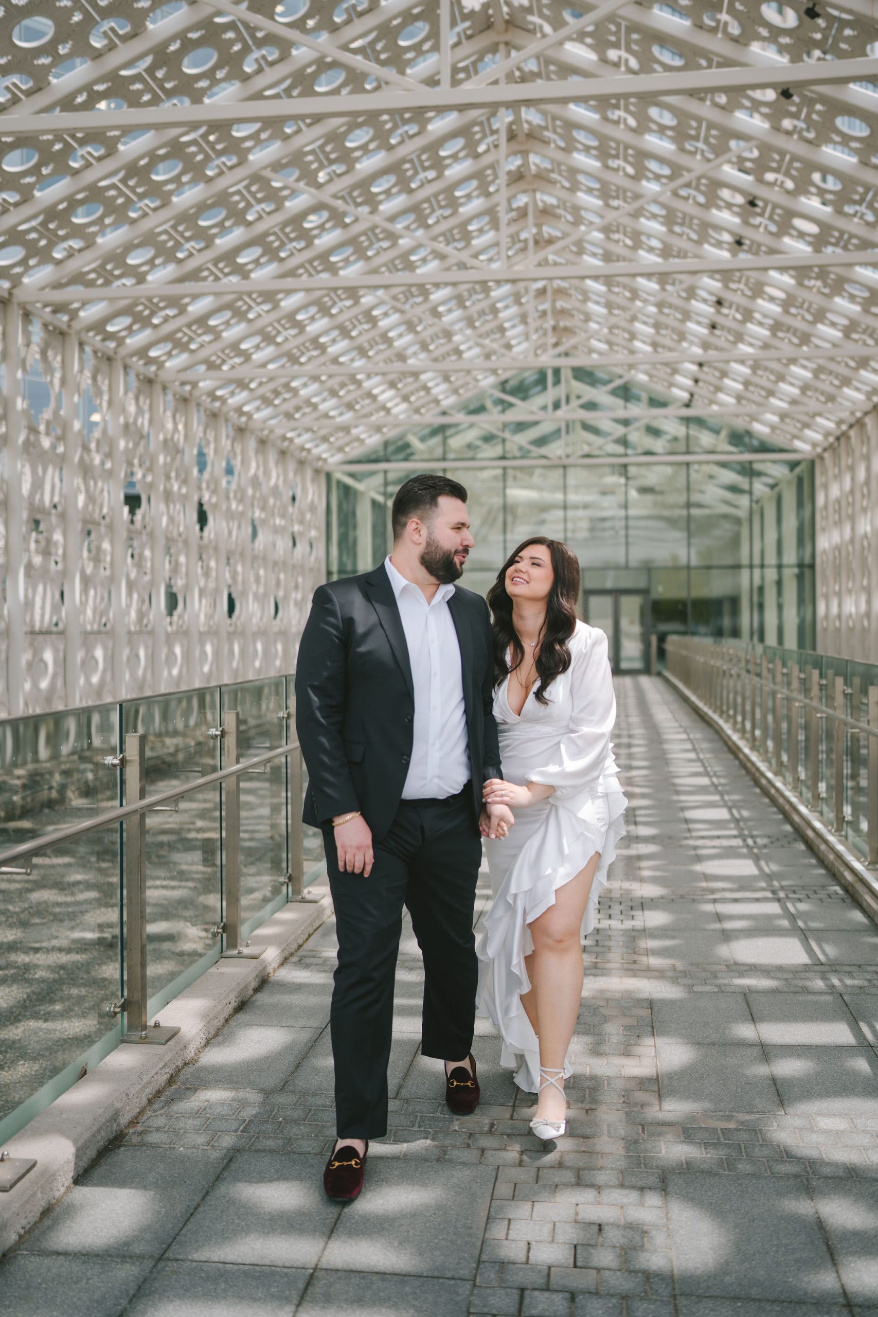 Herma and Dean wanted to go Downtown, Toronto for their engagement shoot. They didn’t have a lot of specifications. The eager couple wanted something timeless, simple, and light. On the day of the shoot, they arrived in such chic outfits.