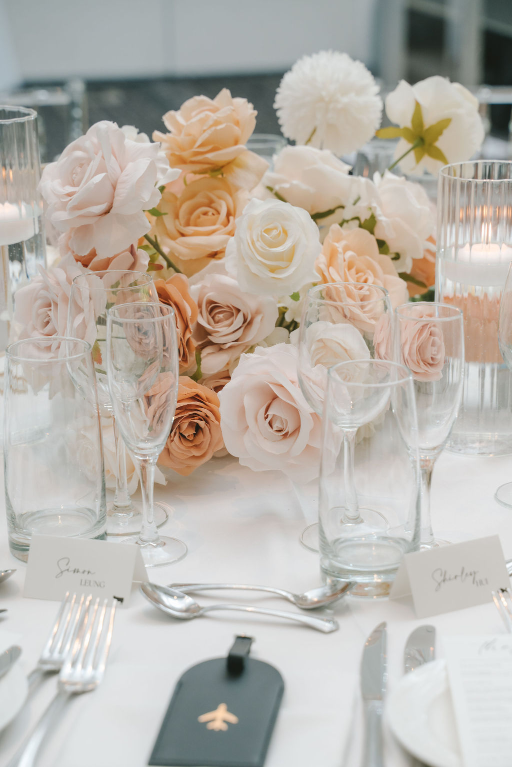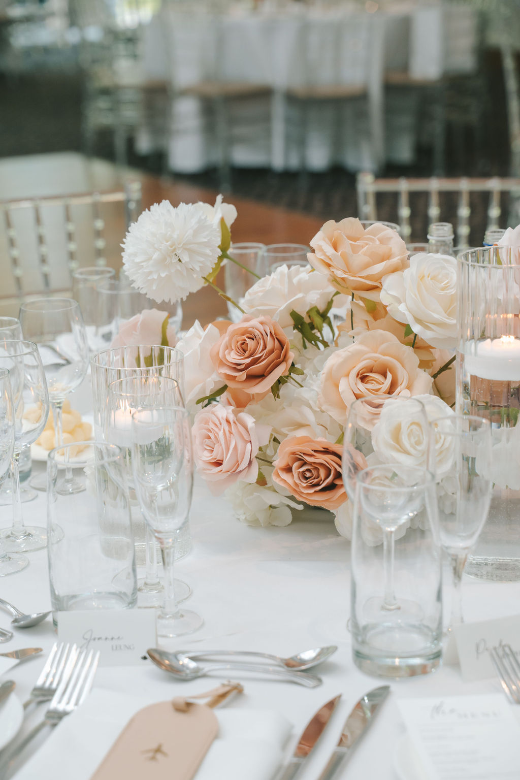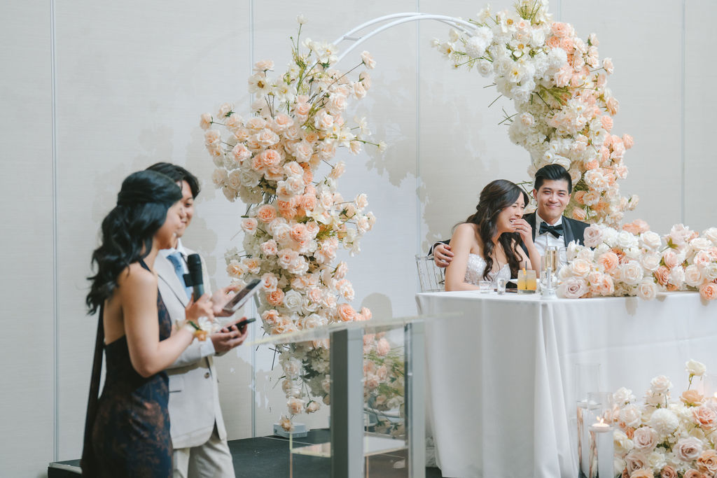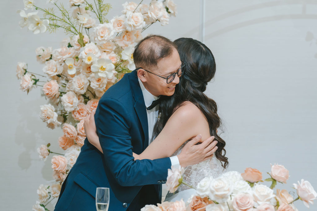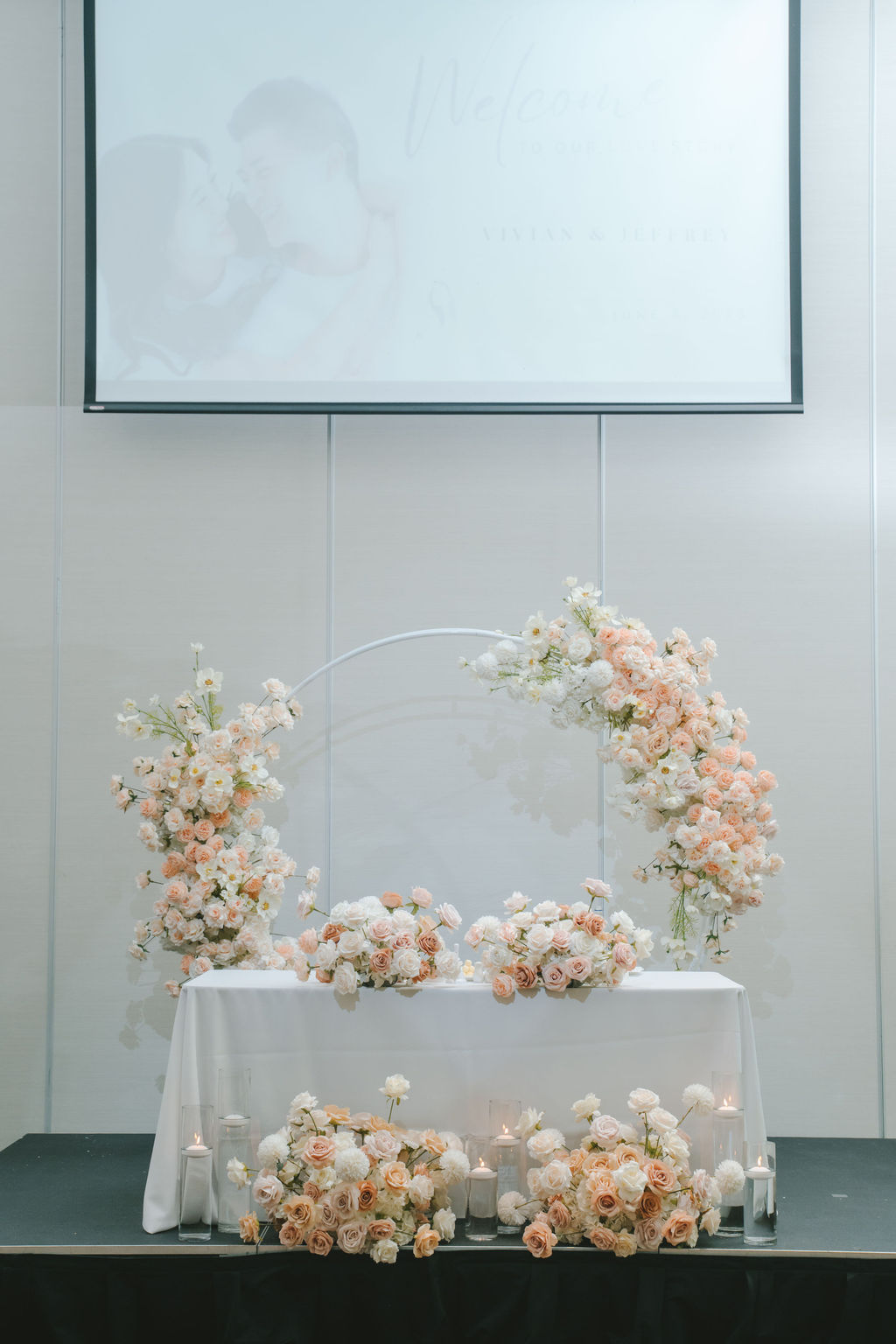 It didn’t take long before I was already preparing for another wedding ceremony for Jeffrey and Vivian. They wanted a grander celebration with loved ones they have met and been with from different points in their lives. For this one, they decided to have a color scheme of blush and champagne. And so, their venue was decorated with light pink and white floral arrangements that gave The Guild Inn Estate an airy and dream-like feel.