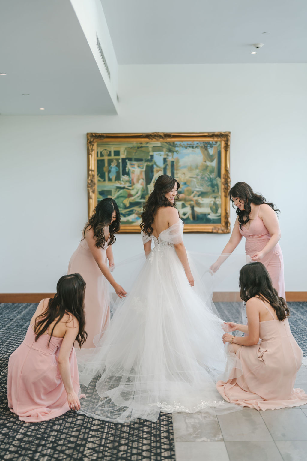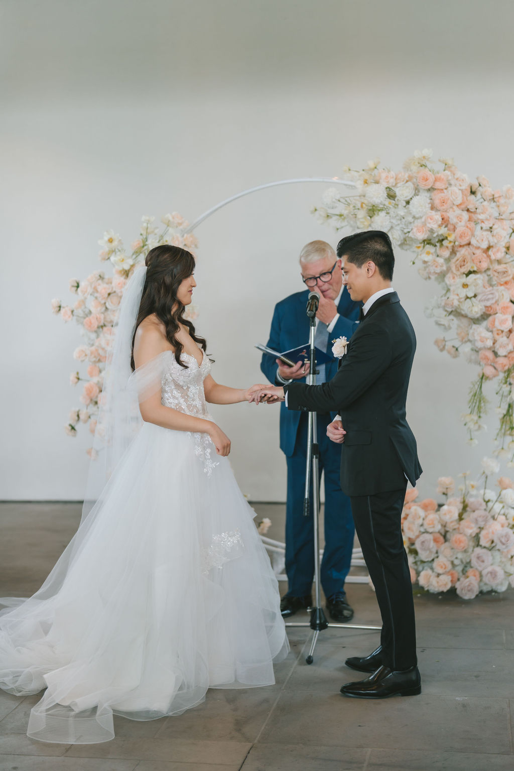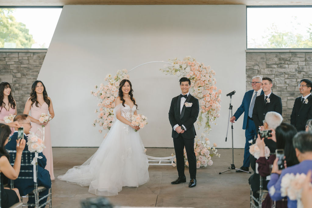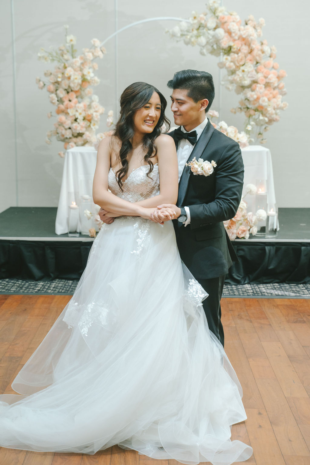 It didn’t take long before I was already preparing for another wedding ceremony for Jeffrey and Vivian. They wanted a grander celebration with loved ones they have met and been with from different points in their lives. For this one, they decided to have a color scheme of blush and champagne. And so, their venue was decorated with light pink and white floral arrangements that gave The Guild Inn Estate an airy and dream-like feel.