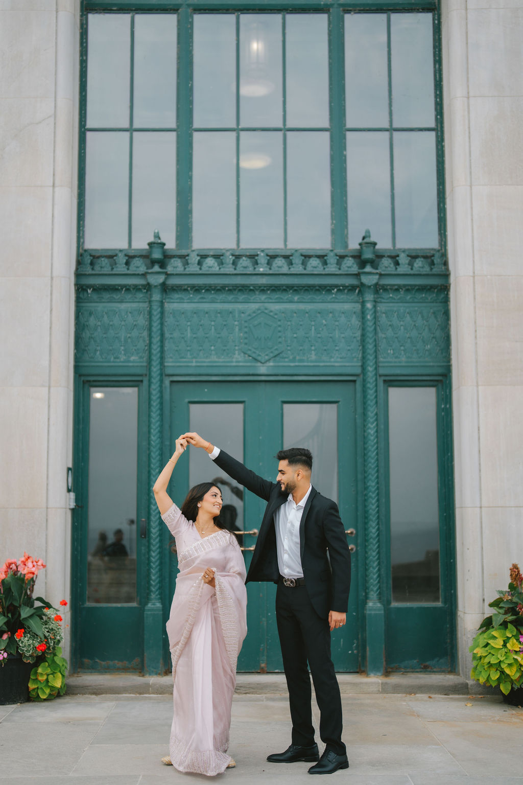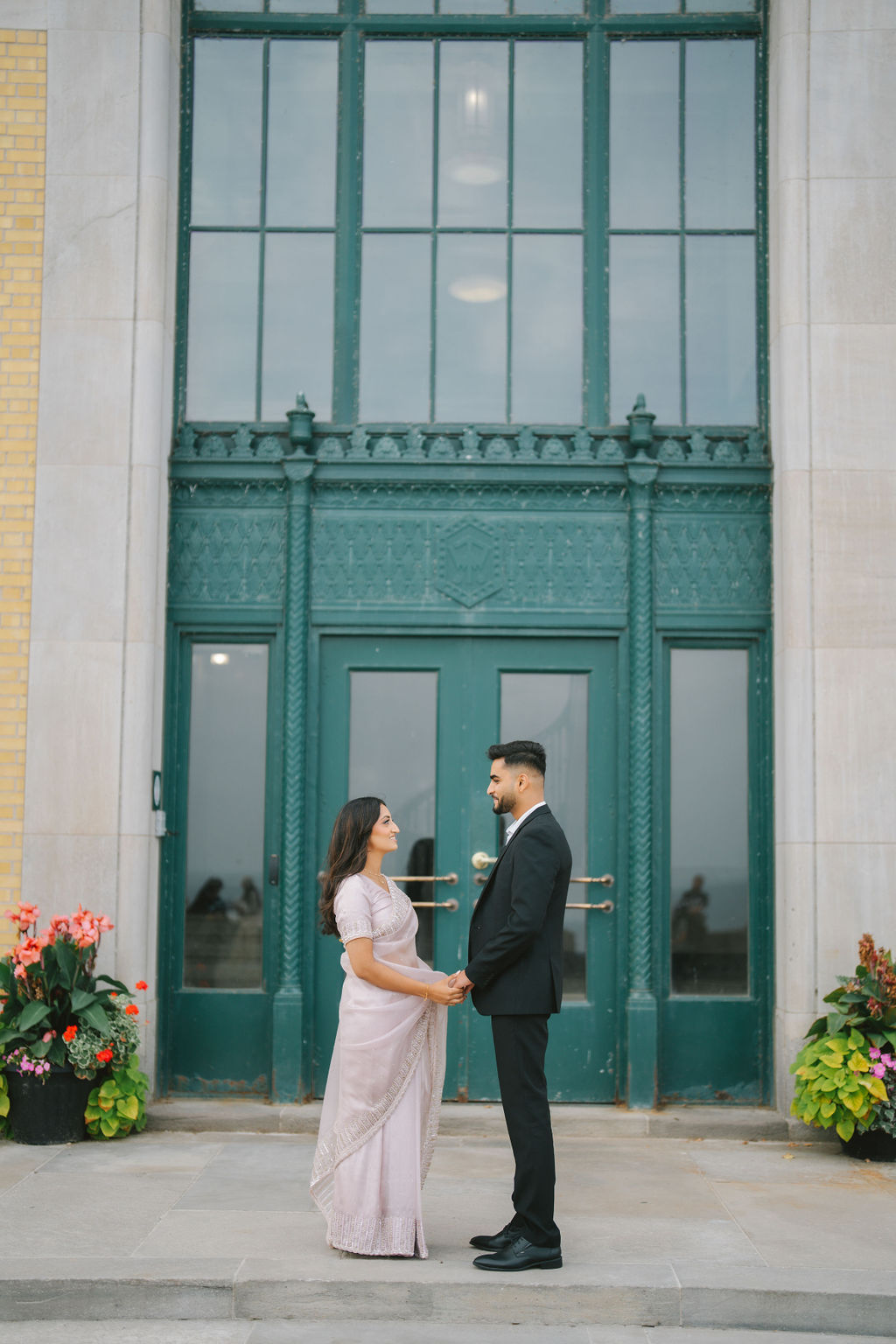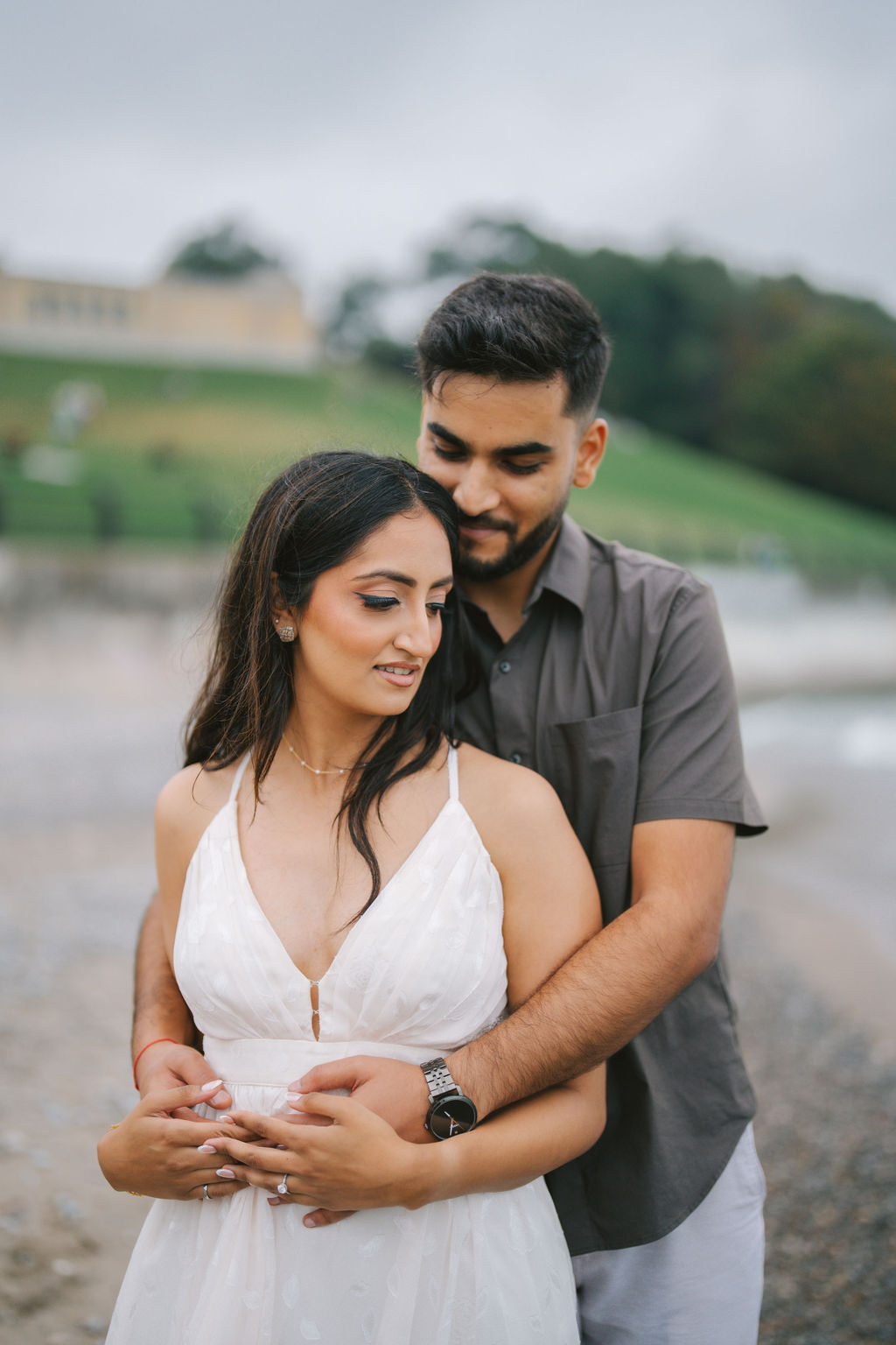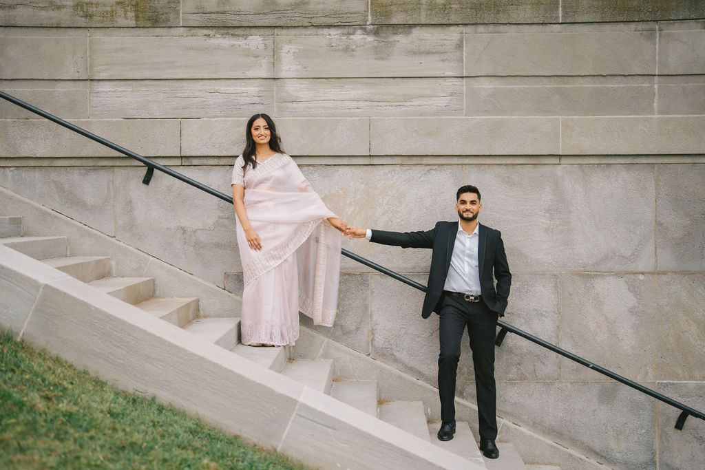 In every engagement session, I try to capture more than just portraits. I look for tone, body language, and contrast… the usual elements that make the gallery feel cohesive and complete. With Kalp and Samdisha, every image built upon the last. Some were wide shots, using the architecture and scenery to add depth; others were tight and personal, focusing on the finer details. Their hands, the way their eyes met, the subtle moments that would likely go unnoticed otherwise.