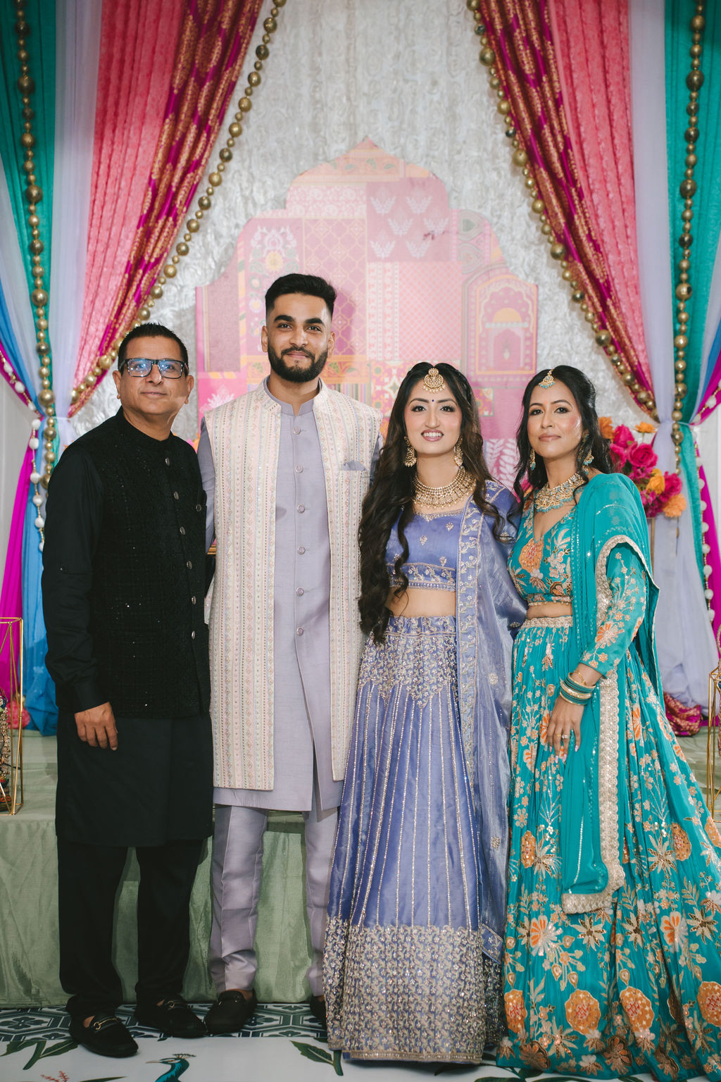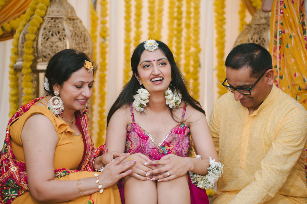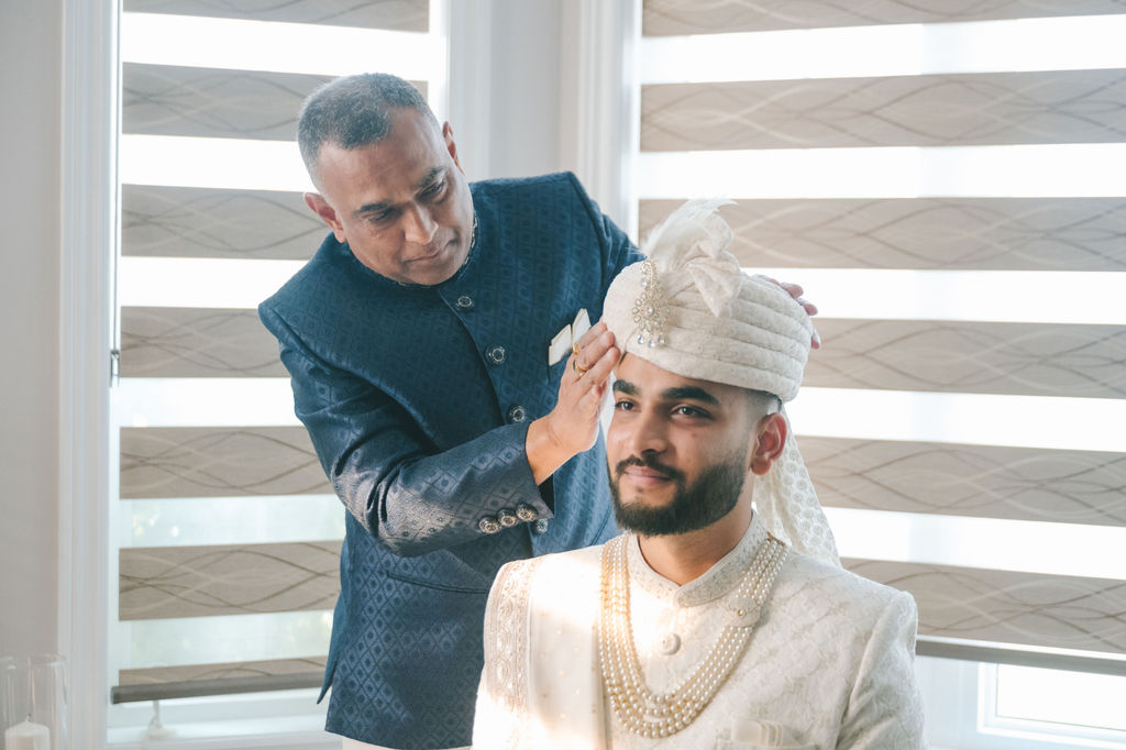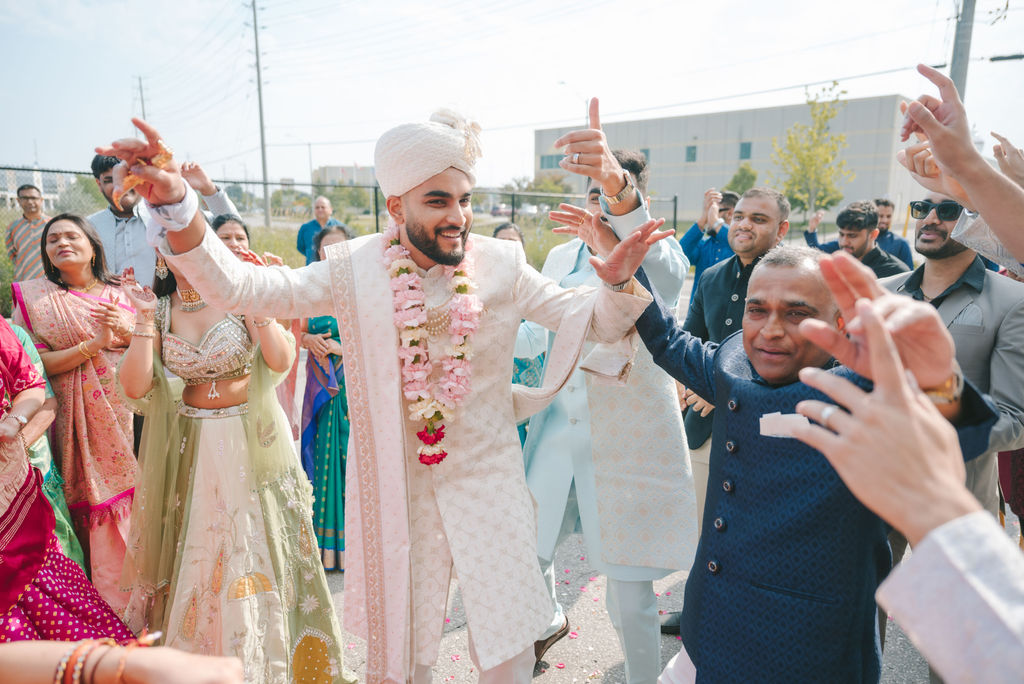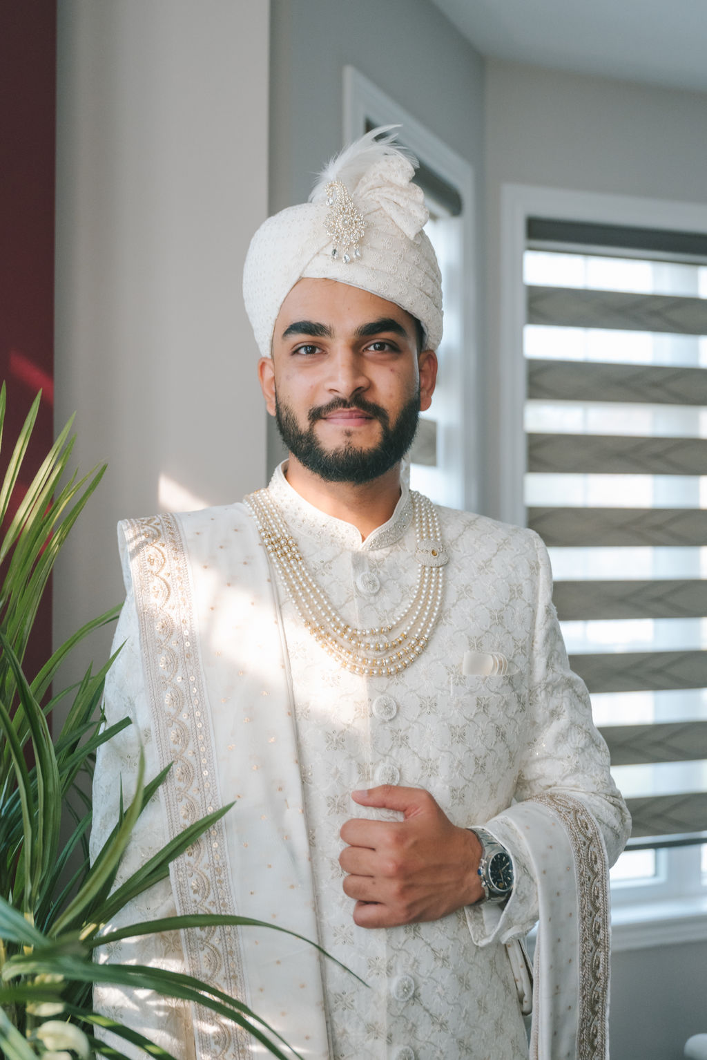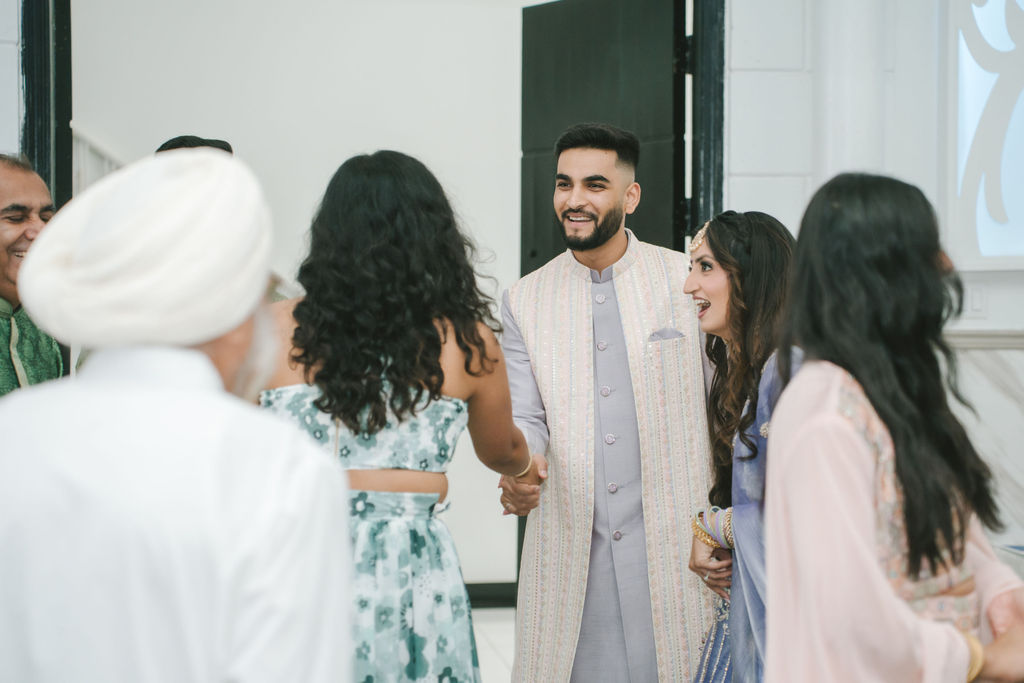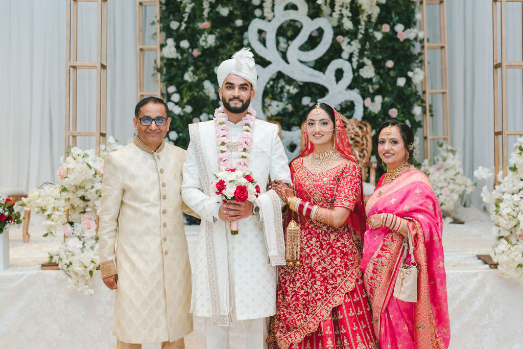 They opened the day in their respective suites. Kalp was calmly readying himself: the suit, the cufflinks, a final check in the mirror. No rush, no showmanship. The mood was quiet but intentional. Meanwhile, Samdisha was surrounded by her family, going through final touches: the outfit, jewelry, the subtle adjustments that elevate the look without overemphasis. The energy wasn’t staged; it just was.