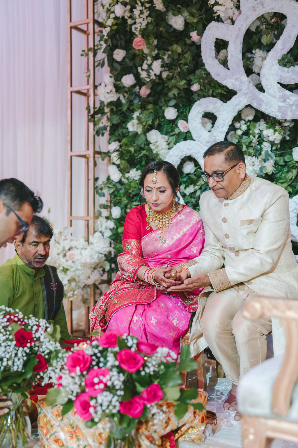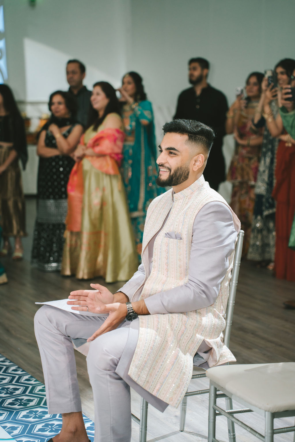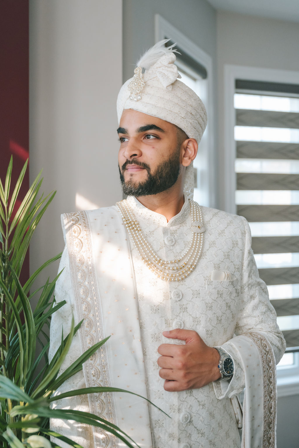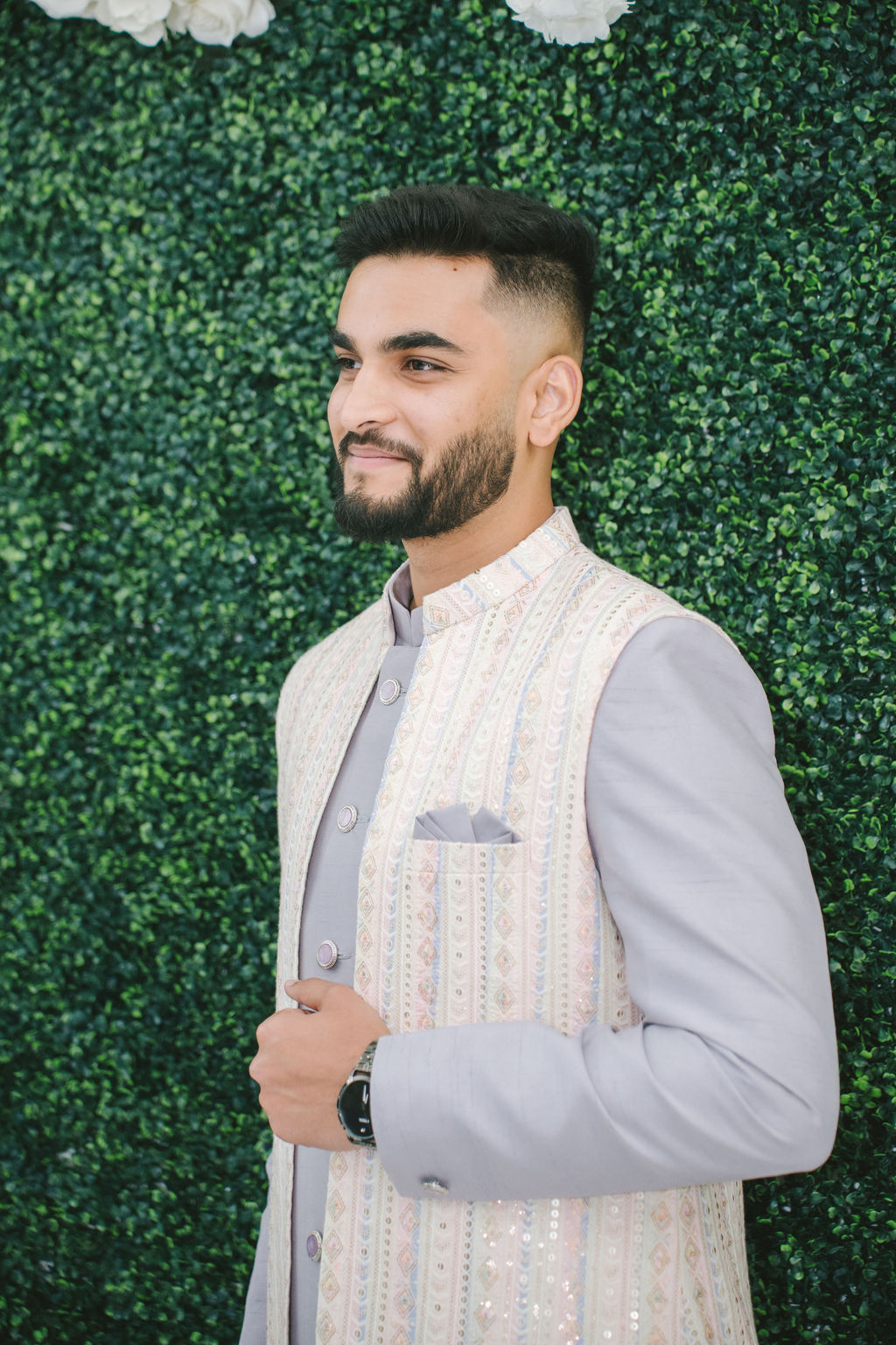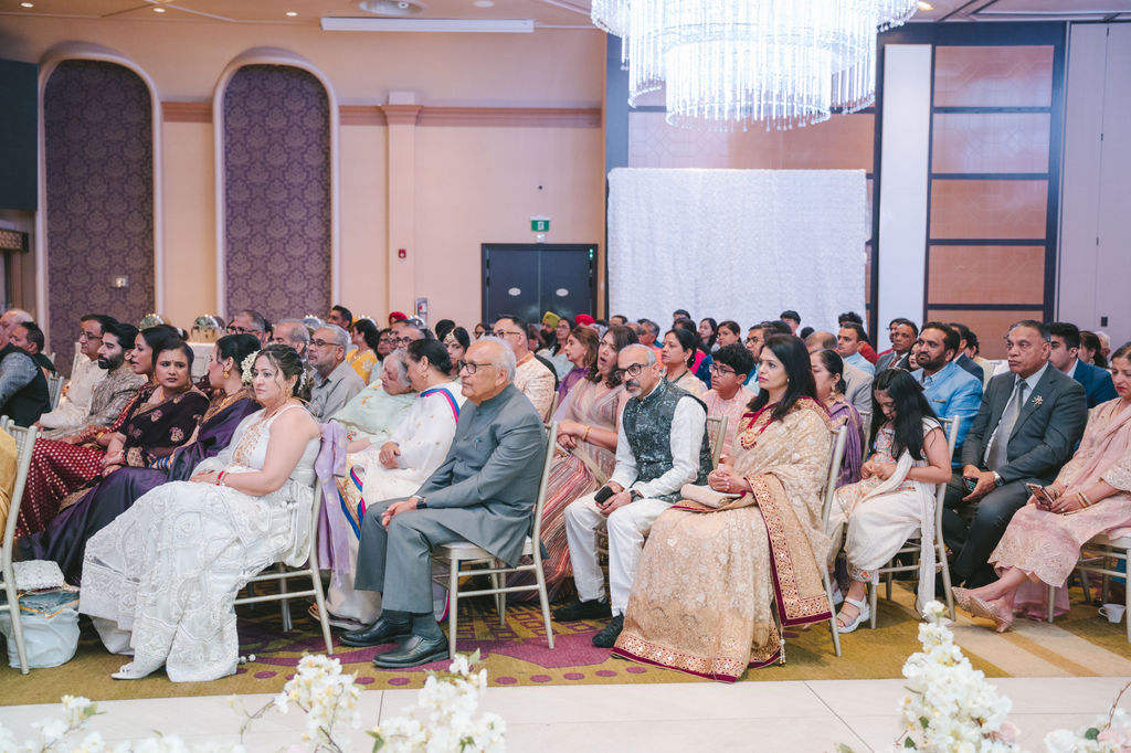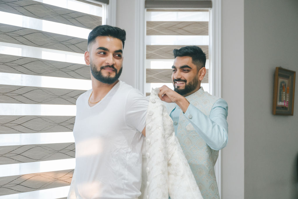 They opened the day in their respective suites. Kalp was calmly readying himself: the suit, the cufflinks, a final check in the mirror. No rush, no showmanship. The mood was quiet but intentional. Meanwhile, Samdisha was surrounded by her family, going through final touches: the outfit, jewelry, the subtle adjustments that elevate the look without overemphasis. The energy wasn’t staged; it just was.