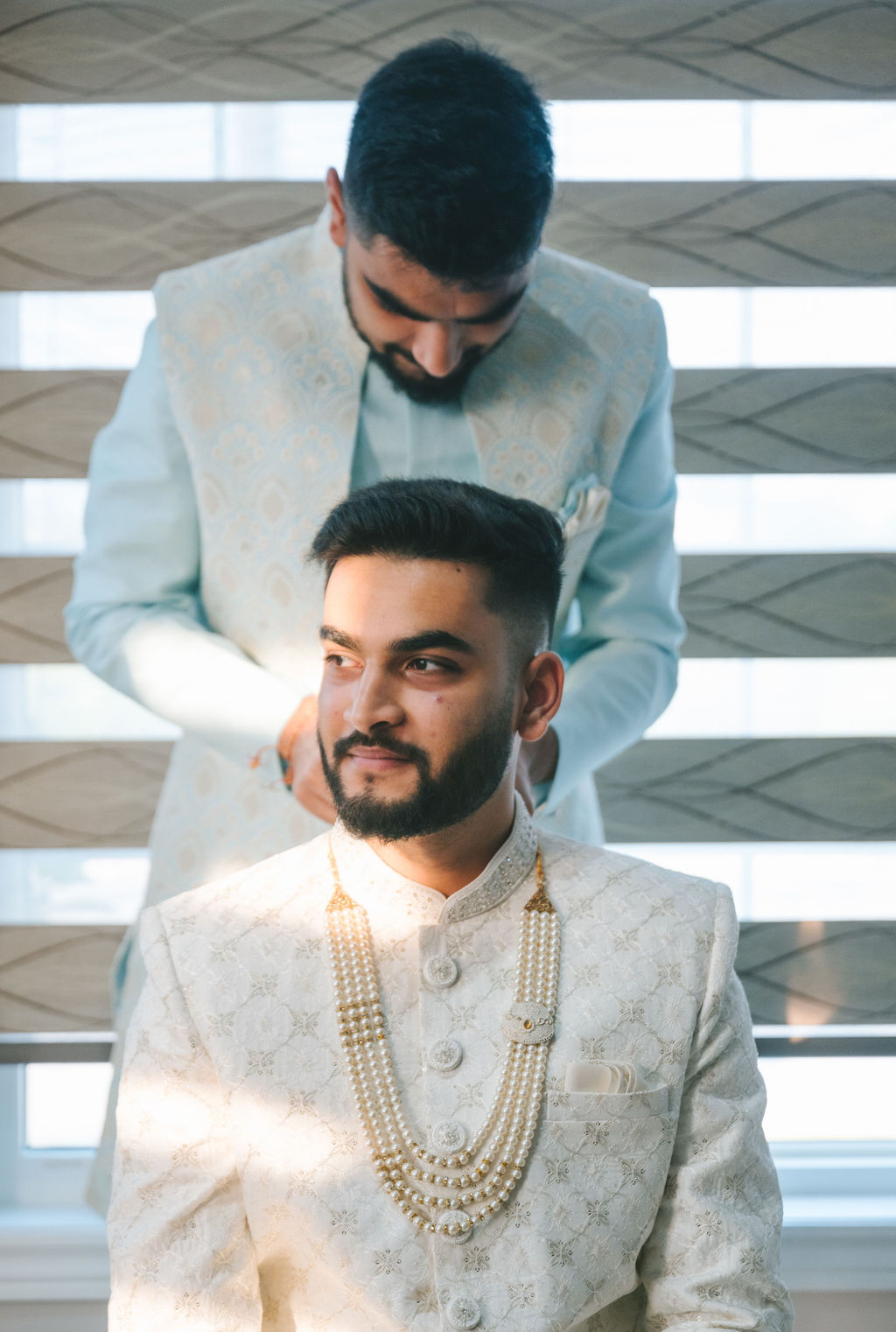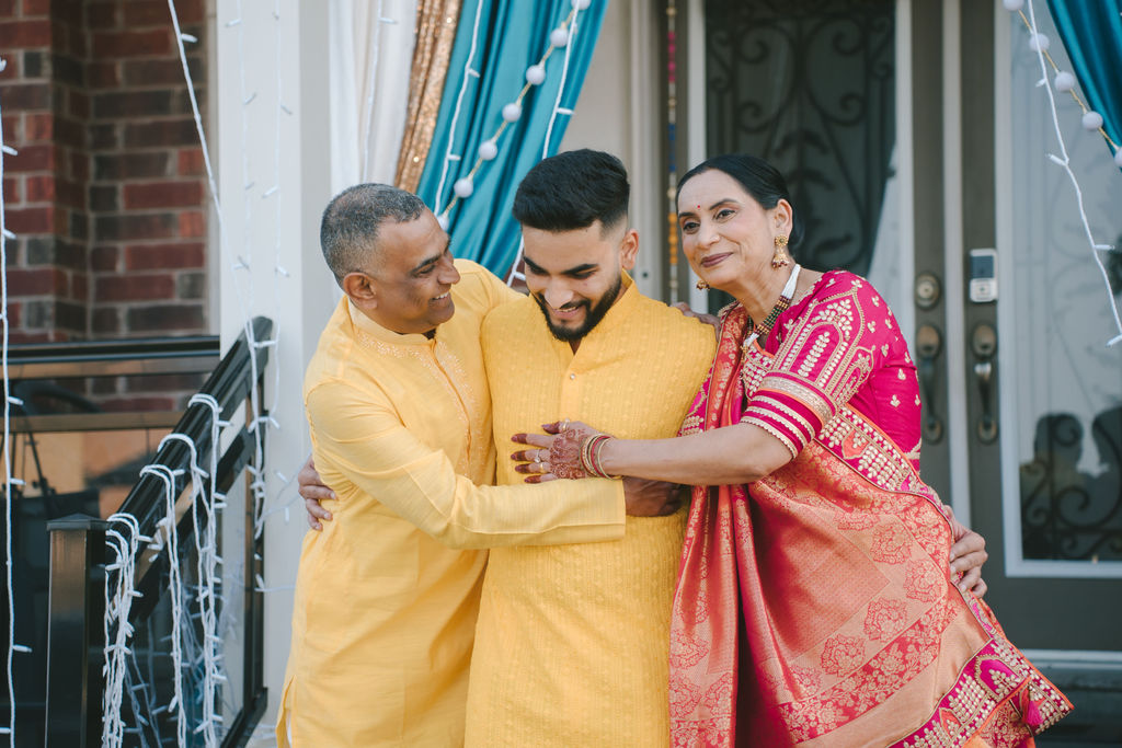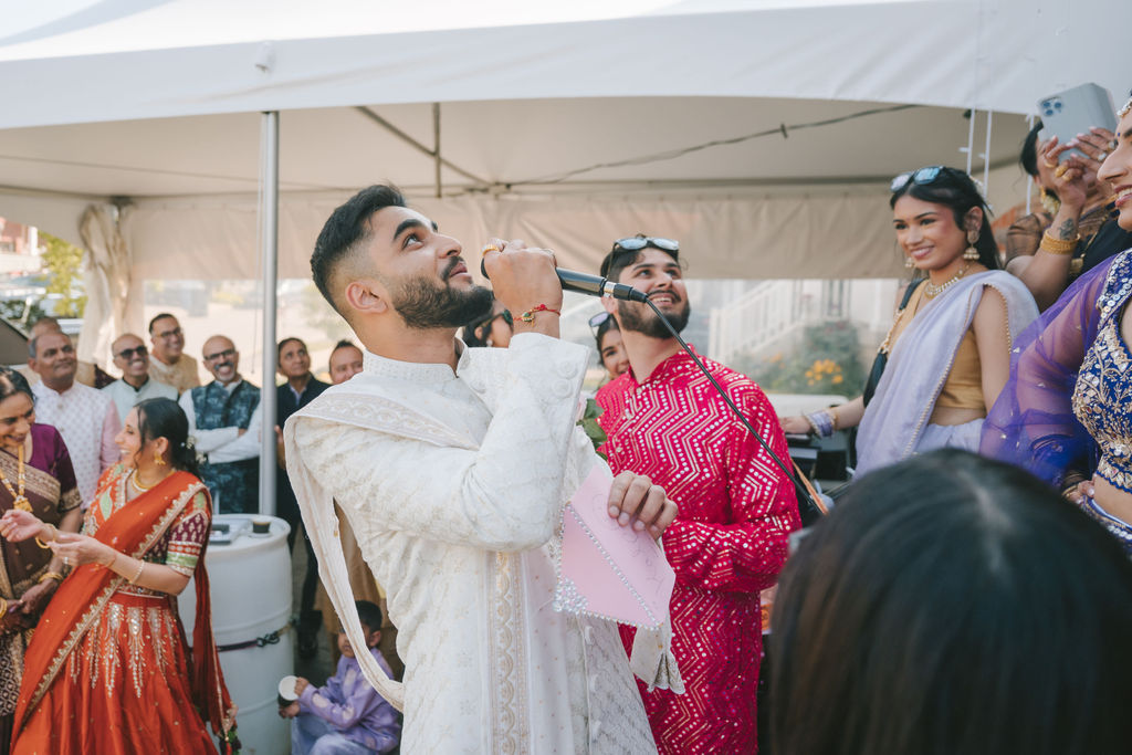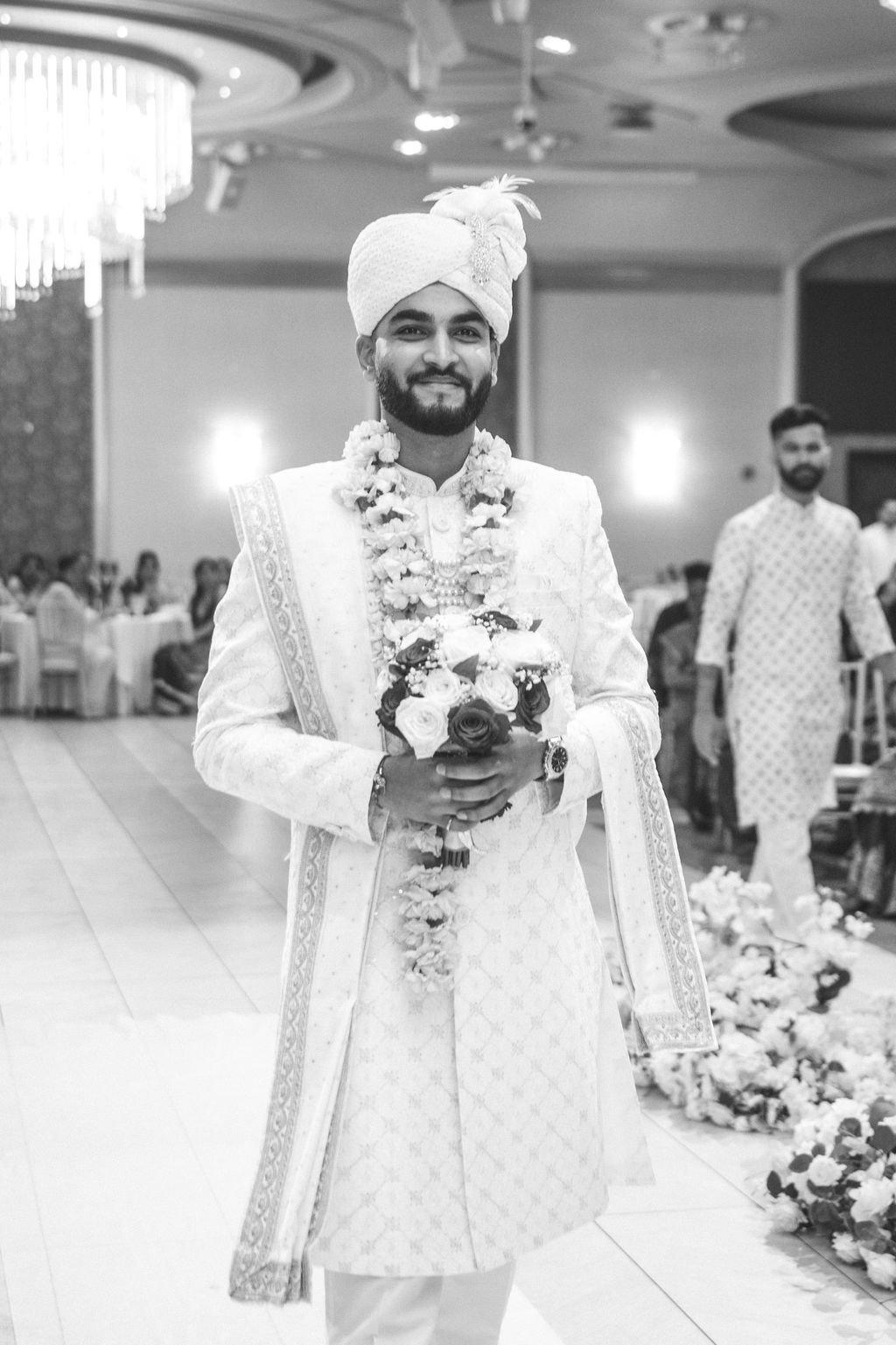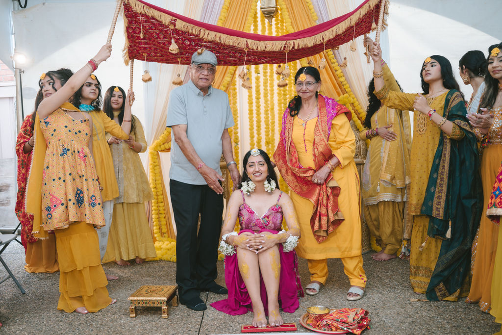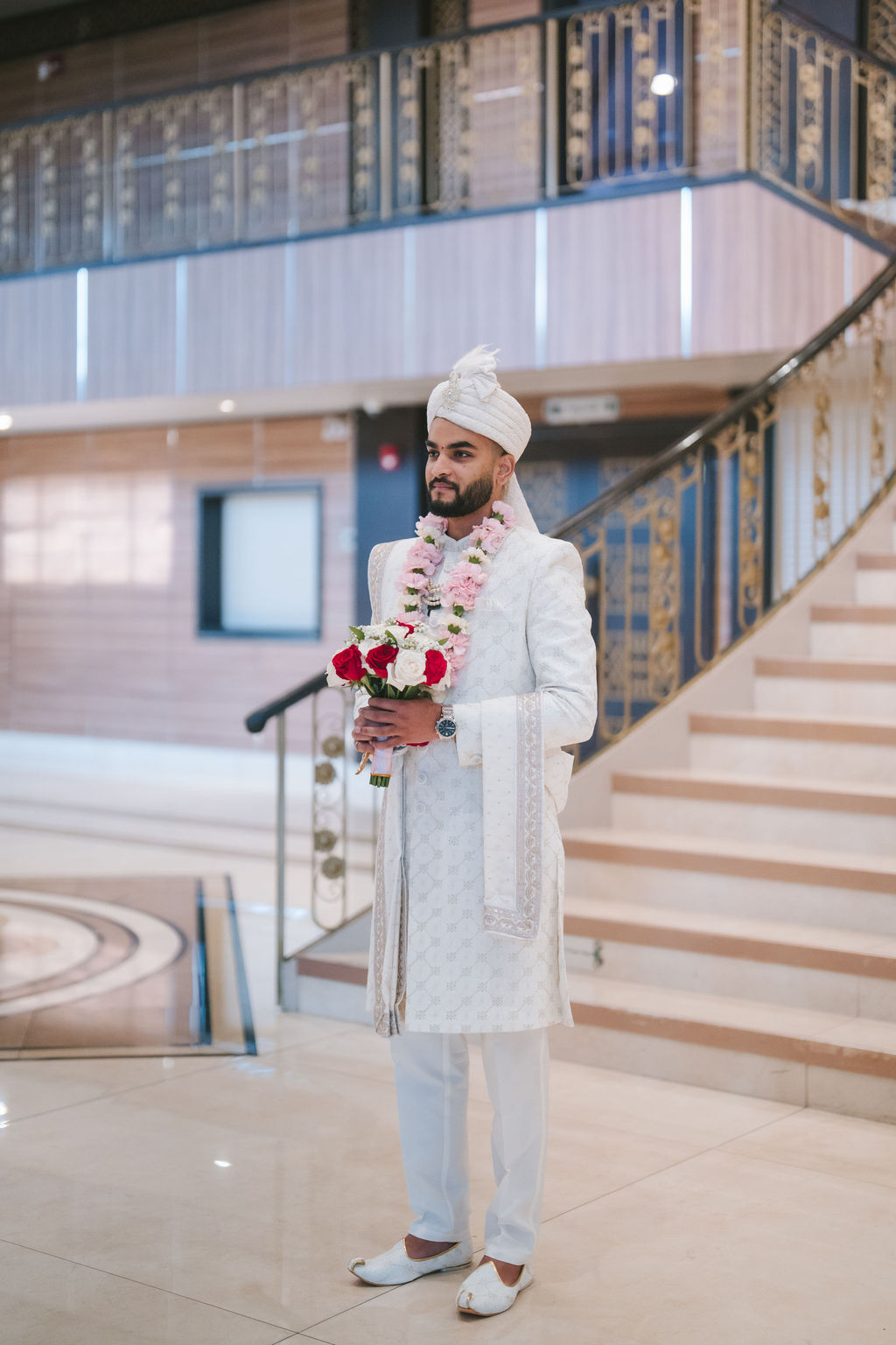 They opened the day in their respective suites. Kalp was calmly readying himself: the suit, the cufflinks, a final check in the mirror. No rush, no showmanship. The mood was quiet but intentional. Meanwhile, Samdisha was surrounded by her family, going through final touches: the outfit, jewelry, the subtle adjustments that elevate the look without overemphasis. The energy wasn’t staged; it just was.