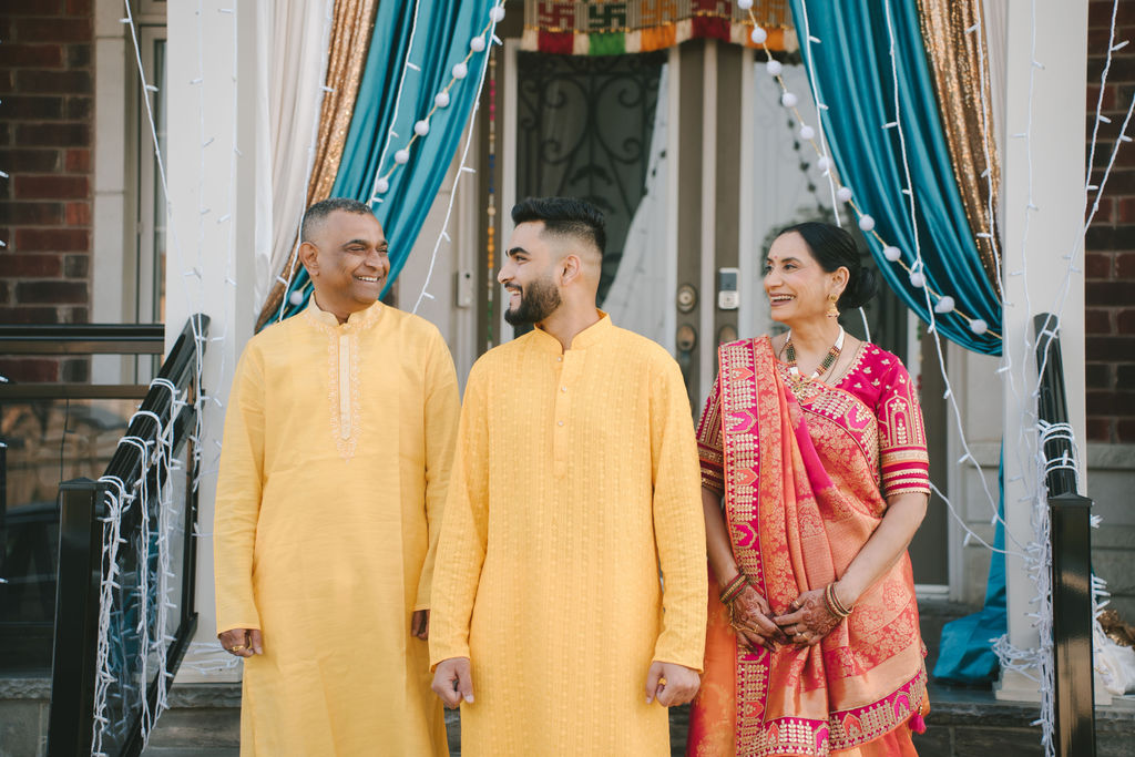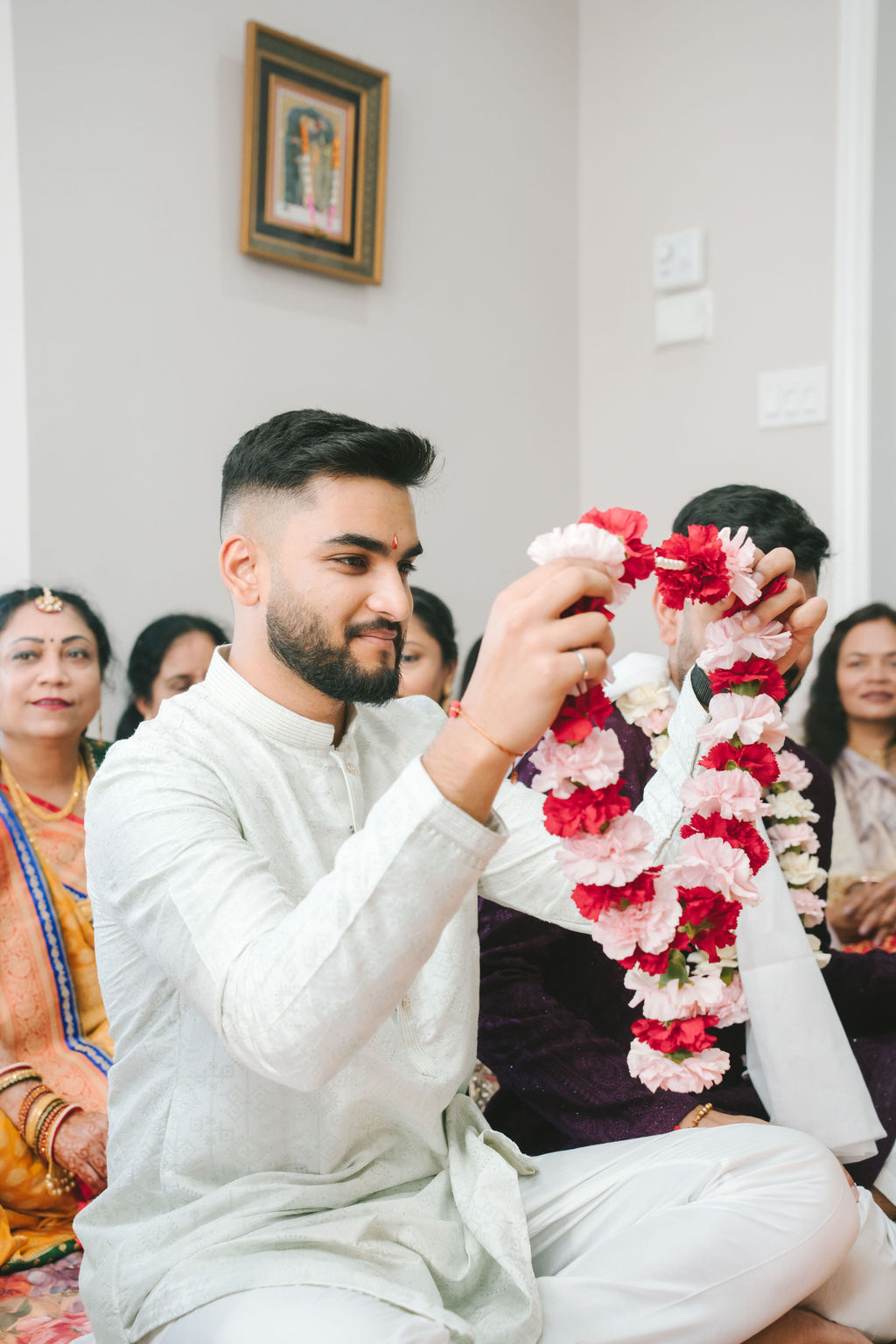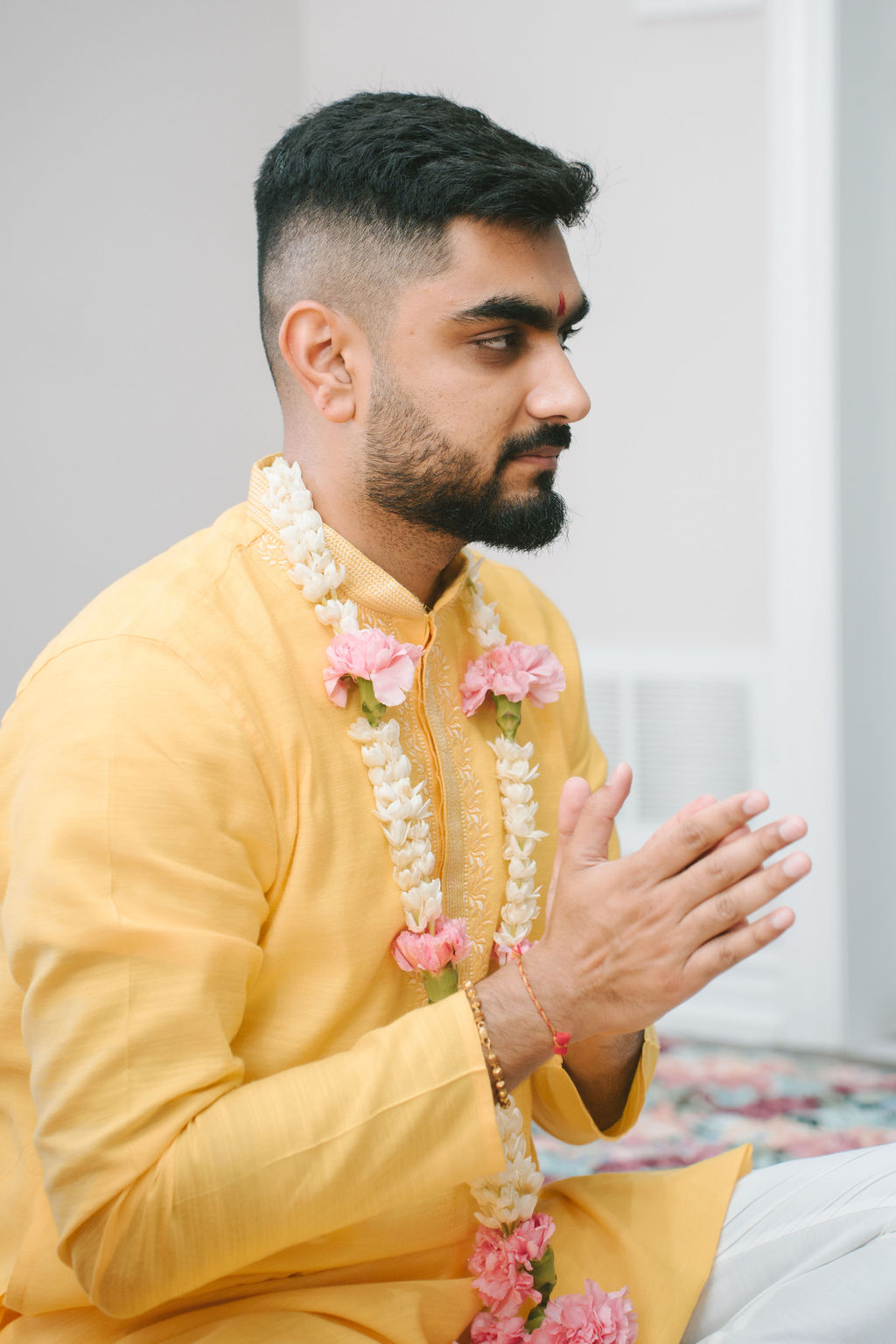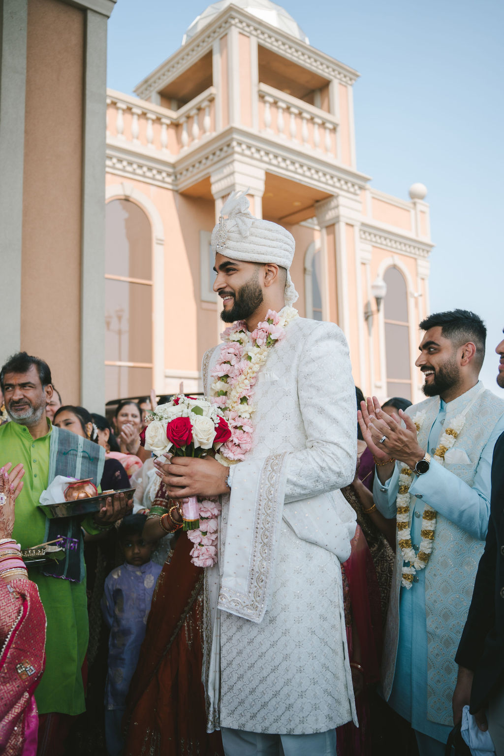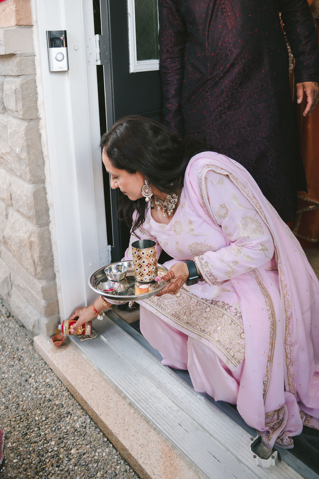 They opened the day in their respective suites. Kalp was calmly readying himself: the suit, the cufflinks, a final check in the mirror. No rush, no showmanship. The mood was quiet but intentional. Meanwhile, Samdisha was surrounded by her family, going through final touches: the outfit, jewelry, the subtle adjustments that elevate the look without overemphasis. The energy wasn’t staged; it just was.