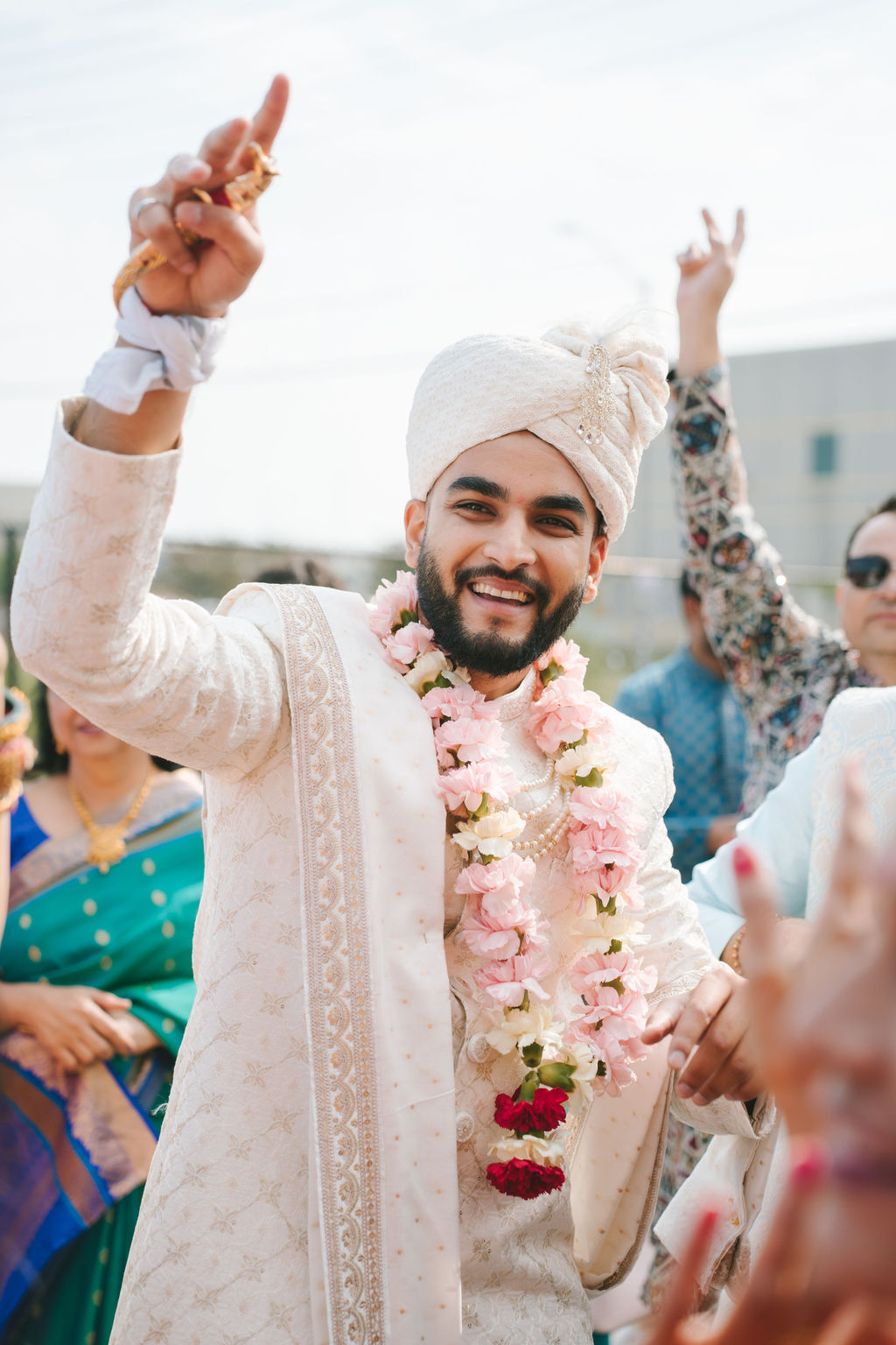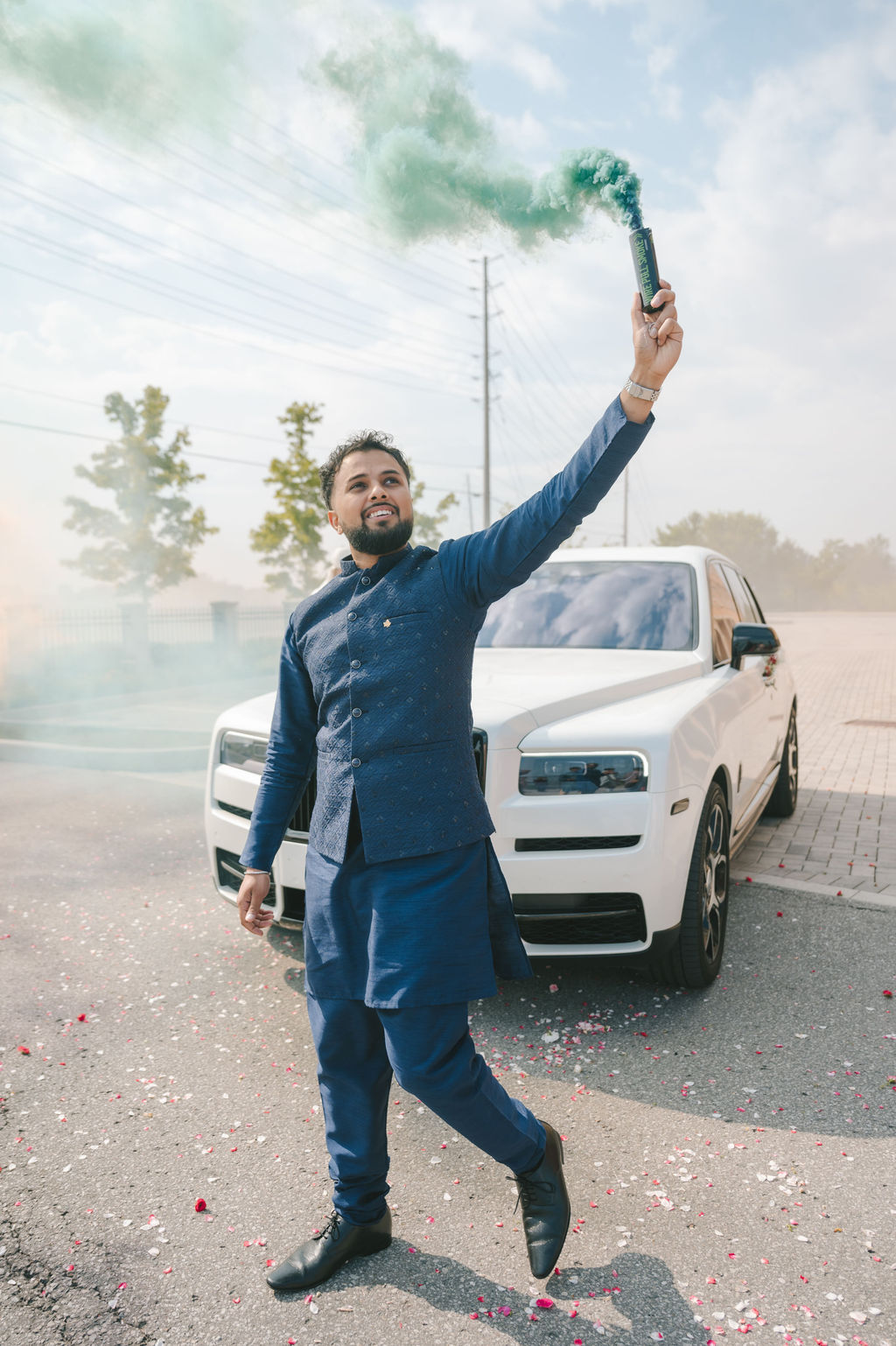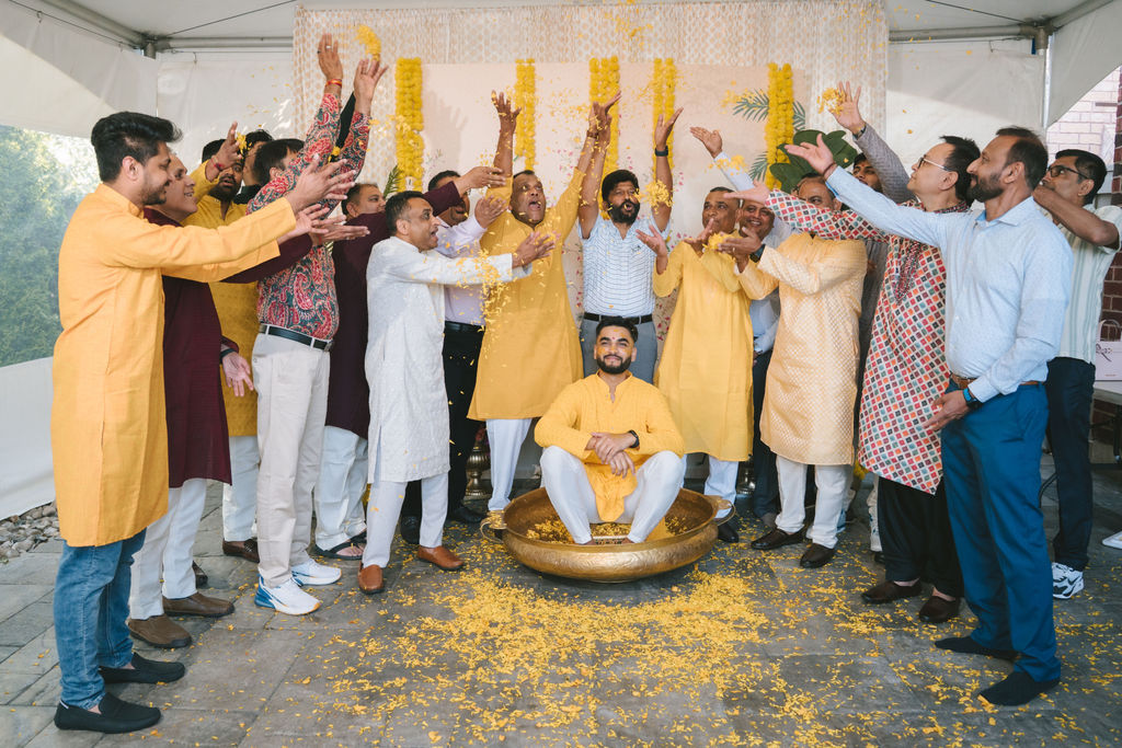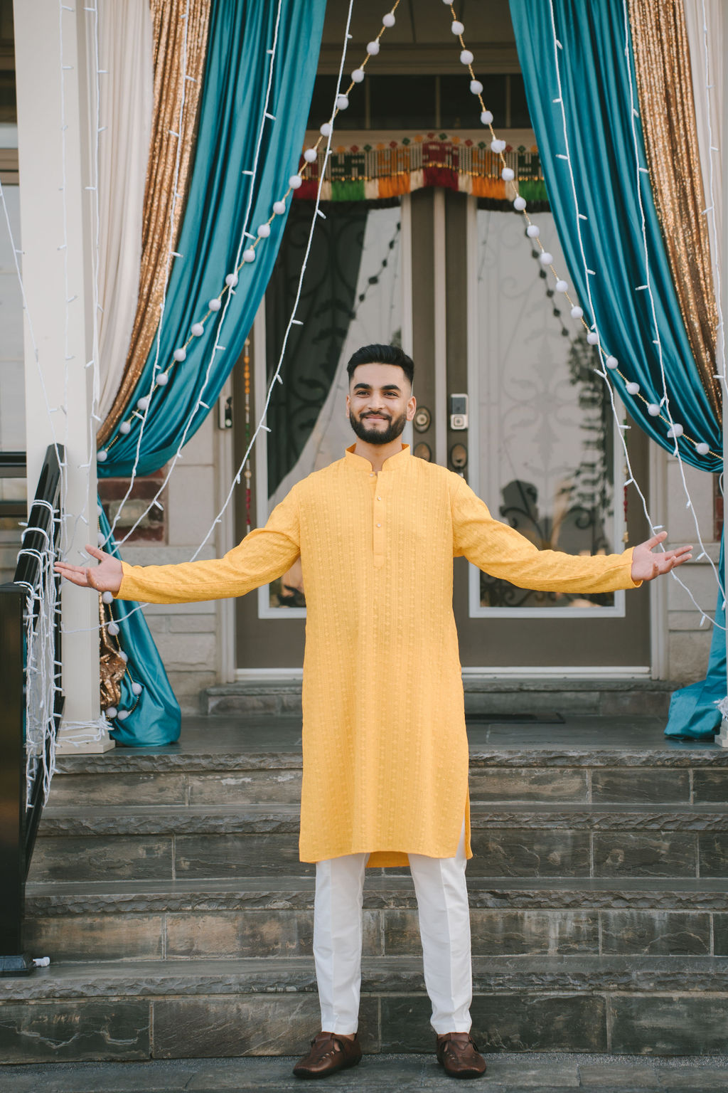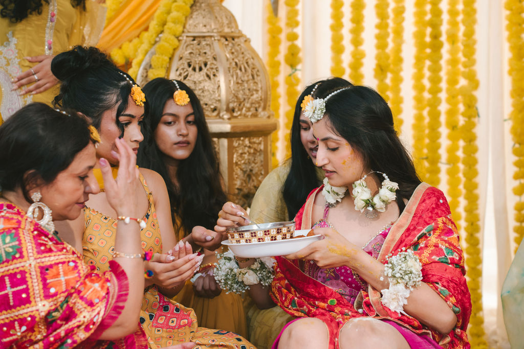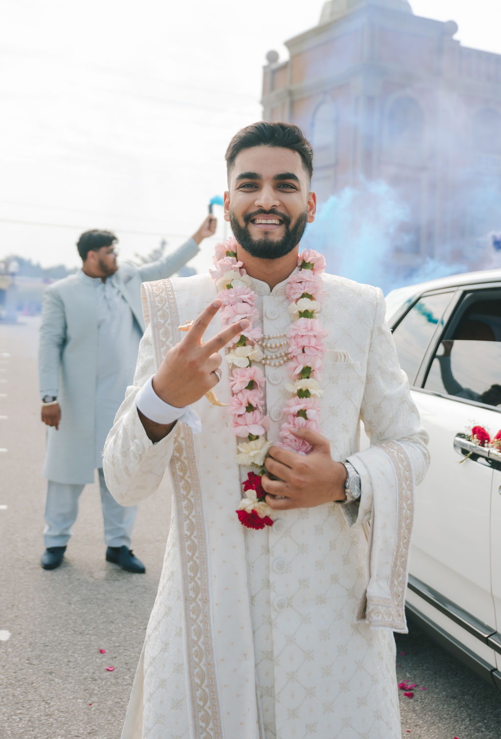 They opened the day in their respective suites. Kalp was calmly readying himself: the suit, the cufflinks, a final check in the mirror. No rush, no showmanship. The mood was quiet but intentional. Meanwhile, Samdisha was surrounded by her family, going through final touches: the outfit, jewelry, the subtle adjustments that elevate the look without overemphasis. The energy wasn’t staged; it just was.