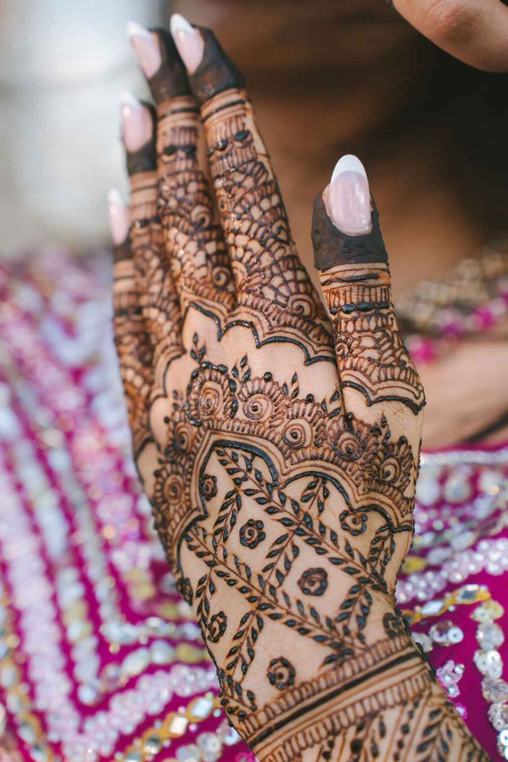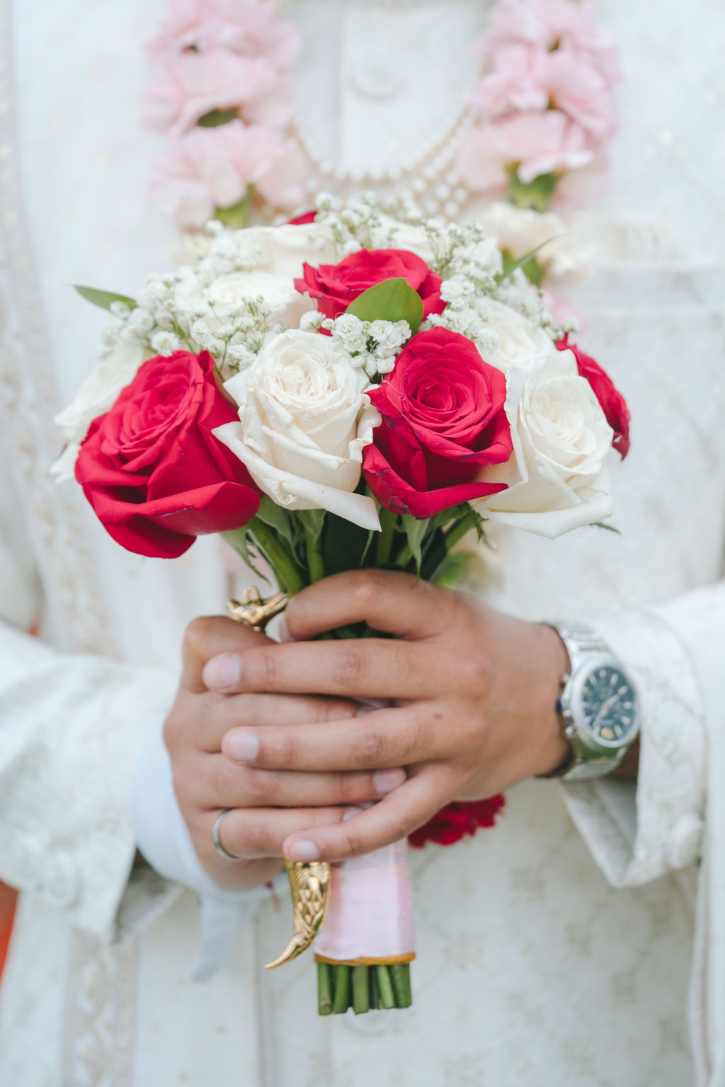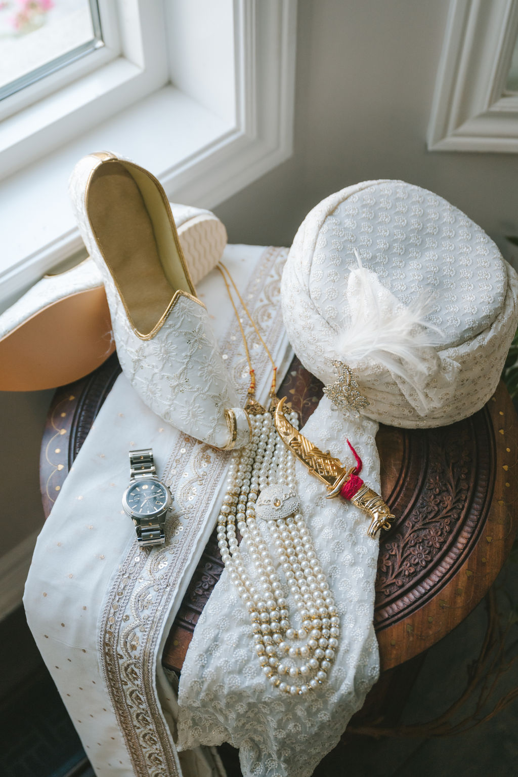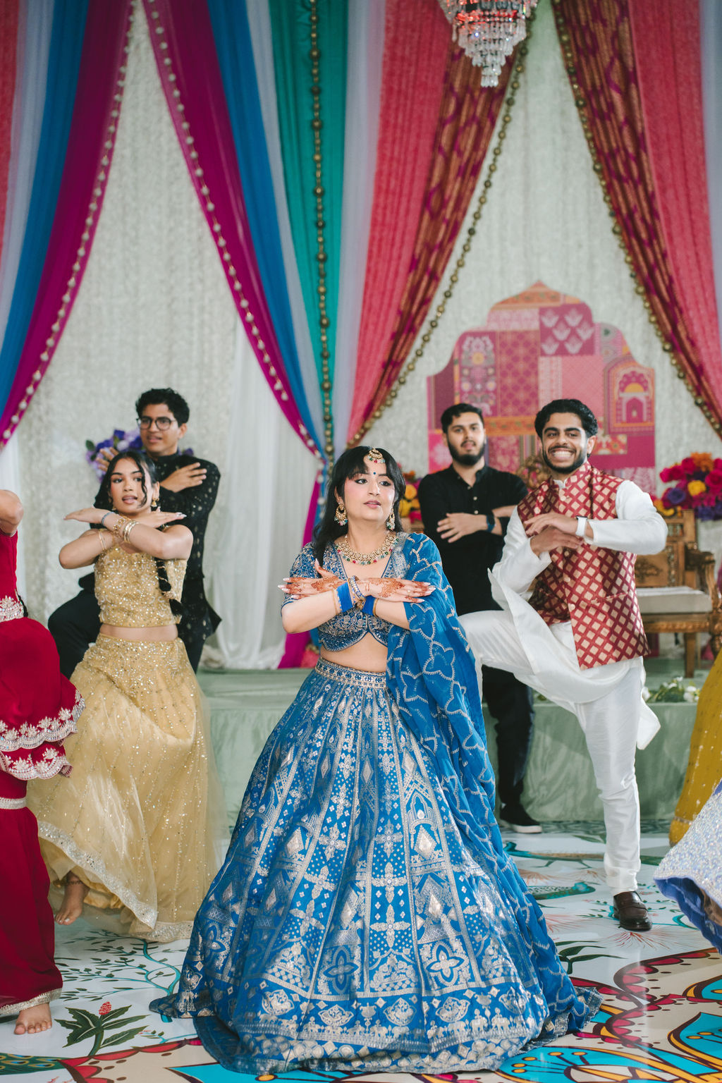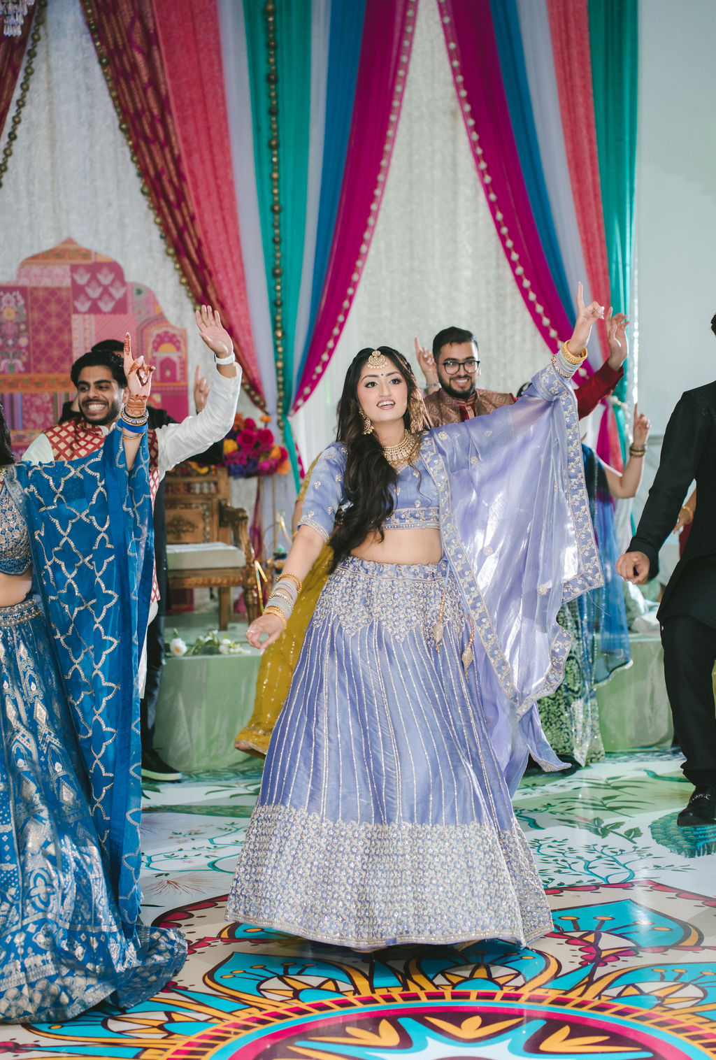 They opened the day in their respective suites. Kalp was calmly readying himself: the suit, the cufflinks, a final check in the mirror. No rush, no showmanship. The mood was quiet but intentional. Meanwhile, Samdisha was surrounded by her family, going through final touches: the outfit, jewelry, the subtle adjustments that elevate the look without overemphasis. The energy wasn’t staged; it just was.