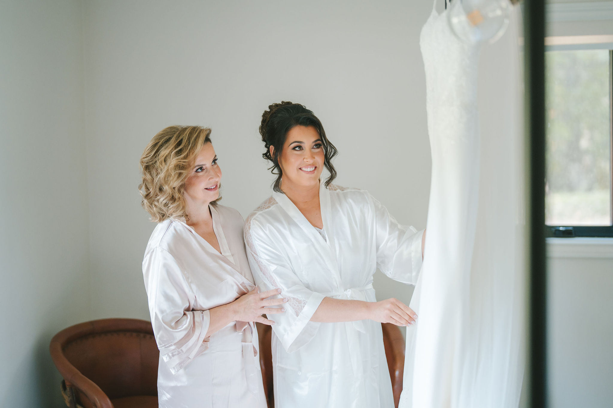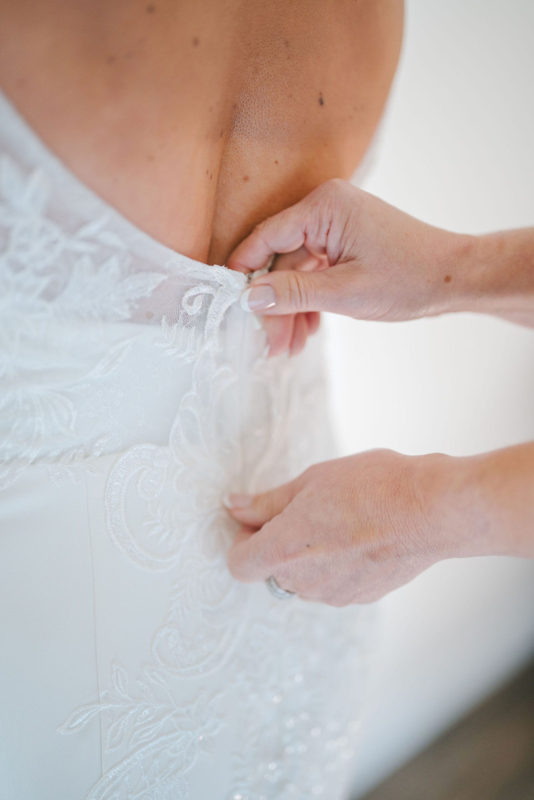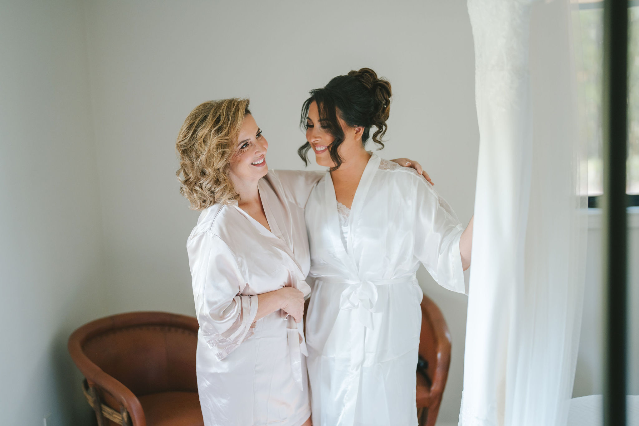 By the time I arrived at Jessica’s, her hair was already in an updo and her makeup was more of a natural glam. She had yet to put on her dress. But even then, she was a stunning bride! Before she wore it, I wanted to have Jessica and her mom have some sort of moment. I instructed the both of them to stand at the foot of the dress and look at the dress fondly.