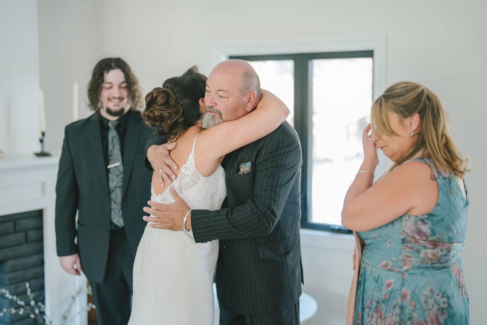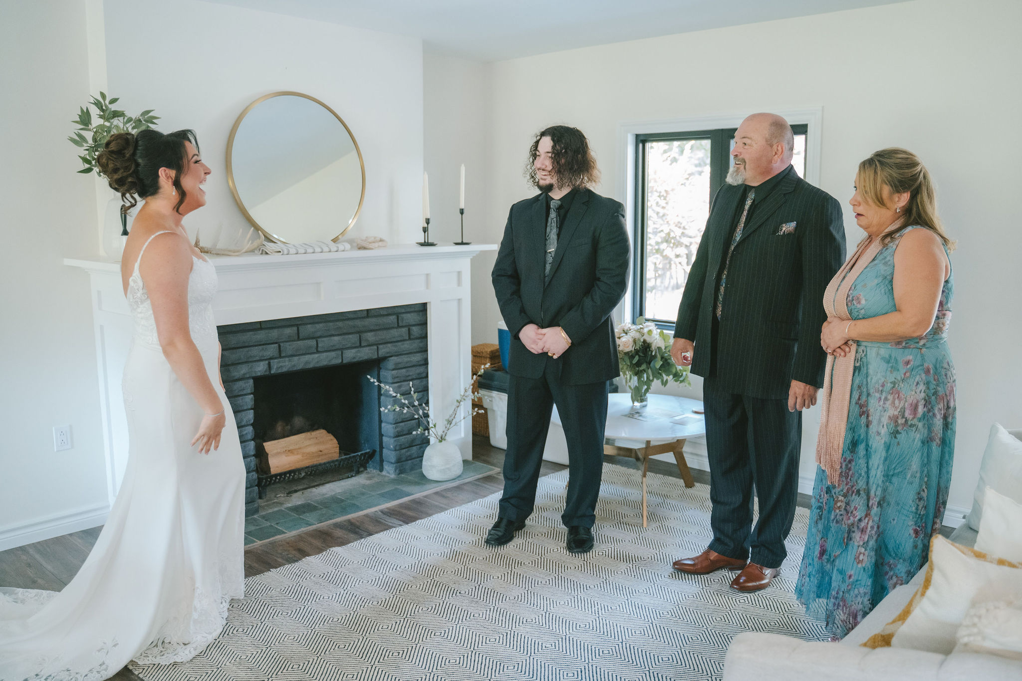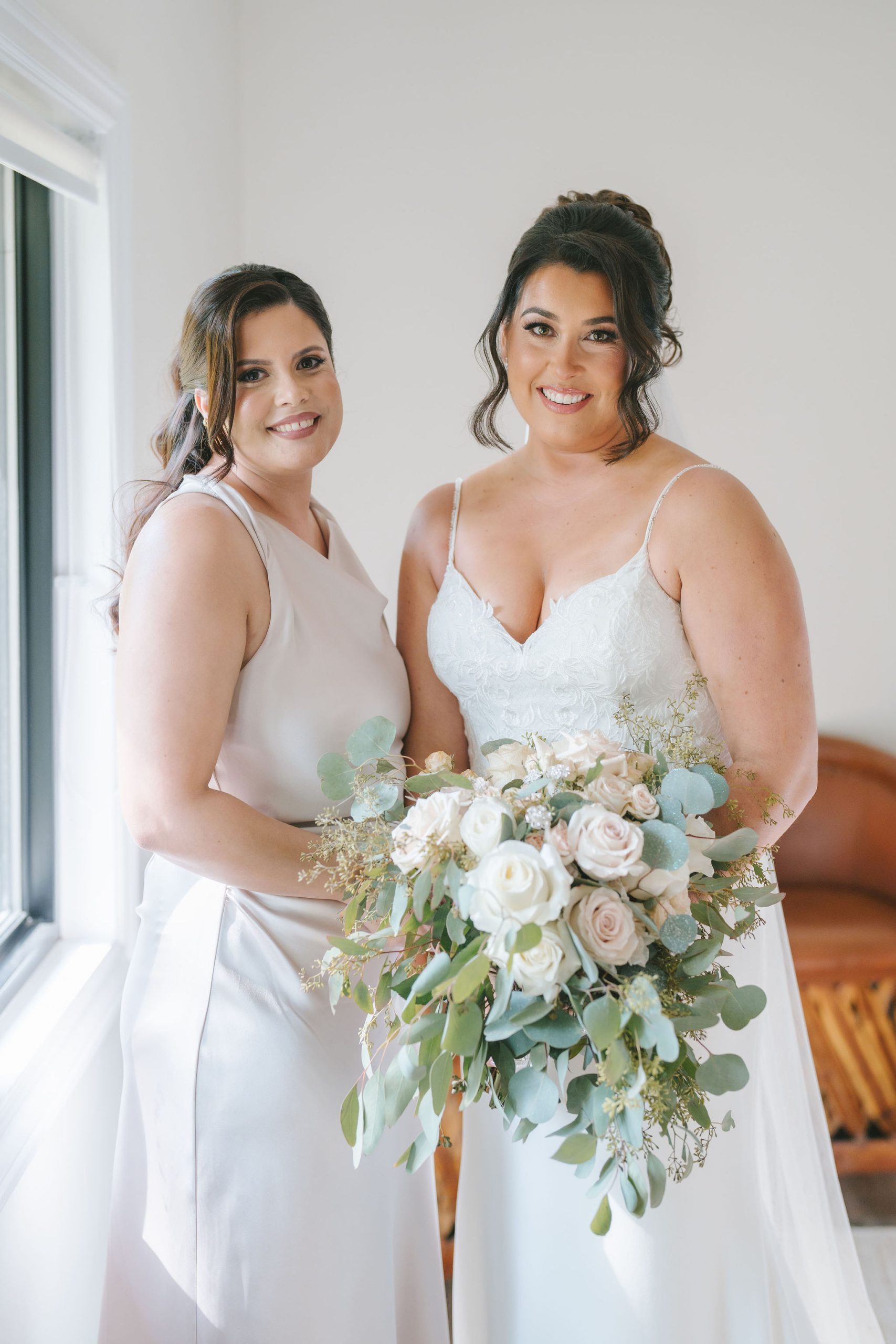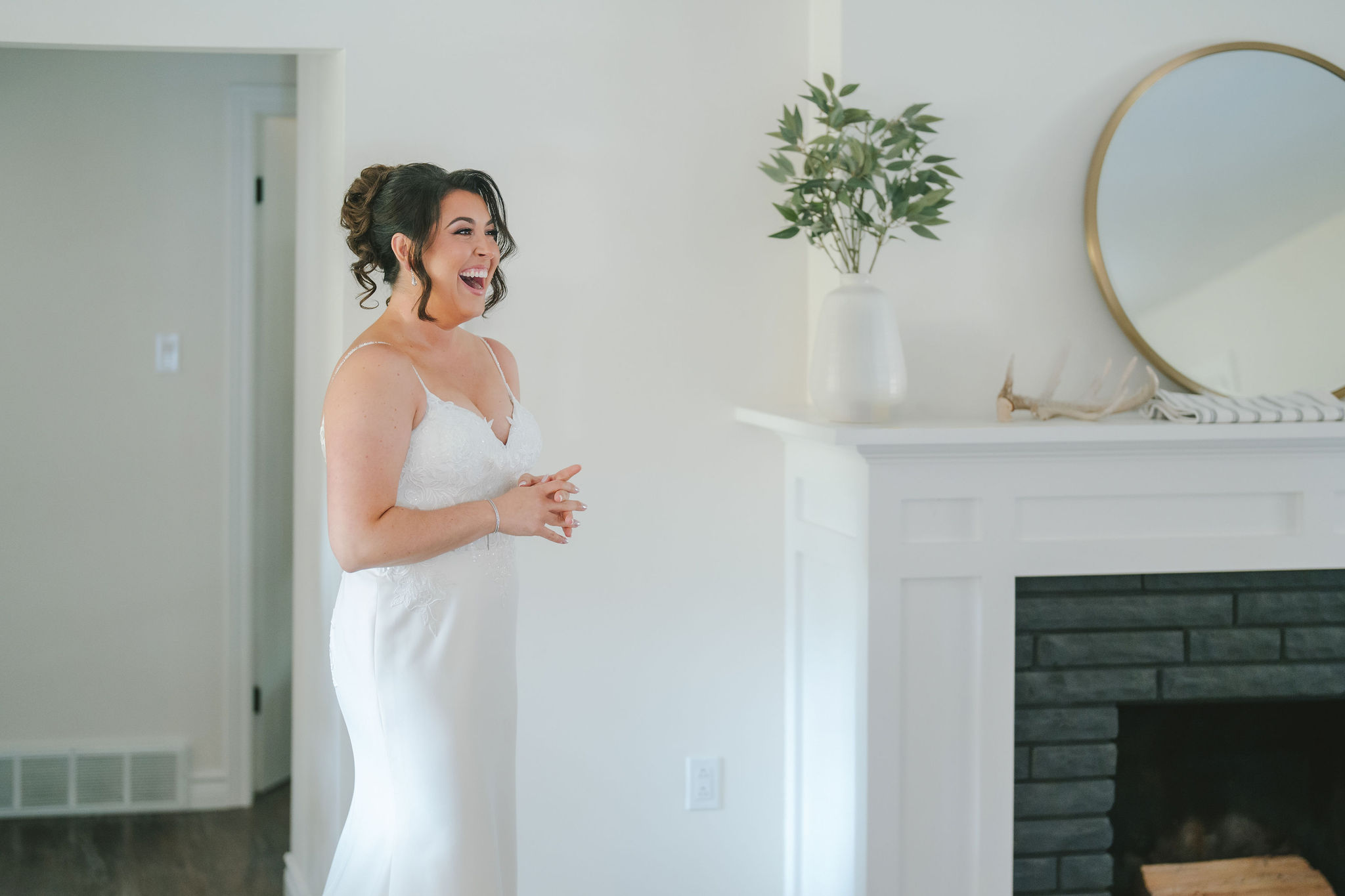 By the time I arrived at Jessica’s, her hair was already in an updo and her makeup was more of a natural glam. She had yet to put on her dress. But even then, she was a stunning bride! Before she wore it, I wanted to have Jessica and her mom have some sort of moment. I instructed the both of them to stand at the foot of the dress and look at the dress fondly.