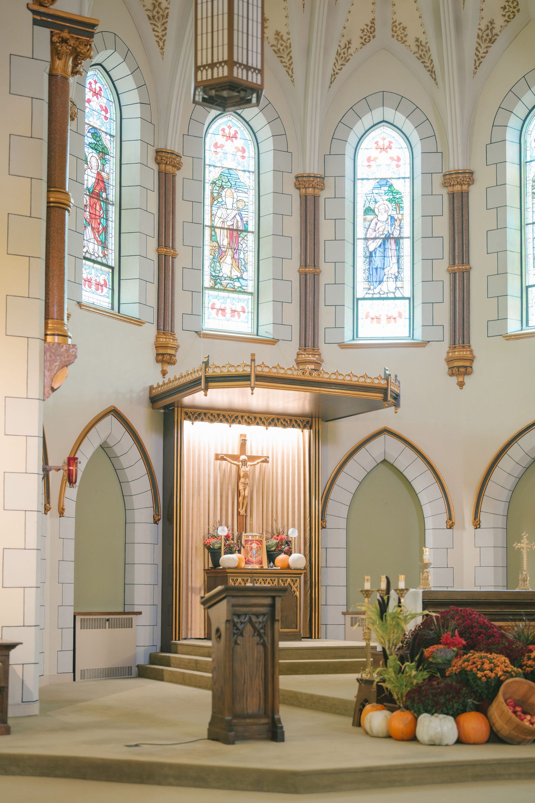The ceilings arched up into tips at the center, and all of the windows were stained glass.