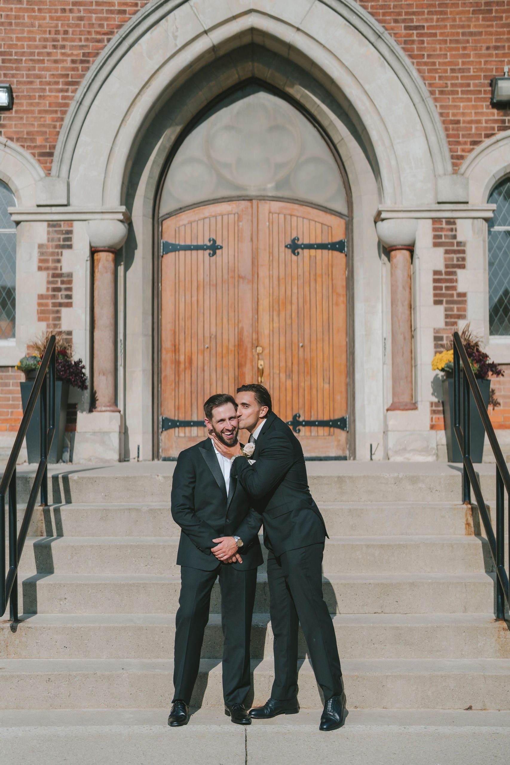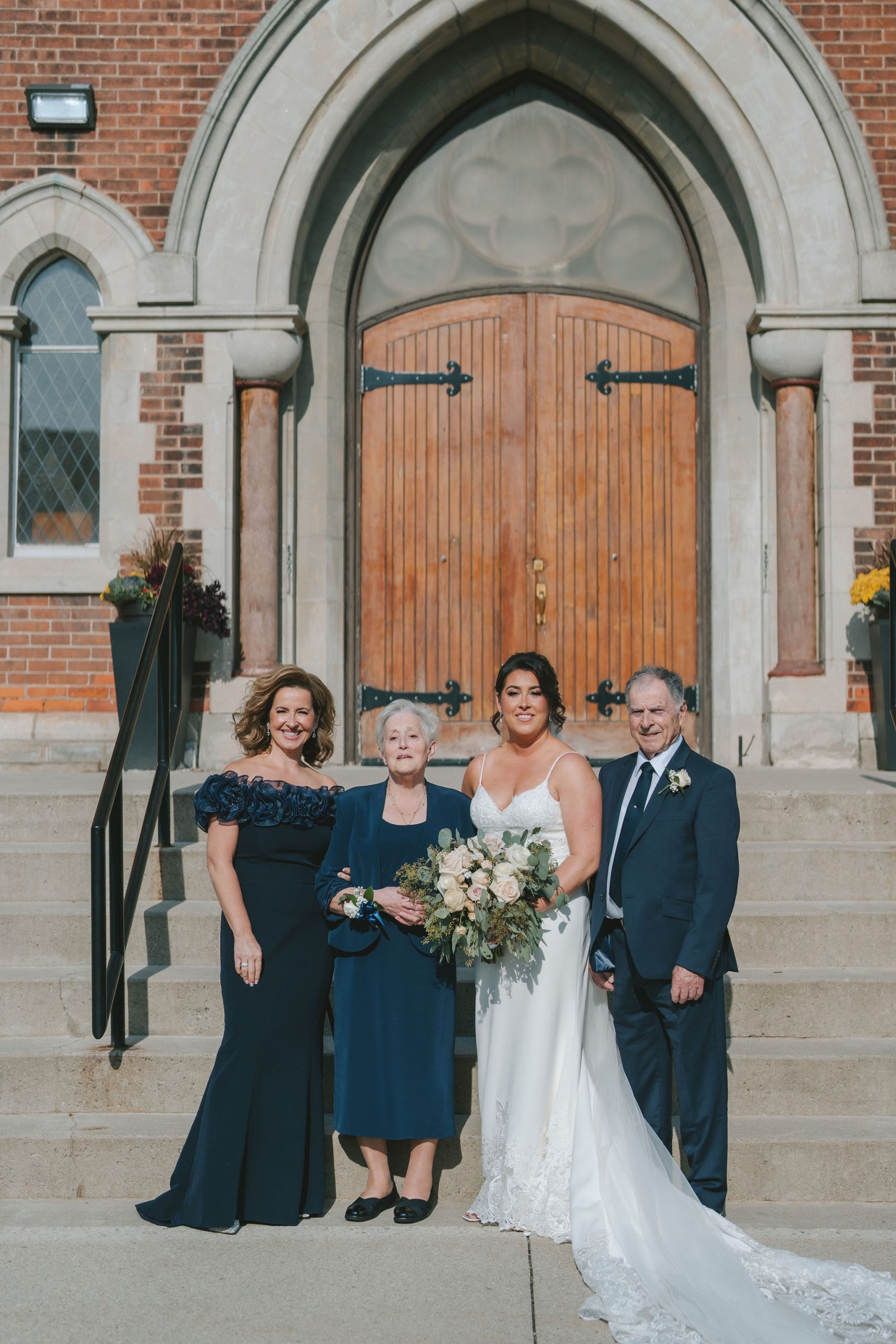 As soon as everybody else left for the reception, Kamil and Jessica wanted to take a few pictures at the church with their family. We opted to do formal pictures instead since it was late in the afternoon already. I positioned each of them to stand on the stairs and smile next to each other, switching them out to have enough pictures as a group, trio, and duo.