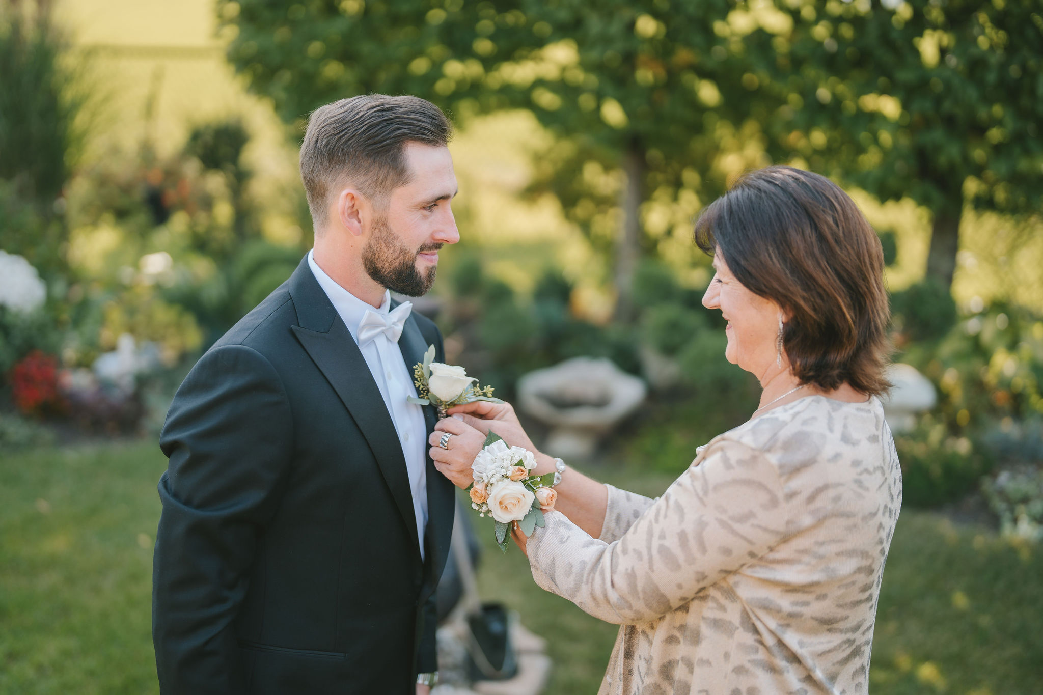 On the day of their wedding, Kamil and Jessica got ready in separate houses. They started their day early in the morning. I arrived at Kamil’s first to capture him putting on a corsage and a boutonniere on his mom and dad. The flowers looked so lovely and sweet.