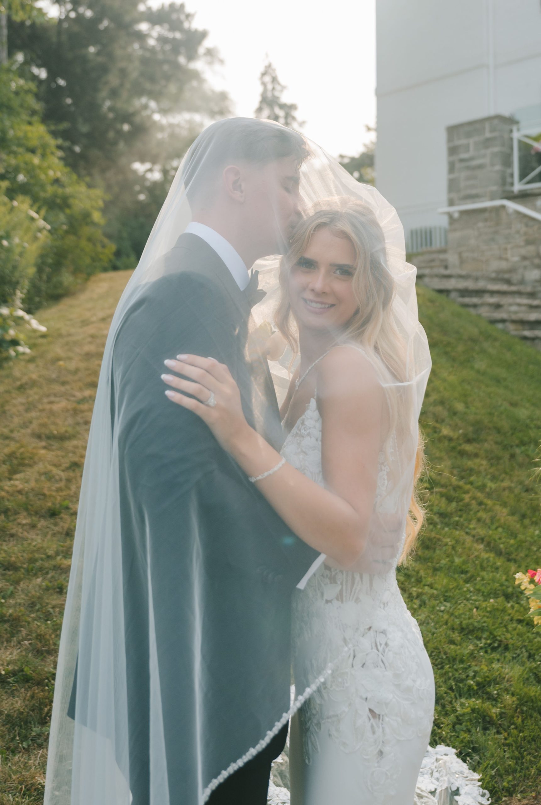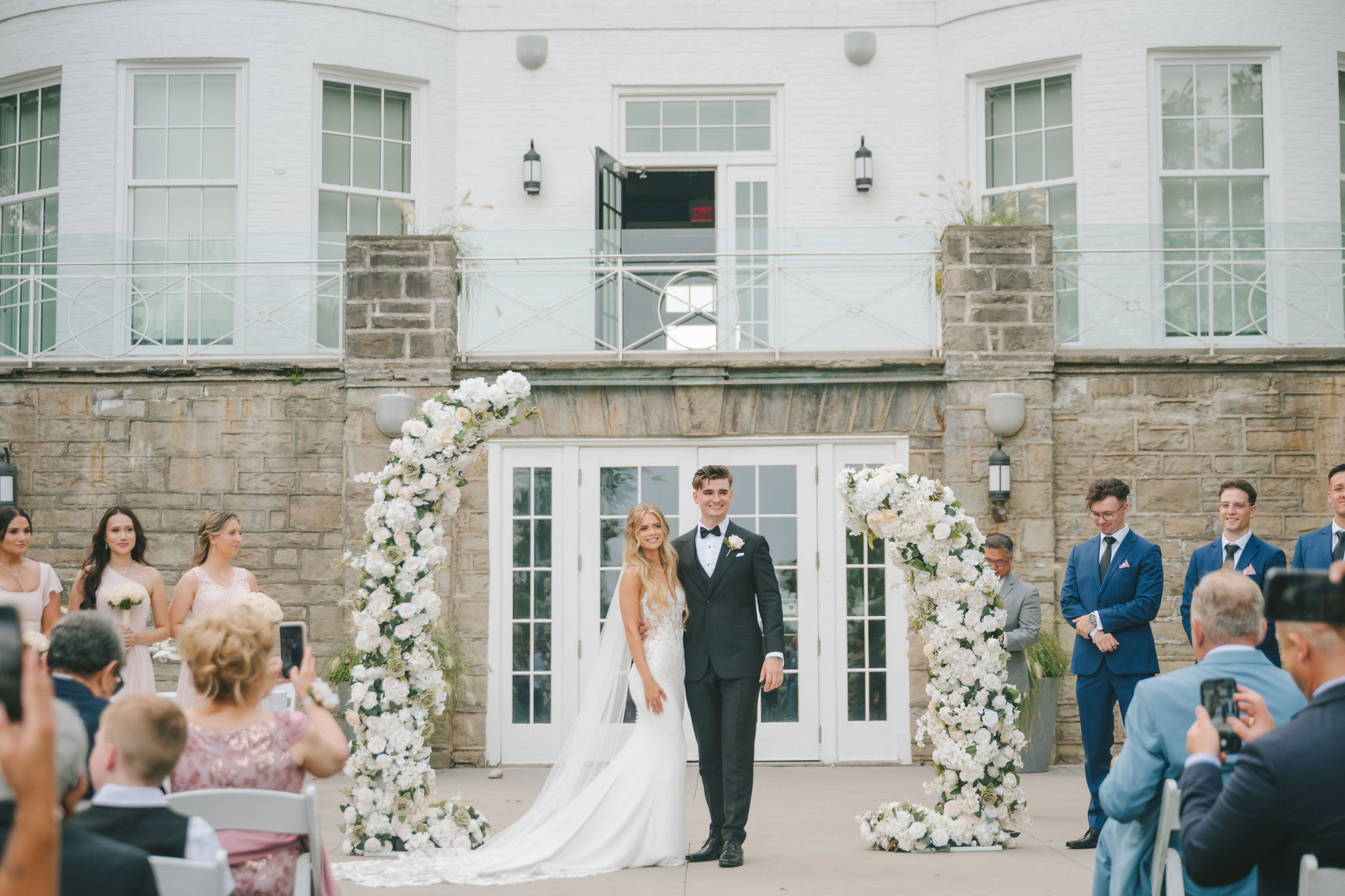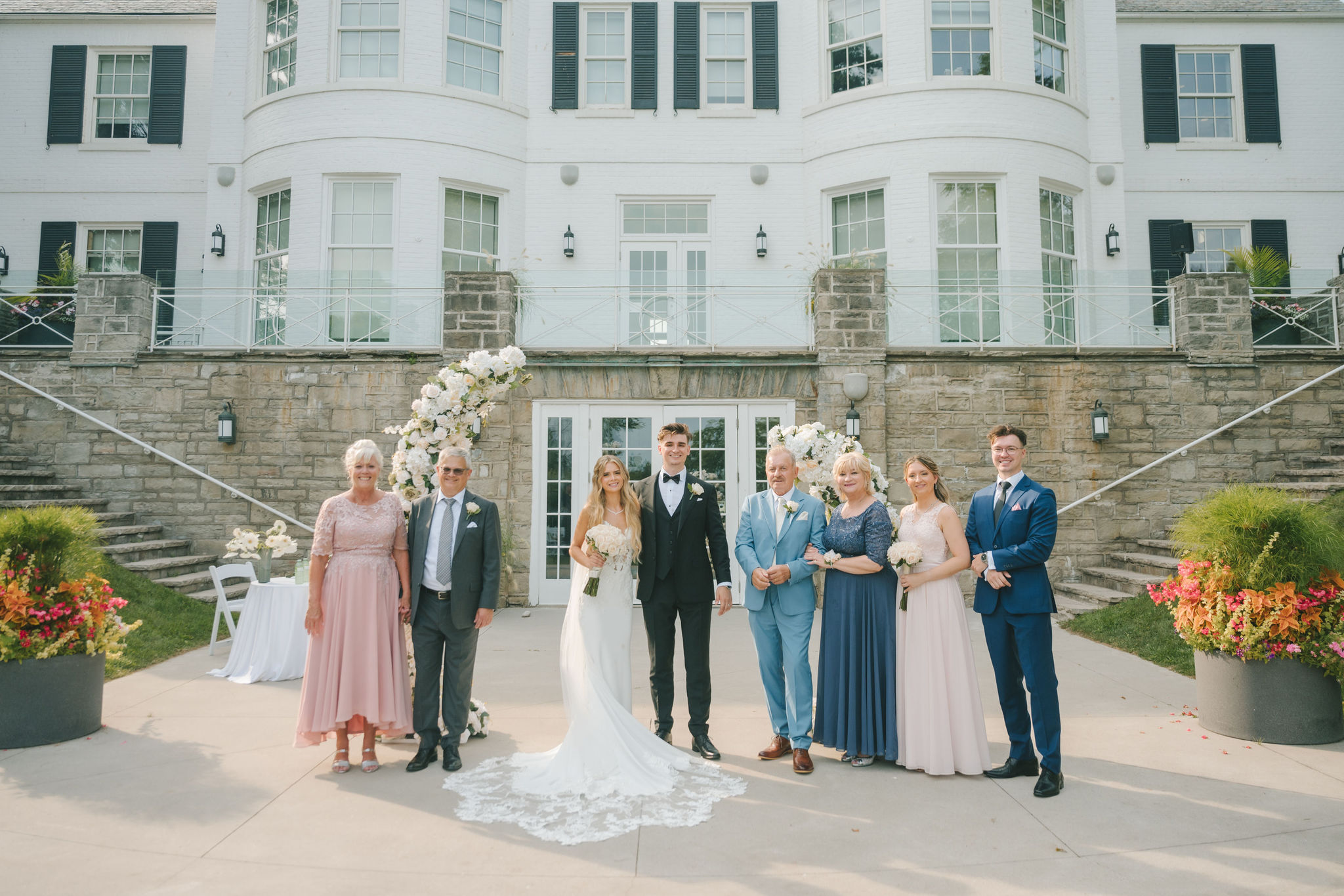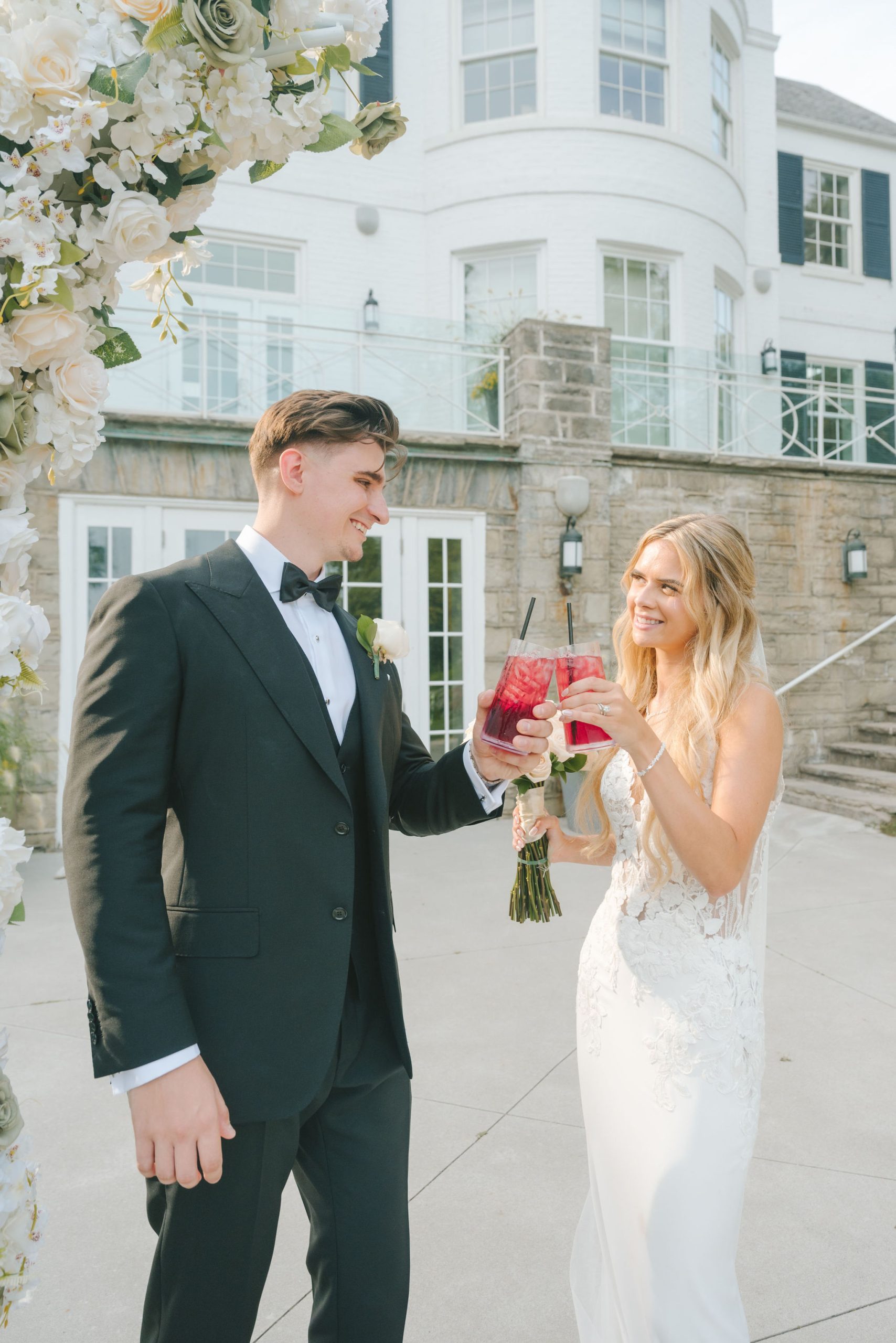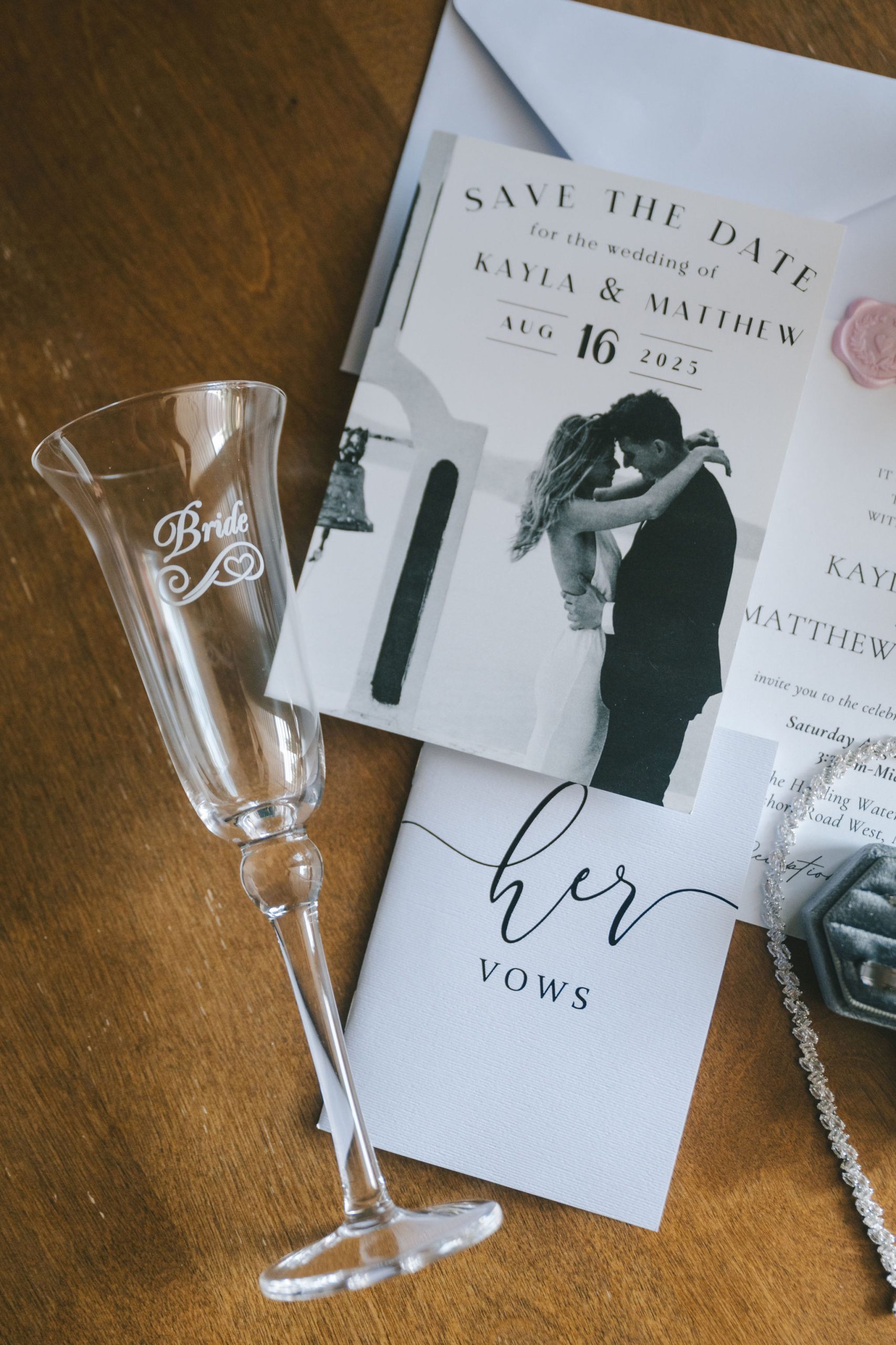 This one meant so much to me! You know how in Greek myth stories, Aphrodite was said to bless the people whose love reflected both the sacredness of devotion and beauty? This was that. Under the same light that once shimmered over her seas, it was so dear to me that Matthew asked Kayla to be his forever. Before the magic of their wedding began, the proposal that occurred in Santorini felt like something lifted from an ancient tale, and when the day came to finally seal that promise, the Harding Waterfront Estate became the perfect modern echo of that legend—an ode to faith, elegance, and enduring romance! Within the estate’s walls, it will always be perfect when the room is filled with the sounds of laughter mingled with the rustle of fabric and the delicate sound of anticipation. This is one of those moments that you can’t help but audibly gasp! Kayla’s gown was so beautiful—a breathtaking Enzoani piece adorned with pearl embellishments—it seemed almost to shimmer brightly with every detail capturing her essence: poised, radiant, and deeply in love while she shared bonding moments with her loved ones. In another tale, Matthew readied himself in his tailored Italian suit that made him look regal and dashing! There was a reverence in the air, a peace that mirrored their faith, grounding the beauty of the day in meaning. When the ceremony was official, it carried a sense of intimacy. Beneath a beautiful floral arch of blush roses and soft greenery, they stood together, close, hand in hand, surrounded by those who have prayed and celebrated with them through the years. The words spoken between their breaths were incredibly sacred and full of meaning—echoes of their shared faith and the vows that bound them in front of the people they love most. Everything was precious, and I’m glad we got to capture that for them to look back on! And as they exchanged rings and promises, the sunlight streamed through, illuminating them in a golden glow, as if heaven itself smiled at their union. They got to showcase just more and more how good they looked together in the pictures we took! Beneath the soft shade of the estate’s garden, Matthew turned to see his bride—and time, for a moment, even if he’s already seen her, time just… seemed to stop. It will always be the way they looked at each other, eyes bright with tears and joy; it felt like witnessing two souls finally arriving home. It’s a reminder why we do stuff like this! Every photo seemed to tell the same story—of grace, laughter, and a love that had already weathered time and distance. After that beautiful afternoon, the reception unfolded with seamless beauty. Their loved ones were welcomed into a softly lit space adorned with elegant centerpieces, glowing candles, and delicate bud vases scattered across tables. As always, I love when everything just feels intentional, warm, refined, and effortlessly romantic. Throughout that day of celebration, I was glad to be a part of it, most of all hearing the speeches that brought both laughter and tears, filling the room with affection and nostalgia. Following after was their first dance, which was all tender and beautifully slow, full of grace, like a quiet conversation between two hearts who already know every word. Later, the dance floor came alive—friends and family celebrating freely, the joy of the night rippling through laughter, music, and the sparkle of lights. It’s always a joy to see that! Just a lot of people, groups that might’ve not even met one another, but they’re all there, in the moment, enjoying the union of two people who spent their time loving and treasuring one another! Every moment between the day and the two of them was the signature of Kayla and Matthew—refined, faithful, and sincere. To me, and to everyone they loved, it wasn’t just a wedding; it was a reflection of who they are together. Their love felt less like a grand celebration and more like a prayer answered, beautifully and completely. The estate glowed behind them as Kayla and Matthew stood surrounded by the warmth of those who love them most. The lake shimmered quietly nearby, and the air held the soft hum of joy that lingers long after a perfect day ends. Their story—rooted in faith, devotion, and the kind of love that feels written by the divine—will continue far beyond these walls!