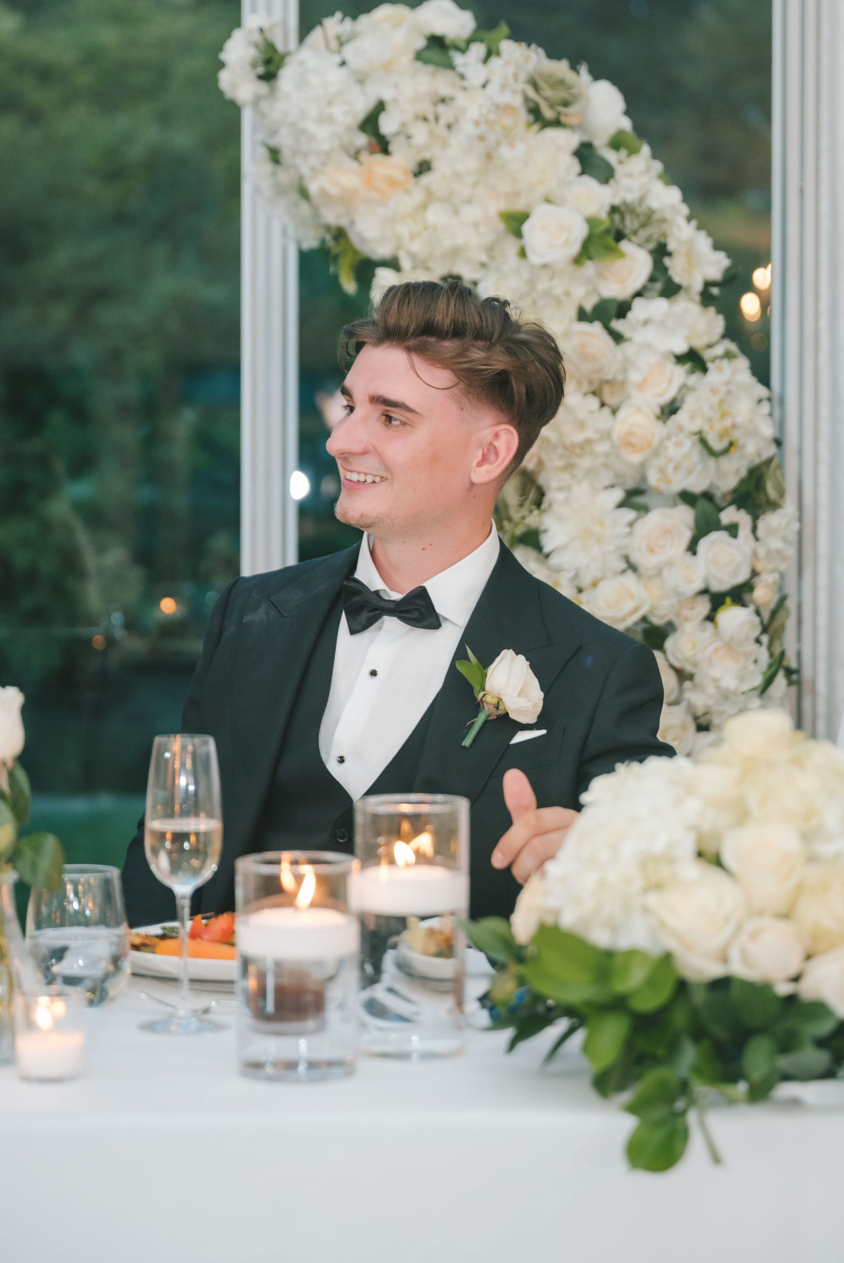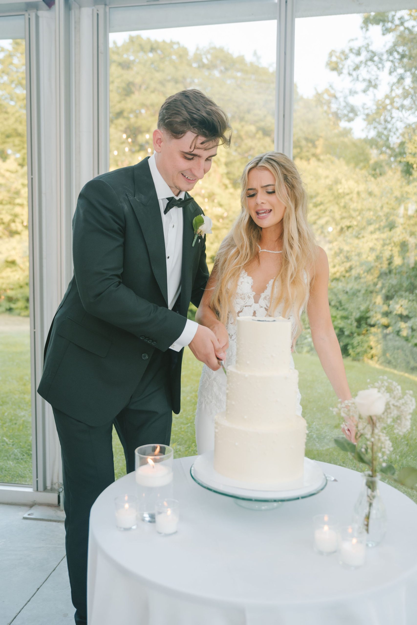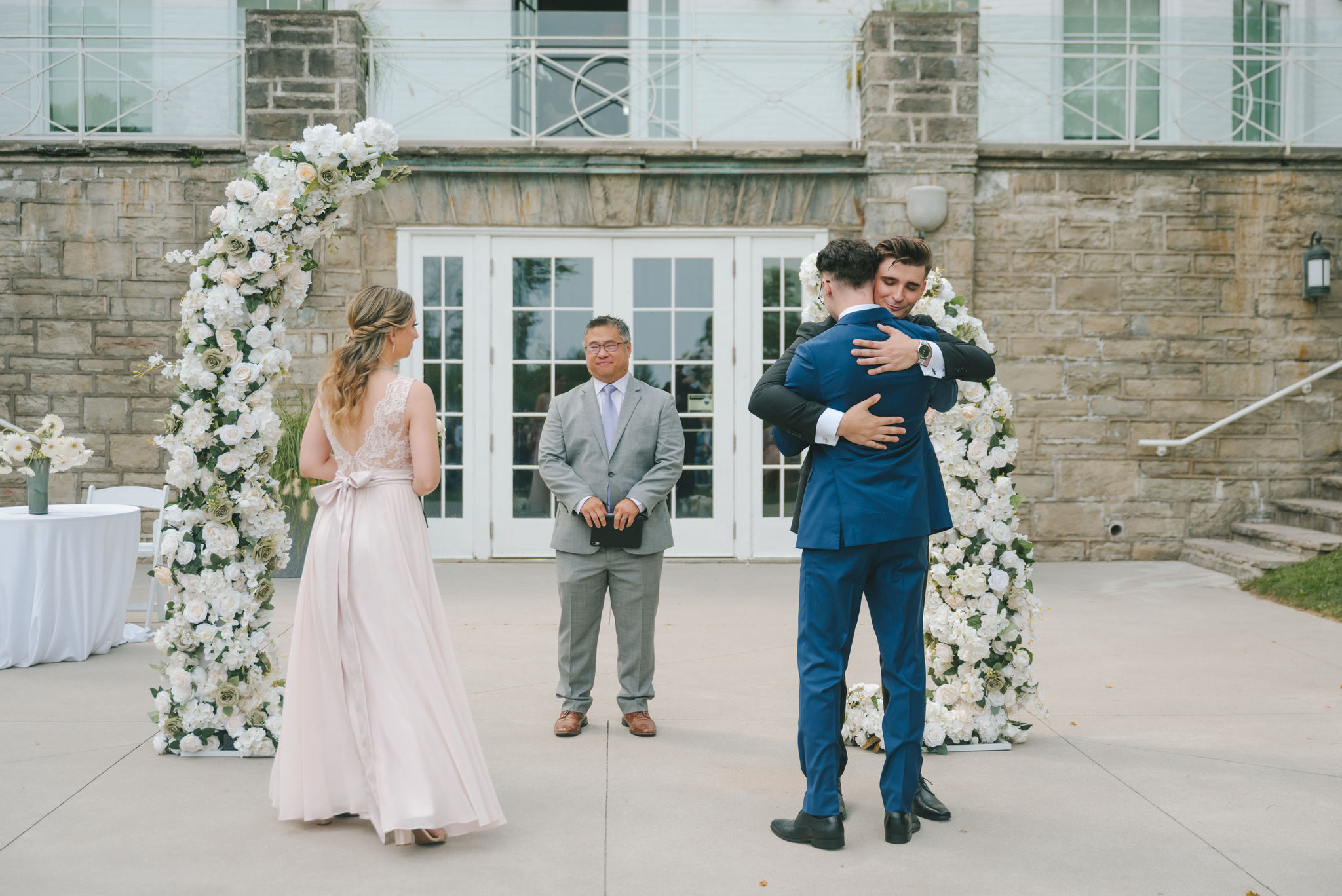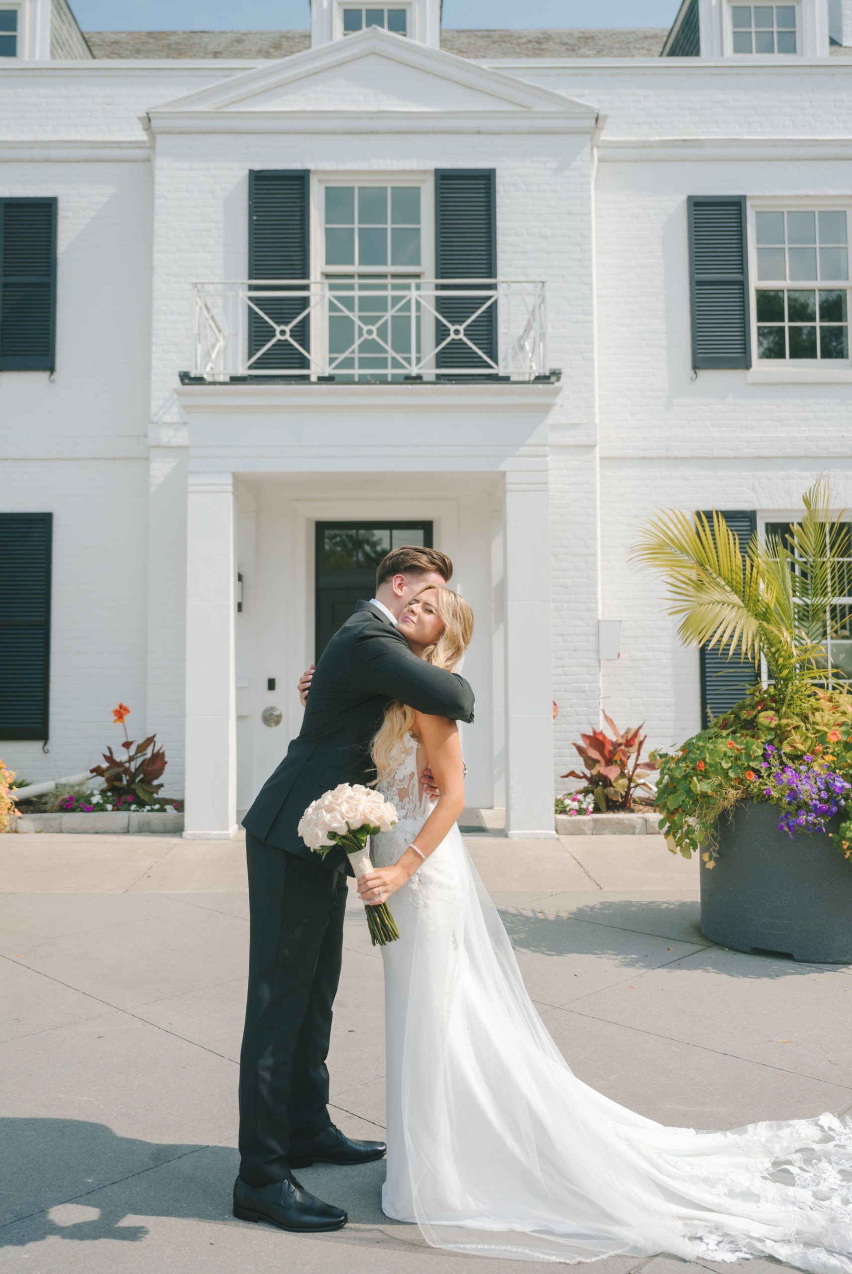 This one meant so much to me! You know how in Greek myth stories, Aphrodite was said to bless the people whose love reflected both the sacredness of devotion and beauty? This was that. Under the same light that once shimmered over her seas, it was so dear to me that Matthew asked Kayla to be his forever. Before the magic of their wedding began, the proposal that occurred in Santorini felt like something lifted from an ancient tale, and when the day came to finally seal that promise, the Harding Waterfront Estate became the perfect modern echo of that legend—an ode to faith, elegance, and enduring romance! Within the estate’s walls, it will always be perfect when the room is filled with the sounds of laughter mingled with the rustle of fabric and the delicate sound of anticipation. This is one of those moments that you can’t help but audibly gasp! Kayla’s gown was so beautiful—a breathtaking Enzoani piece adorned with pearl embellishments—it seemed almost to shimmer brightly with every detail capturing her essence: poised, radiant, and deeply in love while she shared bonding moments with her loved ones. In another tale, Matthew readied himself in his tailored Italian suit that made him look regal and dashing! There was a reverence in the air, a peace that mirrored their faith, grounding the beauty of the day in meaning. When the ceremony was official, it carried a sense of intimacy. Beneath a beautiful floral arch of blush roses and soft greenery, they stood together, close, hand in hand, surrounded by those who have prayed and celebrated with them through the years. The words spoken between their breaths were incredibly sacred and full of meaning—echoes of their shared faith and the vows that bound them in front of the people they love most. Everything was precious, and I’m glad we got to capture that for them to look back on! And as they exchanged rings and promises, the sunlight streamed through, illuminating them in a golden glow, as if heaven itself smiled at their union. They got to showcase just more and more how good they looked together in the pictures we took! Beneath the soft shade of the estate’s garden, Matthew turned to see his bride—and time, for a moment, even if he’s already seen her, time just… seemed to stop. It will always be the way they looked at each other, eyes bright with tears and joy; it felt like witnessing two souls finally arriving home. It’s a reminder why we do stuff like this! Every photo seemed to tell the same story—of grace, laughter, and a love that had already weathered time and distance. After that beautiful afternoon, the reception unfolded with seamless beauty. Their loved ones were welcomed into a softly lit space adorned with elegant centerpieces, glowing candles, and delicate bud vases scattered across tables. As always, I love when everything just feels intentional, warm, refined, and effortlessly romantic. Throughout that day of celebration, I was glad to be a part of it, most of all hearing the speeches that brought both laughter and tears, filling the room with affection and nostalgia. Following after was their first dance, which was all tender and beautifully slow, full of grace, like a quiet conversation between two hearts who already know every word. Later, the dance floor came alive—friends and family celebrating freely, the joy of the night rippling through laughter, music, and the sparkle of lights. It’s always a joy to see that! Just a lot of people, groups that might’ve not even met one another, but they’re all there, in the moment, enjoying the union of two people who spent their time loving and treasuring one another! Every moment between the day and the two of them was the signature of Kayla and Matthew—refined, faithful, and sincere. To me, and to everyone they loved, it wasn’t just a wedding; it was a reflection of who they are together. Their love felt less like a grand celebration and more like a prayer answered, beautifully and completely. The estate glowed behind them as Kayla and Matthew stood surrounded by the warmth of those who love them most. The lake shimmered quietly nearby, and the air held the soft hum of joy that lingers long after a perfect day ends. Their story—rooted in faith, devotion, and the kind of love that feels written by the divine—will continue far beyond these walls!
