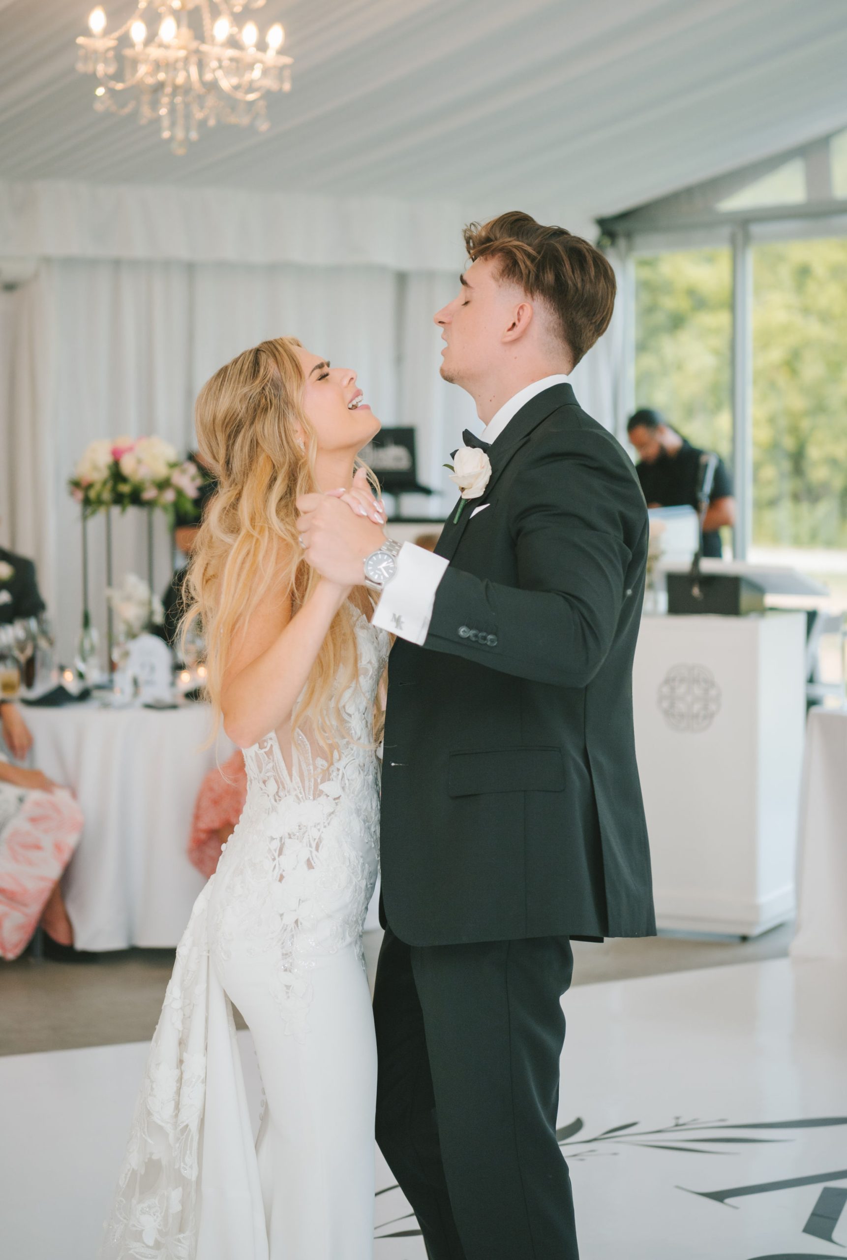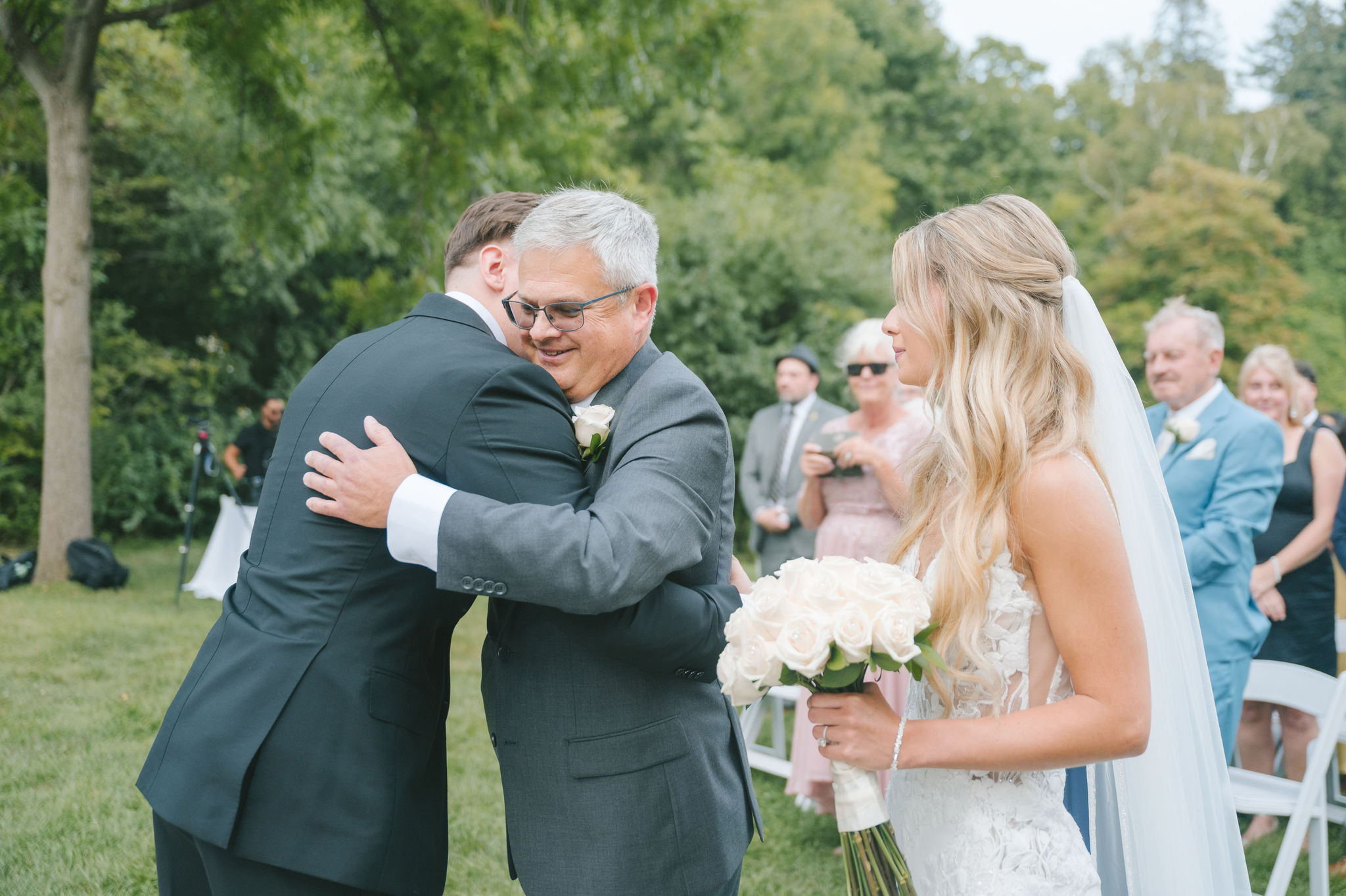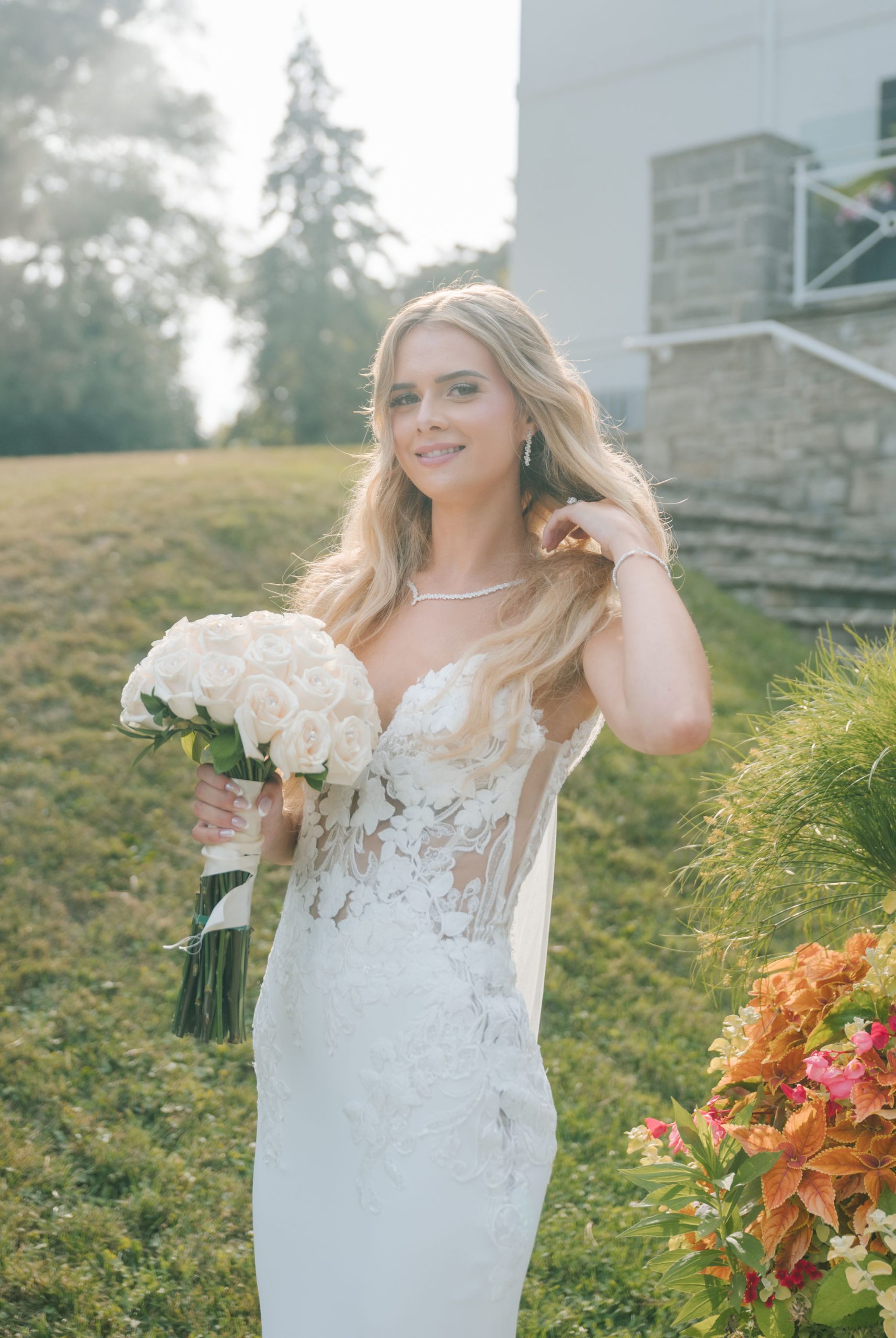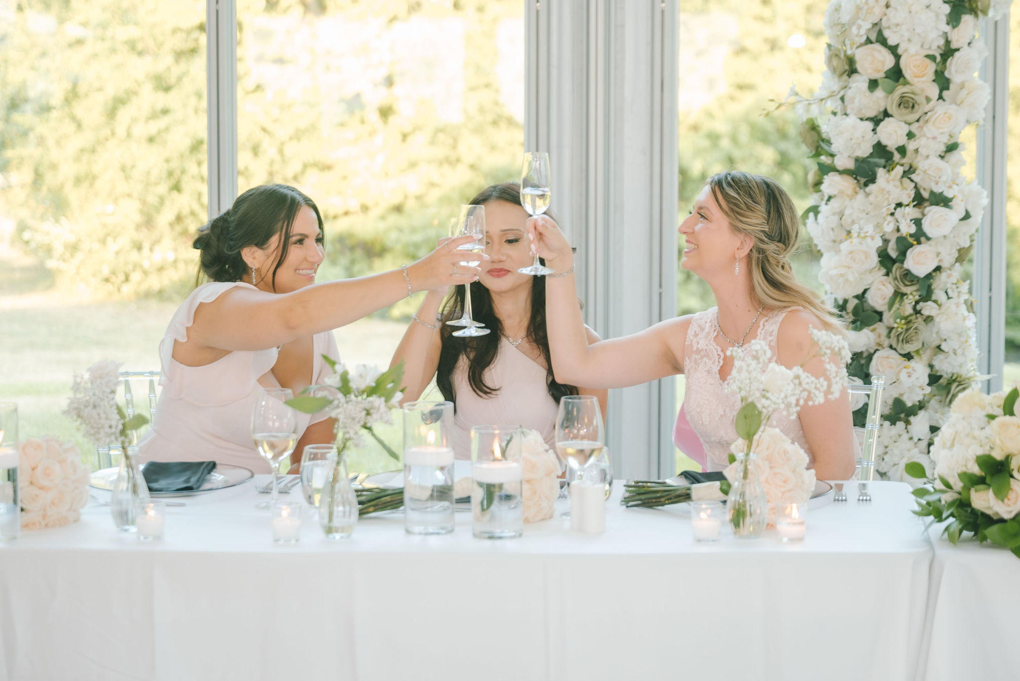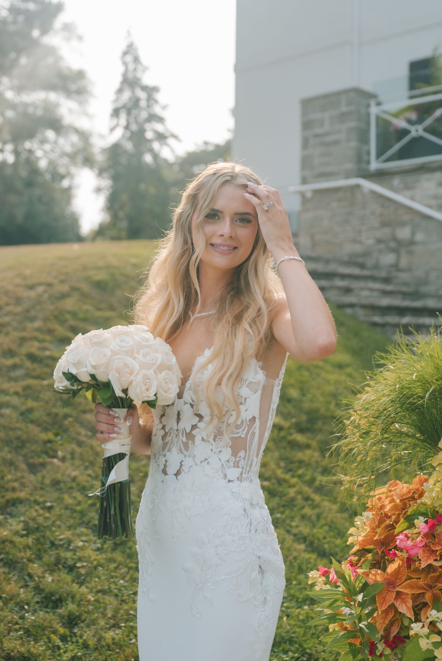 This one meant so much to me! You know how in Greek myth stories, Aphrodite was said to bless the people whose love reflected both the sacredness of devotion and beauty? This was that. Under the same light that once shimmered over her seas, it was so dear to me that Matthew asked Kayla to be his forever. Before the magic of their wedding began, the proposal that occurred in Santorini felt like something lifted from an ancient tale, and when the day came to finally seal that promise, the Harding Waterfront Estate became the perfect modern echo of that legend—an ode to faith, elegance, and enduring romance! Within the estate’s walls, it will always be perfect when the room is filled with the sounds of laughter mingled with the rustle of fabric and the delicate sound of anticipation. This is one of those moments that you can’t help but audibly gasp! Kayla’s gown was so beautiful—a breathtaking Enzoani piece adorned with pearl embellishments—it seemed almost to shimmer brightly with every detail capturing her essence: poised, radiant, and deeply in love while she shared bonding moments with her loved ones. In another tale, Matthew readied himself in his tailored Italian suit that made him look regal and dashing! There was a reverence in the air, a peace that mirrored their faith, grounding the beauty of the day in meaning. When the ceremony was official, it carried a sense of intimacy. Beneath a beautiful floral arch of blush roses and soft greenery, they stood together, close, hand in hand, surrounded by those who have prayed and celebrated with them through the years. The words spoken between their breaths were incredibly sacred and full of meaning—echoes of their shared faith and the vows that bound them in front of the people they love most. Everything was precious, and I’m glad we got to capture that for them to look back on! And as they exchanged rings and promises, the sunlight streamed through, illuminating them in a golden glow, as if heaven itself smiled at their union. They got to showcase just more and more how good they looked together in the pictures we took! Beneath the soft shade of the estate’s garden, Matthew turned to see his bride—and time, for a moment, even if he’s already seen her, time just… seemed to stop. It will always be the way they looked at each other, eyes bright with tears and joy; it felt like witnessing two souls finally arriving home. It’s a reminder why we do stuff like this! Every photo seemed to tell the same story—of grace, laughter, and a love that had already weathered time and distance. After that beautiful afternoon, the reception unfolded with seamless beauty. Their loved ones were welcomed into a softly lit space adorned with elegant centerpieces, glowing candles, and delicate bud vases scattered across tables. As always, I love when everything just feels intentional, warm, refined, and effortlessly romantic. Throughout that day of celebration, I was glad to be a part of it, most of all hearing the speeches that brought both laughter and tears, filling the room with affection and nostalgia. Following after was their first dance, which was all tender and beautifully slow, full of grace, like a quiet conversation between two hearts who already know every word. Later, the dance floor came alive—friends and family celebrating freely, the joy of the night rippling through laughter, music, and the sparkle of lights. It’s always a joy to see that! Just a lot of people, groups that might’ve not even met one another, but they’re all there, in the moment, enjoying the union of two people who spent their time loving and treasuring one another! Every moment between the day and the two of them was the signature of Kayla and Matthew—refined, faithful, and sincere. To me, and to everyone they loved, it wasn’t just a wedding; it was a reflection of who they are together. Their love felt less like a grand celebration and more like a prayer answered, beautifully and completely. The estate glowed behind them as Kayla and Matthew stood surrounded by the warmth of those who love them most. The lake shimmered quietly nearby, and the air held the soft hum of joy that lingers long after a perfect day ends. Their story—rooted in faith, devotion, and the kind of love that feels written by the divine—will continue far beyond these walls!
