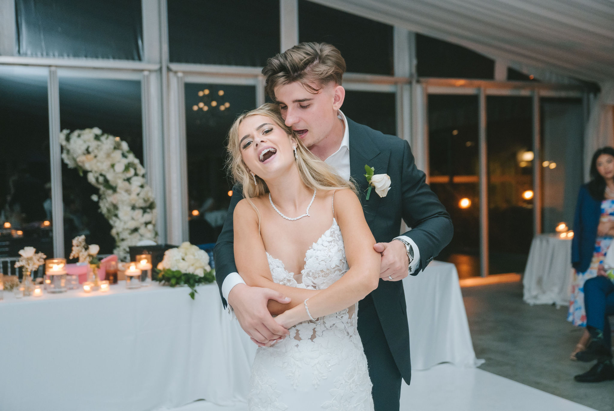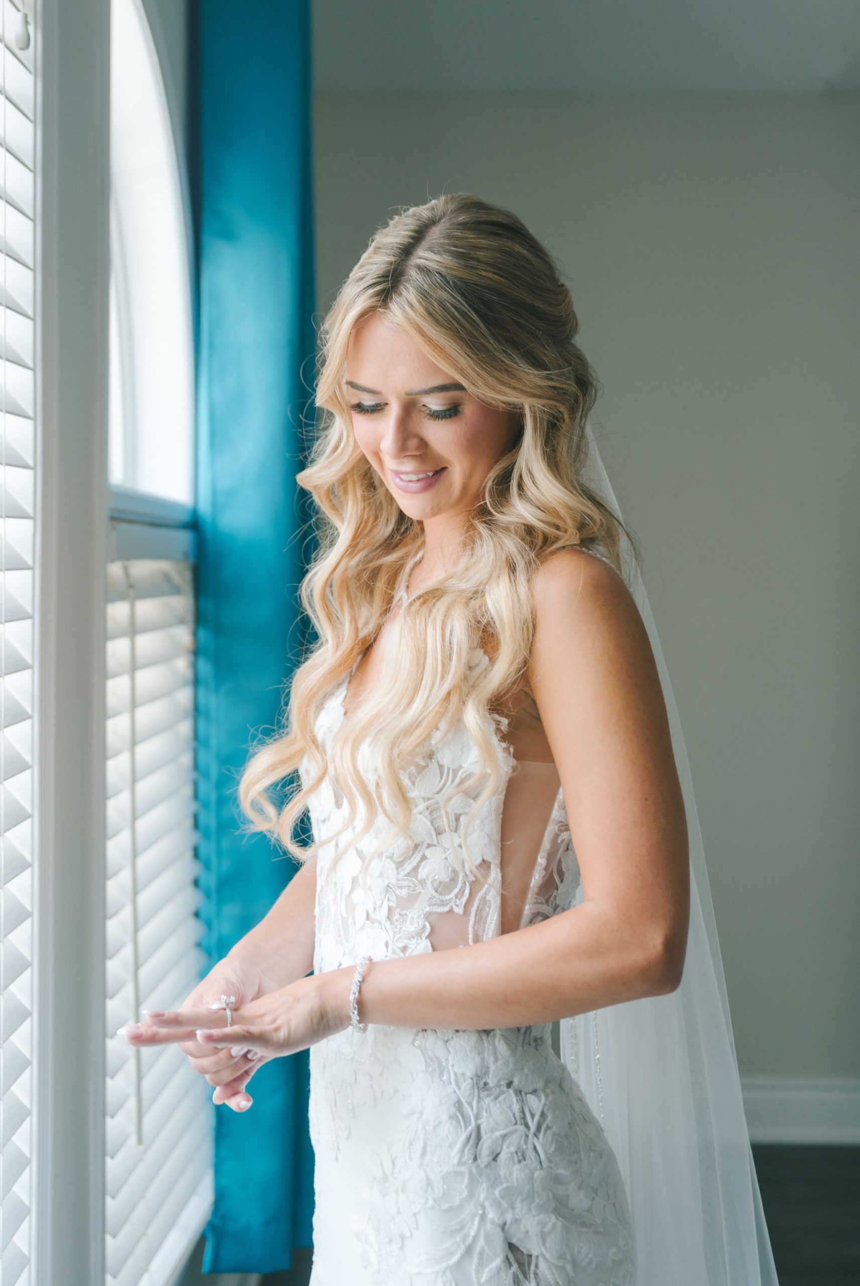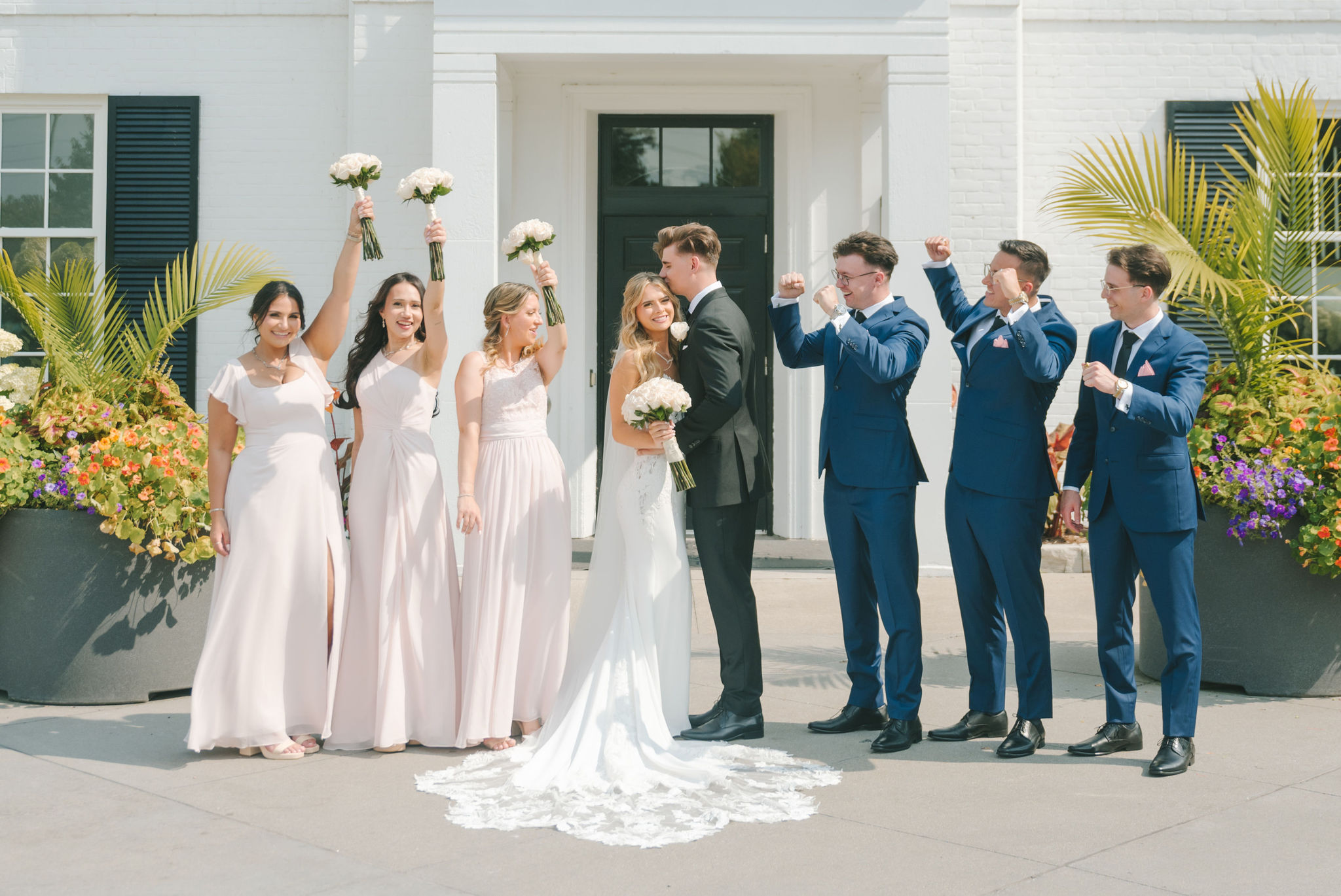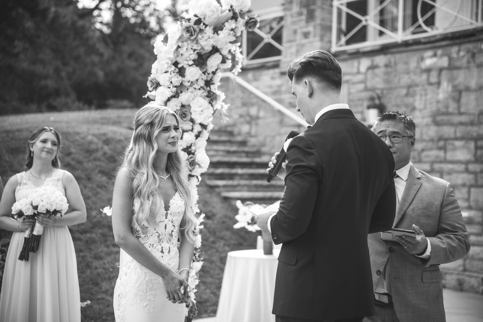 This one meant so much to me! You know how in Greek myth stories, Aphrodite was said to bless the people whose love reflected both the sacredness of devotion and beauty? This was that. Under the same light that once shimmered over her seas, it was so dear to me that Matthew asked Kayla to be his forever. Before the magic of their wedding began, the proposal that occurred in Santorini felt like something lifted from an ancient tale, and when the day came to finally seal that promise, the Harding Waterfront Estate became the perfect modern echo of that legend—an ode to faith, elegance, and enduring romance! Within the estate’s walls, it will always be perfect when the room is filled with the sounds of laughter mingled with the rustle of fabric and the delicate sound of anticipation. This is one of those moments that you can’t help but audibly gasp! Kayla’s gown was so beautiful—a breathtaking Enzoani piece adorned with pearl embellishments—it seemed almost to shimmer brightly with every detail capturing her essence: poised, radiant, and deeply in love while she shared bonding moments with her loved ones. In another tale, Matthew readied himself in his tailored Italian suit that made him look regal and dashing! There was a reverence in the air, a peace that mirrored their faith, grounding the beauty of the day in meaning. When the ceremony was official, it carried a sense of intimacy. Beneath a beautiful floral arch of blush roses and soft greenery, they stood together, close, hand in hand, surrounded by those who have prayed and celebrated with them through the years. The words spoken between their breaths were incredibly sacred and full of meaning—echoes of their shared faith and the vows that bound them in front of the people they love most. Everything was precious, and I’m glad we got to capture that for them to look back on! And as they exchanged rings and promises, the sunlight streamed through, illuminating them in a golden glow, as if heaven itself smiled at their union. They got to showcase just more and more how good they looked together in the pictures we took! Beneath the soft shade of the estate’s garden, Matthew turned to see his bride—and time, for a moment, even if he’s already seen her, time just… seemed to stop. It will always be the way they looked at each other, eyes bright with tears and joy; it felt like witnessing two souls finally arriving home. It’s a reminder why we do stuff like this! Every photo seemed to tell the same story—of grace, laughter, and a love that had already weathered time and distance. After that beautiful afternoon, the reception unfolded with seamless beauty. Their loved ones were welcomed into a softly lit space adorned with elegant centerpieces, glowing candles, and delicate bud vases scattered across tables. As always, I love when everything just feels intentional, warm, refined, and effortlessly romantic. Throughout that day of celebration, I was glad to be a part of it, most of all hearing the speeches that brought both laughter and tears, filling the room with affection and nostalgia. Following after was their first dance, which was all tender and beautifully slow, full of grace, like a quiet conversation between two hearts who already know every word. Later, the dance floor came alive—friends and family celebrating freely, the joy of the night rippling through laughter, music, and the sparkle of lights. It’s always a joy to see that! Just a lot of people, groups that might’ve not even met one another, but they’re all there, in the moment, enjoying the union of two people who spent their time loving and treasuring one another! Every moment between the day and the two of them was the signature of Kayla and Matthew—refined, faithful, and sincere. To me, and to everyone they loved, it wasn’t just a wedding; it was a reflection of who they are together. Their love felt less like a grand celebration and more like a prayer answered, beautifully and completely. The estate glowed behind them as Kayla and Matthew stood surrounded by the warmth of those who love them most. The lake shimmered quietly nearby, and the air held the soft hum of joy that lingers long after a perfect day ends. Their story—rooted in faith, devotion, and the kind of love that feels written by the divine—will continue far beyond these walls!