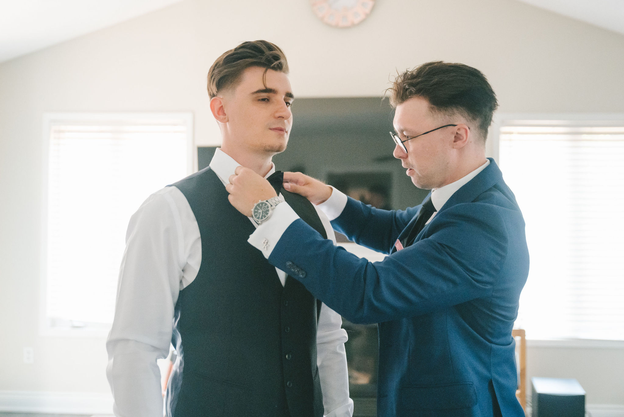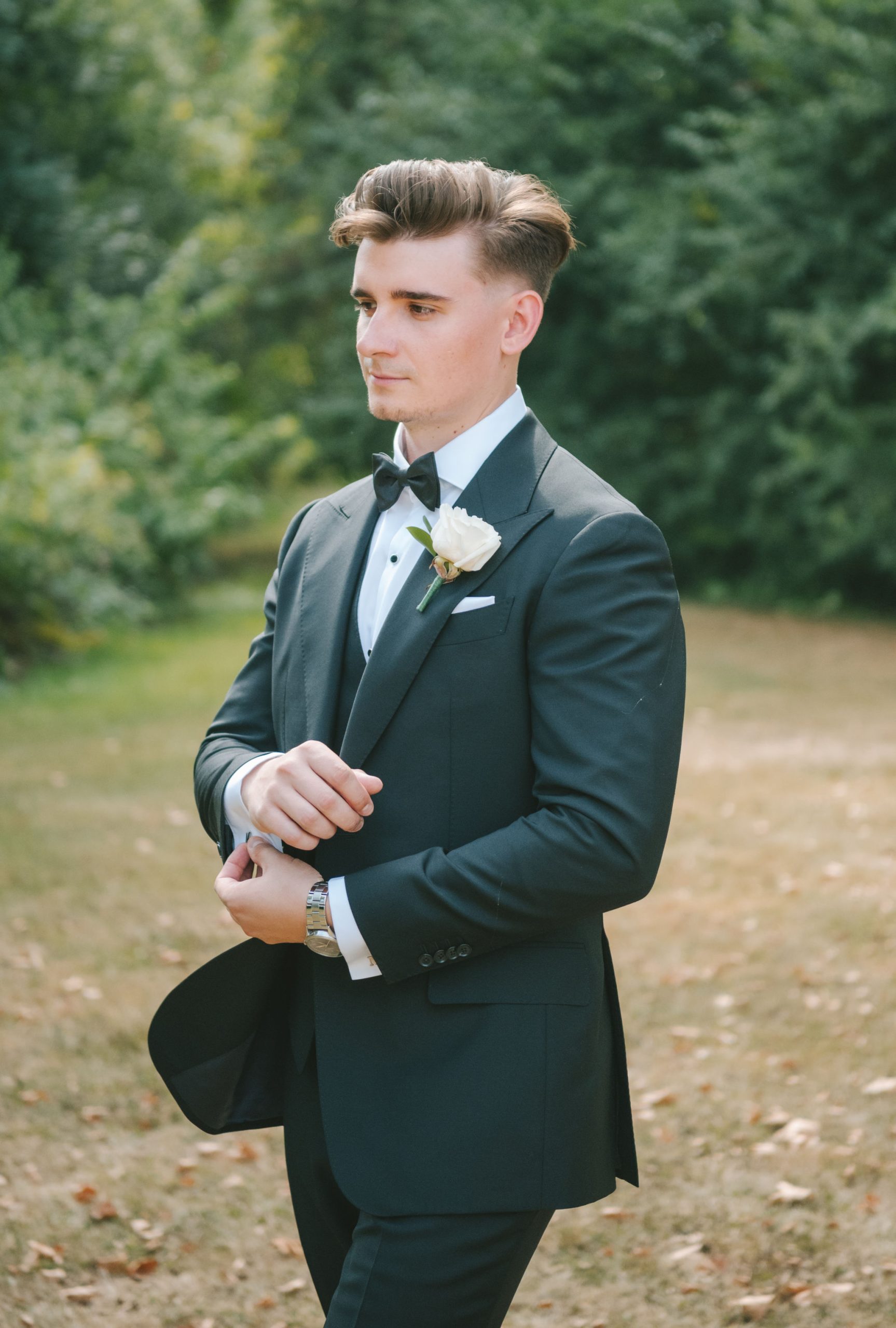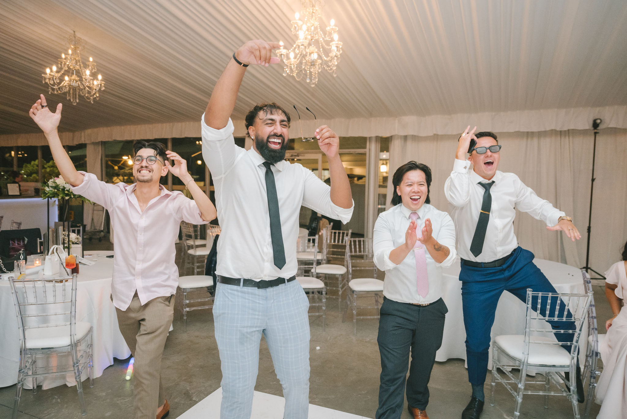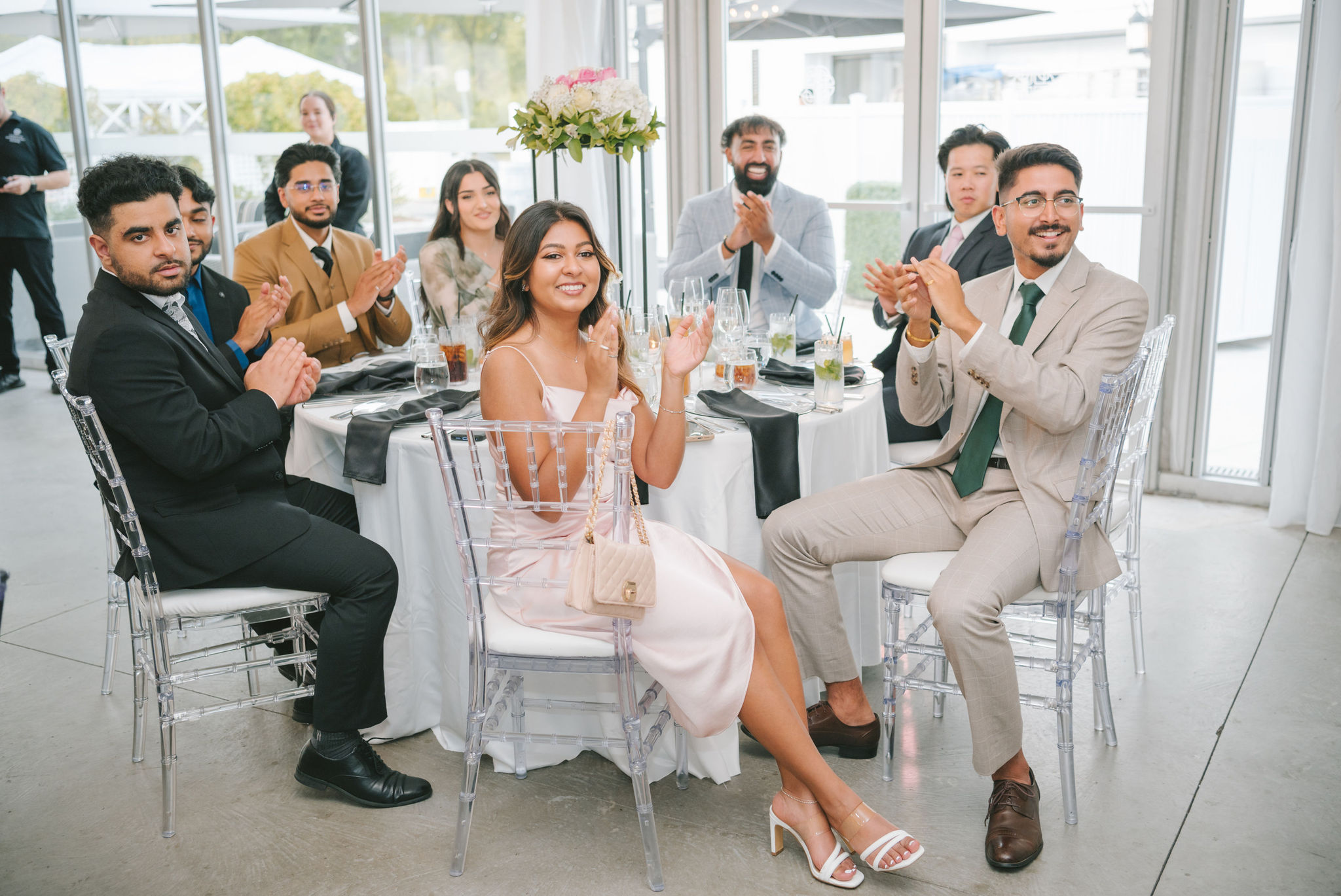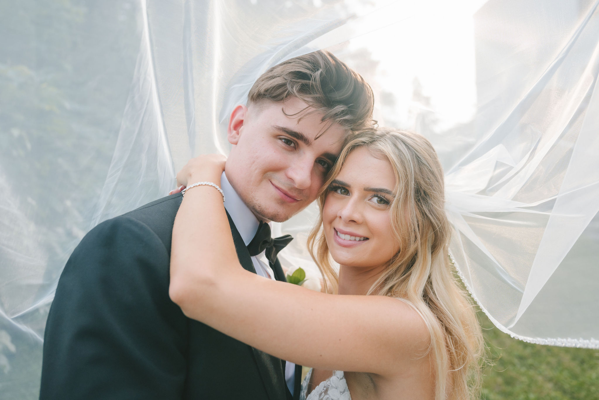 This one meant so much to me! You know how in Greek myth stories, Aphrodite was said to bless the people whose love reflected both the sacredness of devotion and beauty? This was that. Under the same light that once shimmered over her seas, it was so dear to me that Matthew asked Kayla to be his forever. Before the magic of their wedding began, the proposal that occurred in Santorini felt like something lifted from an ancient tale, and when the day came to finally seal that promise, the Harding Waterfront Estate became the perfect modern echo of that legend—an ode to faith, elegance, and enduring romance! Within the estate’s walls, it will always be perfect when the room is filled with the sounds of laughter mingled with the rustle of fabric and the delicate sound of anticipation. This is one of those moments that you can’t help but audibly gasp! Kayla’s gown was so beautiful—a breathtaking Enzoani piece adorned with pearl embellishments—it seemed almost to shimmer brightly with every detail capturing her essence: poised, radiant, and deeply in love while she shared bonding moments with her loved ones. In another tale, Matthew readied himself in his tailored Italian suit that made him look regal and dashing! There was a reverence in the air, a peace that mirrored their faith, grounding the beauty of the day in meaning. When the ceremony was official, it carried a sense of intimacy. Beneath a beautiful floral arch of blush roses and soft greenery, they stood together, close, hand in hand, surrounded by those who have prayed and celebrated with them through the years. The words spoken between their breaths were incredibly sacred and full of meaning—echoes of their shared faith and the vows that bound them in front of the people they love most. Everything was precious, and I’m glad we got to capture that for them to look back on! And as they exchanged rings and promises, the sunlight streamed through, illuminating them in a golden glow, as if heaven itself smiled at their union. They got to showcase just more and more how good they looked together in the pictures we took! Beneath the soft shade of the estate’s garden, Matthew turned to see his bride—and time, for a moment, even if he’s already seen her, time just… seemed to stop. It will always be the way they looked at each other, eyes bright with tears and joy; it felt like witnessing two souls finally arriving home. It’s a reminder why we do stuff like this! Every photo seemed to tell the same story—of grace, laughter, and a love that had already weathered time and distance. After that beautiful afternoon, the reception unfolded with seamless beauty. Their loved ones were welcomed into a softly lit space adorned with elegant centerpieces, glowing candles, and delicate bud vases scattered across tables. As always, I love when everything just feels intentional, warm, refined, and effortlessly romantic. Throughout that day of celebration, I was glad to be a part of it, most of all hearing the speeches that brought both laughter and tears, filling the room with affection and nostalgia. Following after was their first dance, which was all tender and beautifully slow, full of grace, like a quiet conversation between two hearts who already know every word. Later, the dance floor came alive—friends and family celebrating freely, the joy of the night rippling through laughter, music, and the sparkle of lights. It’s always a joy to see that! Just a lot of people, groups that might’ve not even met one another, but they’re all there, in the moment, enjoying the union of two people who spent their time loving and treasuring one another! Every moment between the day and the two of them was the signature of Kayla and Matthew—refined, faithful, and sincere. To me, and to everyone they loved, it wasn’t just a wedding; it was a reflection of who they are together. Their love felt less like a grand celebration and more like a prayer answered, beautifully and completely. The estate glowed behind them as Kayla and Matthew stood surrounded by the warmth of those who love them most. The lake shimmered quietly nearby, and the air held the soft hum of joy that lingers long after a perfect day ends. Their story—rooted in faith, devotion, and the kind of love that feels written by the divine—will continue far beyond these walls!