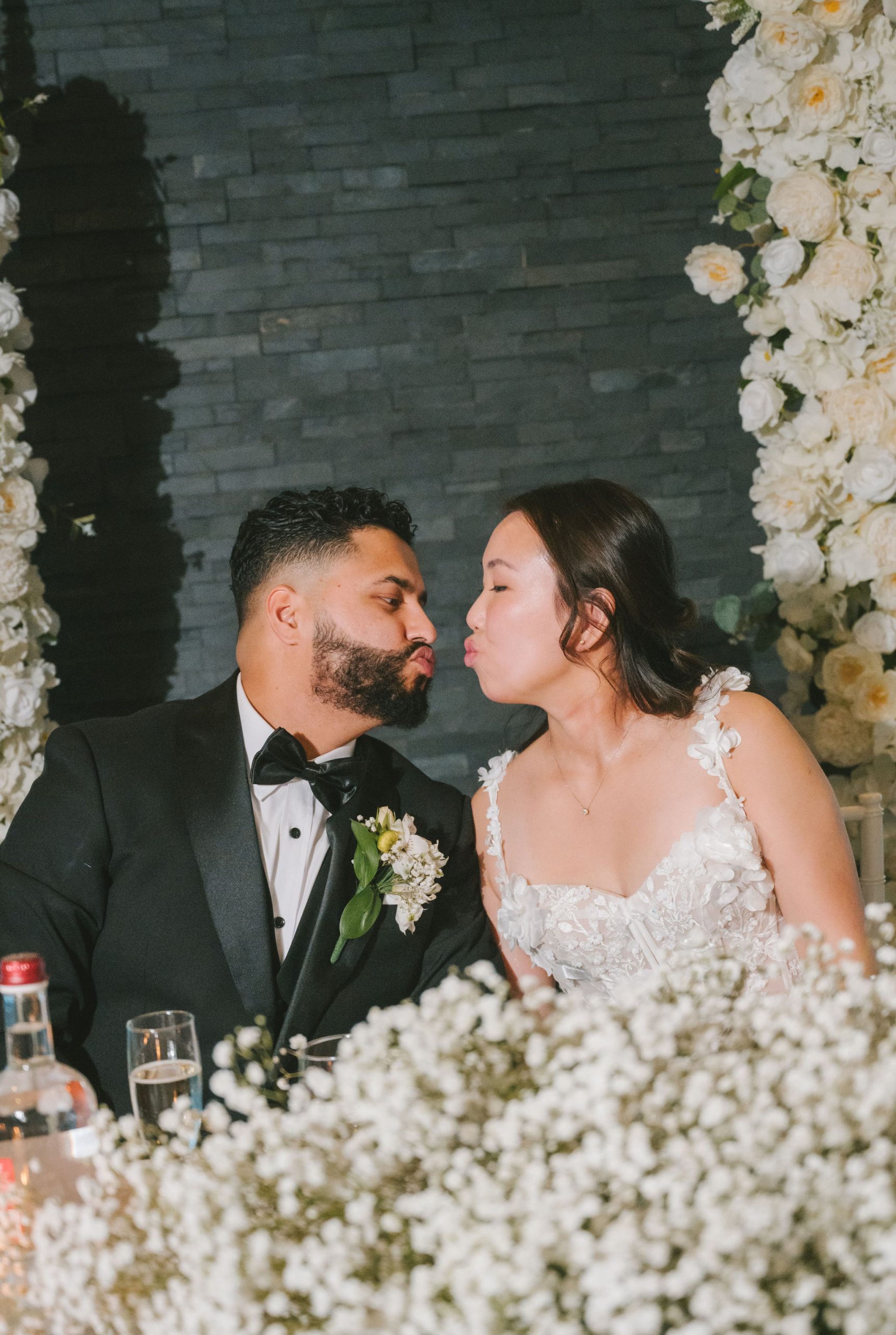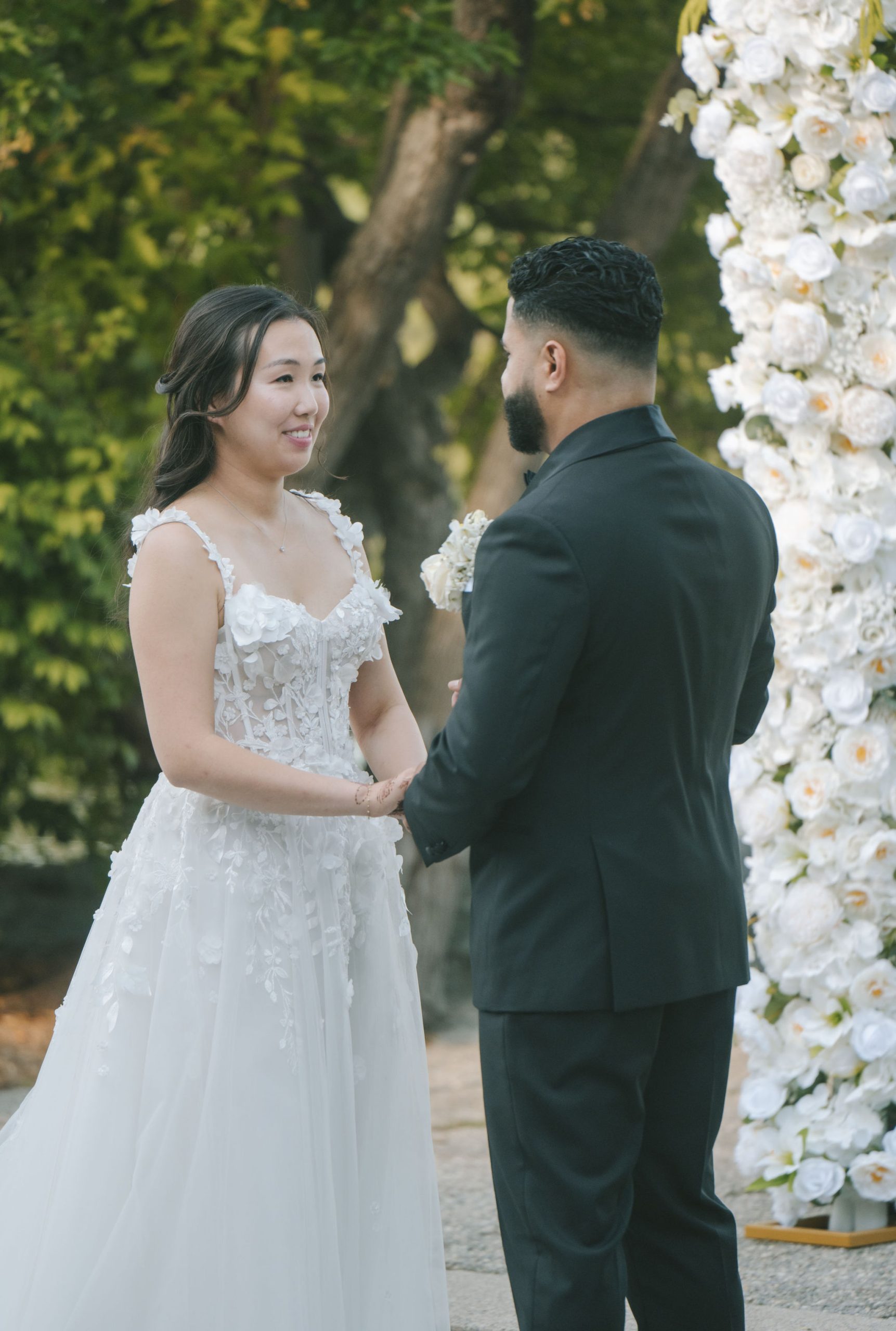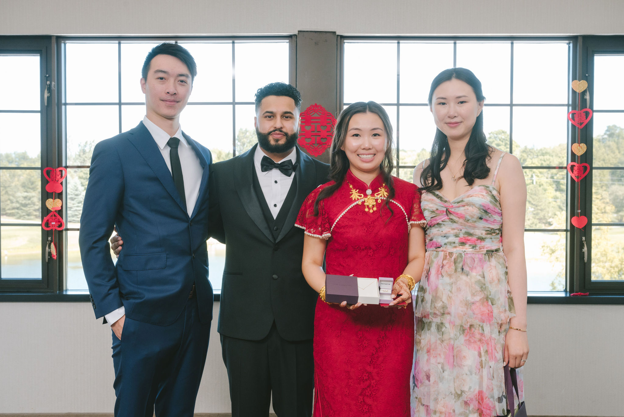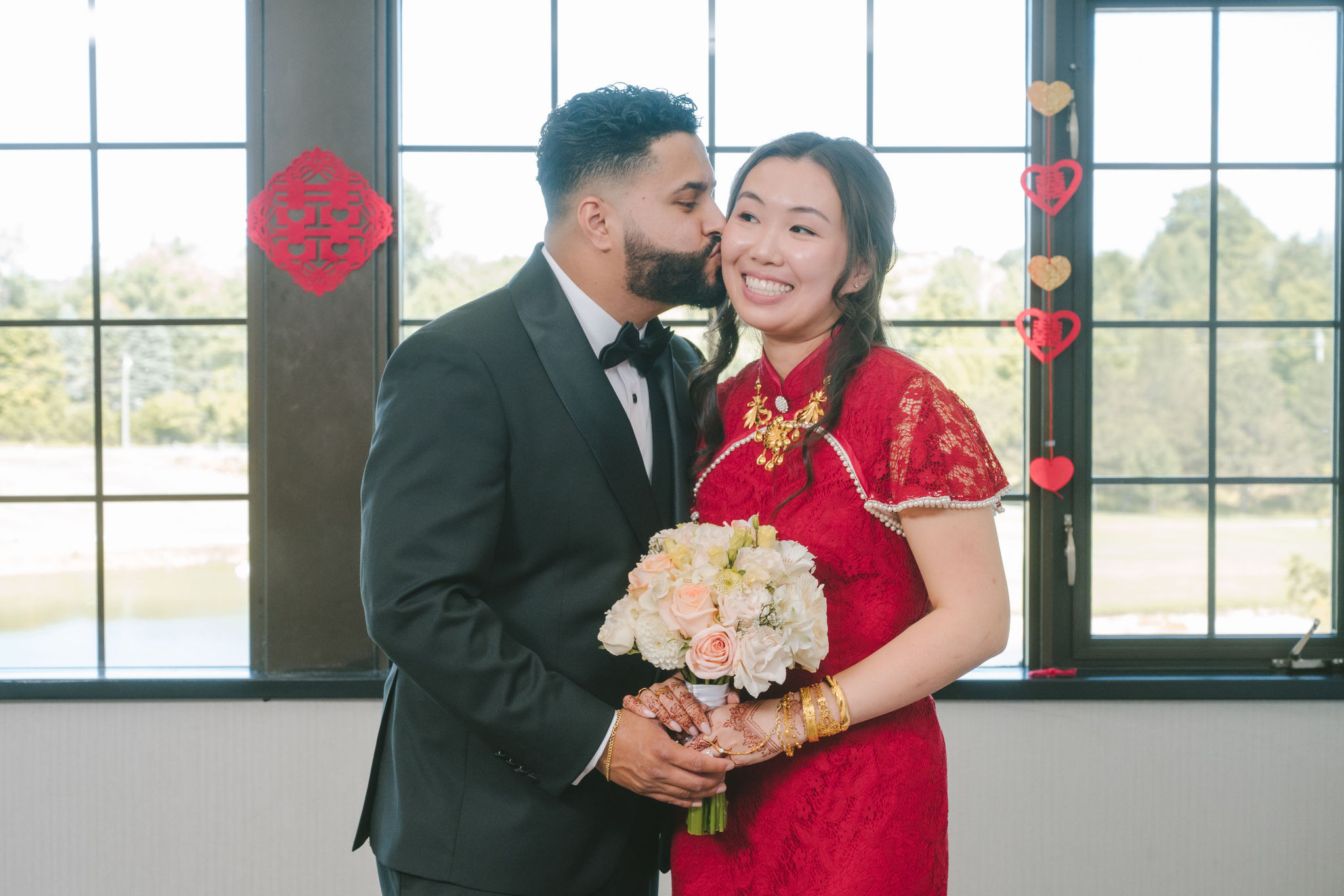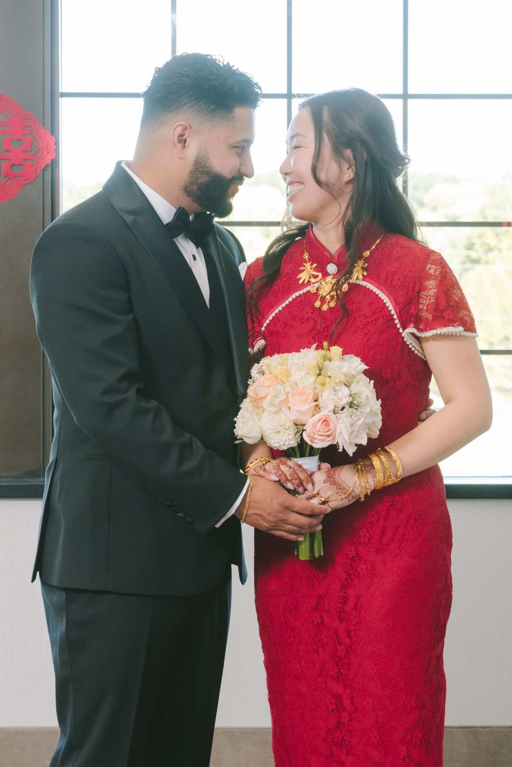 There will always be love stories that bloom in the most wonderful of ways, and there are those that sing across cultures, blending two worlds into something wholly their own. To me, Larissa and Tejasvi’s wedding was exactly that! It was a very luminous celebration where tradition and emotion were beautifully intertwined with one another. I will always love how every glance shared and every gesture between the two of them felt like an echo of two families becoming one, a harmony of laughter, faith, and devotion that seemed to stretch beyond time itself. The journey of their wedding day began with the most lighthearted joy as Larissa and Tejasvi took part in the delightful door games of Chinese tradition that filled the air with laughter and heartfelt moments. It will always be wonderful to get to capture such moments! The room buzzed with warmth as loved ones cheered and teased, their joy setting the tone for the days ahead. Afterwards, I couldn’t even begin to express how beautiful it was when I followed them to their Hindu wedding ceremony that had been held in the intimate space of Tejasvi’s family home! Surrounded by sacredness and bright colors, the rituals unfolded in a graceful rhythm of devotion. The air shimmered with meaning—fire, garlands, and blessings weaving the spiritual fabric of their union as parents watched with tender eyes. Next occurred their Chinese tea ceremony, a moment that’s incredibly rich with devotion and honoring one’s culture. I was obsessed with that exchange of tea because Larissa and Tejasvi honored the generations that came before them, and they offered their cups with bowed heads and soft smiles, receiving blessings wrapped in love, laughter, and a few happy tears. The ceremony carried within it such quiet poetry, with two cultures standing side by side, each gesture speaking of respect and harmony. It was a reminder that family, in all its beautiful forms, is the truest foundation of marriage! Then came the heart of their celebration. The wedding ceremony and reception at The Manor showcased every detail that felt thoughtfully crafted to reflect the couple’s story. The venue, bathed in daylight and surrounded by lush greenery, became a perfect canvas for their elegant, light-and-airy aesthetic. White florals framed the aisle, peach and pink blooms softened every corner, and a sense of serenity seemed to linger in the air. The moment Larissa walked in, looking incredibly elegant and beautiful, her bridal glow was nothing short of breathtaking—every step filled with grace and anticipation. Tejasvi’s eyes lit up with the quiet awe of a man seeing not just his bride, but his best friend, his past, his present, and his future walking toward him. After the vows they’ve longed to say were finally uttered, the day melted into celebration. Their evening shimmered with heartfelt speeches—words filled with gratitude, laughter, and gentle tears. Their loved ones reminisced about how these two had grown together over ten years—from colleagues at work to soulmates who built a life anchored in patience and devotion. The dance floor then came alive, the music flowing between upbeat energy and slow, tender rhythms. Their first dance was a soft blur of motion and emotion, the kind of moment that stays etched in memory long after the lights fade! Every layer of the day—from sacred fire to shared tea, from laughter to tears—was a portrait of love in all its forms. Larissa and Tejasvi didn’t just merge traditions; they created something new, something uniquely theirs. Their wedding wasn’t simply about two people saying “I do”—it was about honoring where they came from, who they’ve become, and who they’ll continue to be together. It was a reminder to me that love, when nurtured with respect and rooted in joy, transcends language, distance, and difference. As their night ended under the warmth of the golden light, their loved ones held one another close, music still humming faintly in the background. And I was grateful to be able to witness Larissa and Tejasvi share intimate glances and loving touches, surrounded by laughter, family, and the lingering scent of jasmine and roses. To me, I had such a warm realization that this was more than a wedding—it was a beautiful promise fulfilled, a story still being written, and a memory that will glow softly in every heart that was lucky enough to witness it!