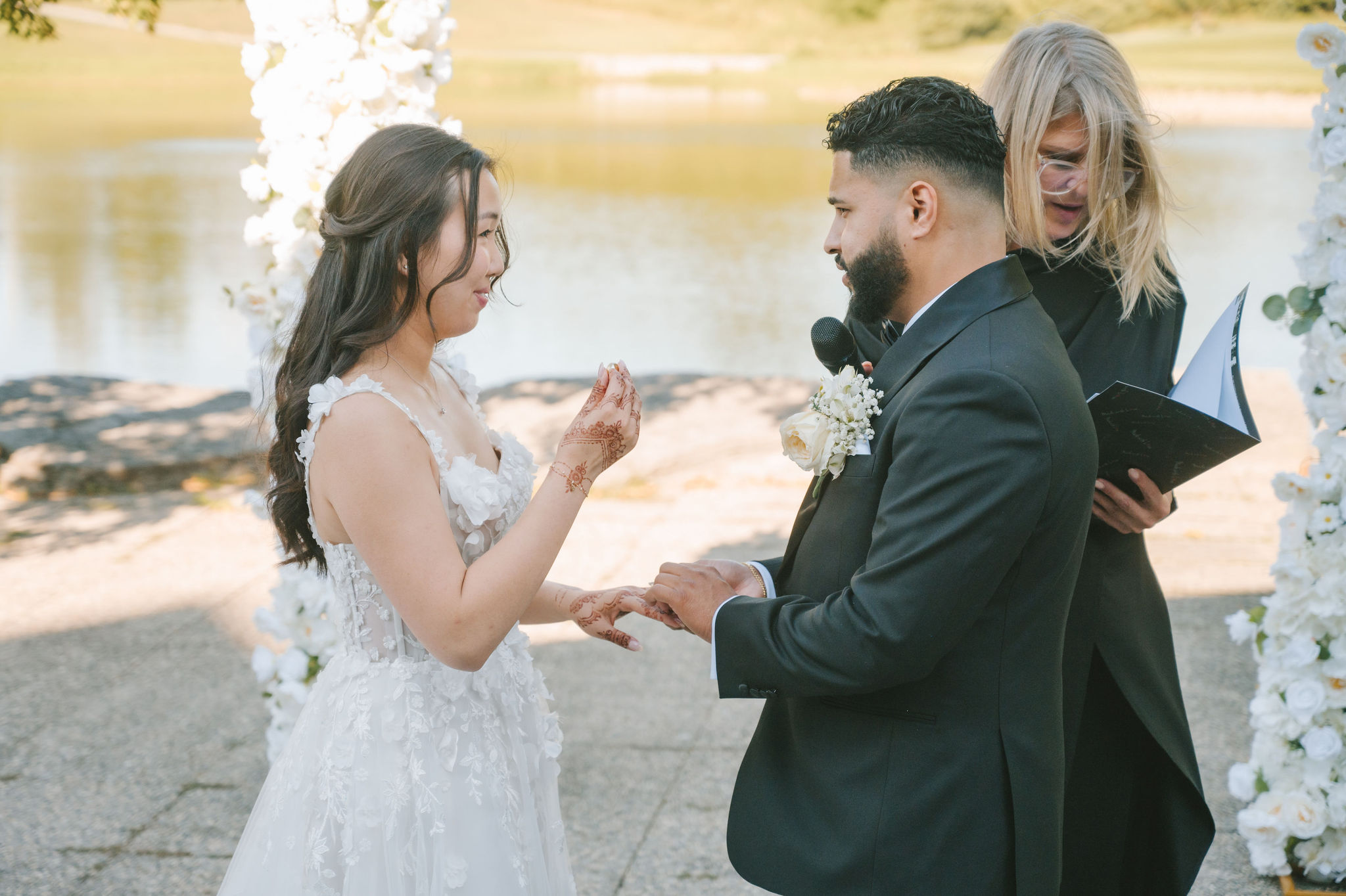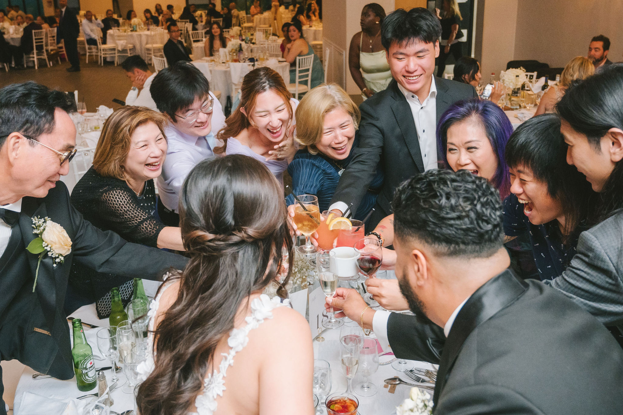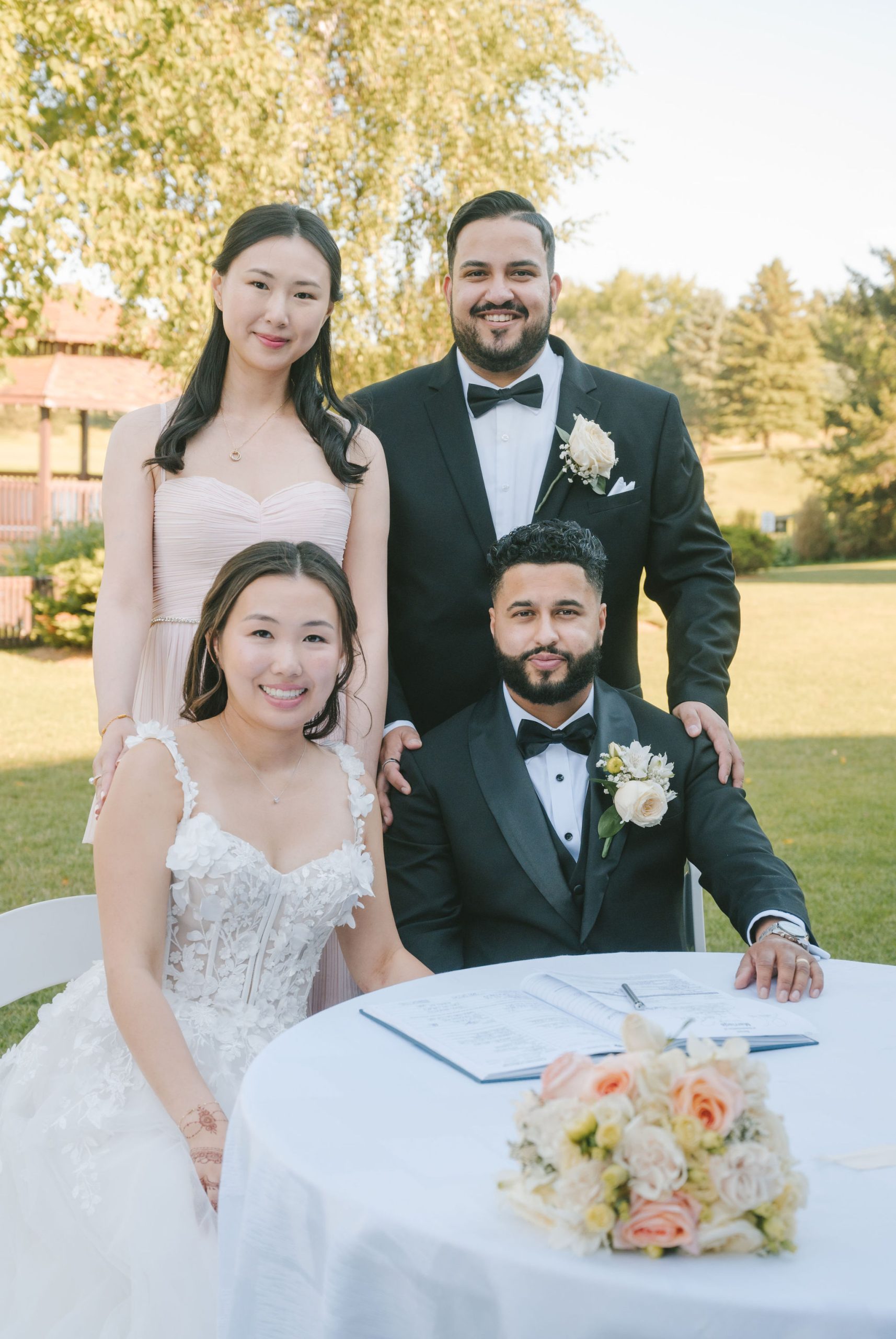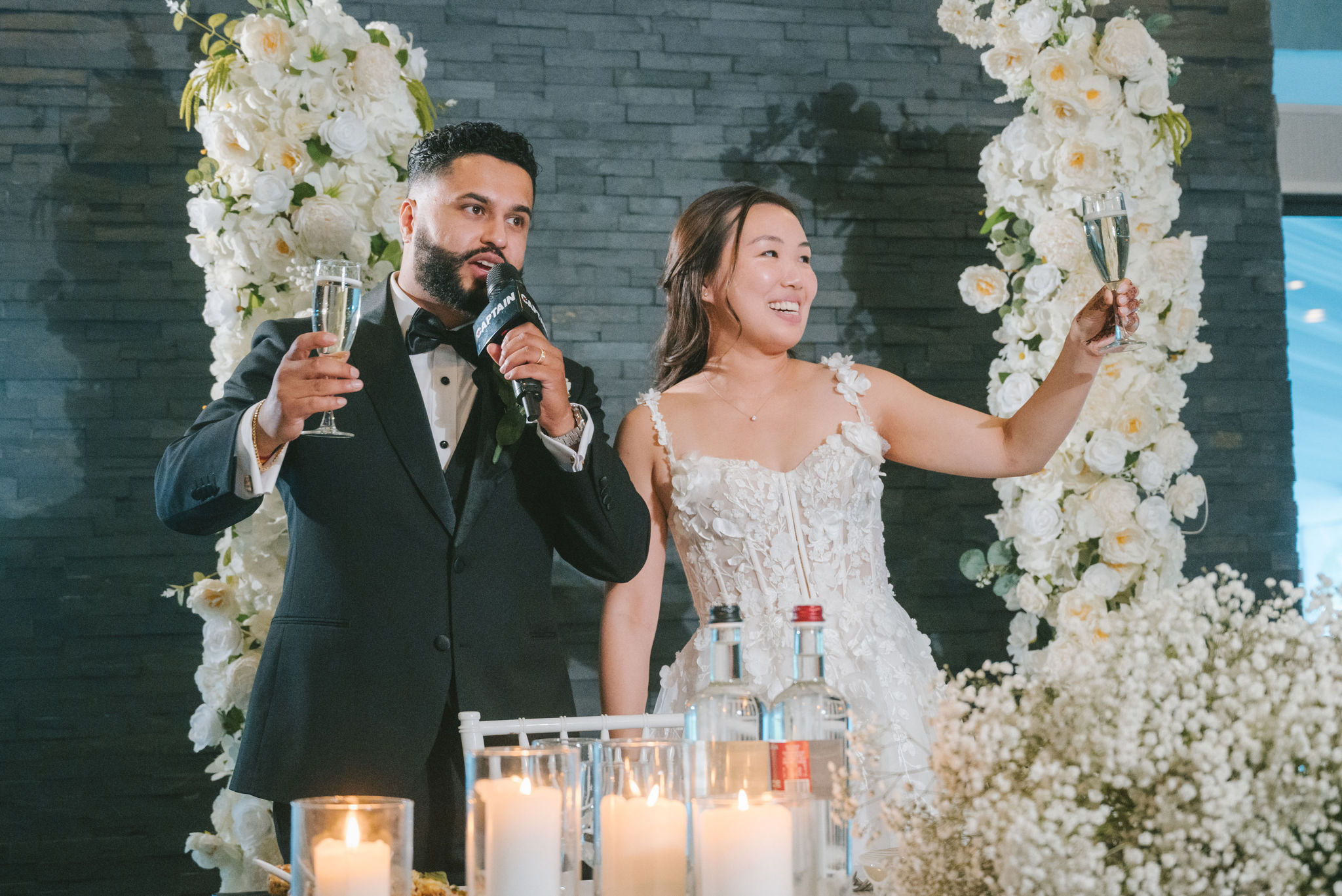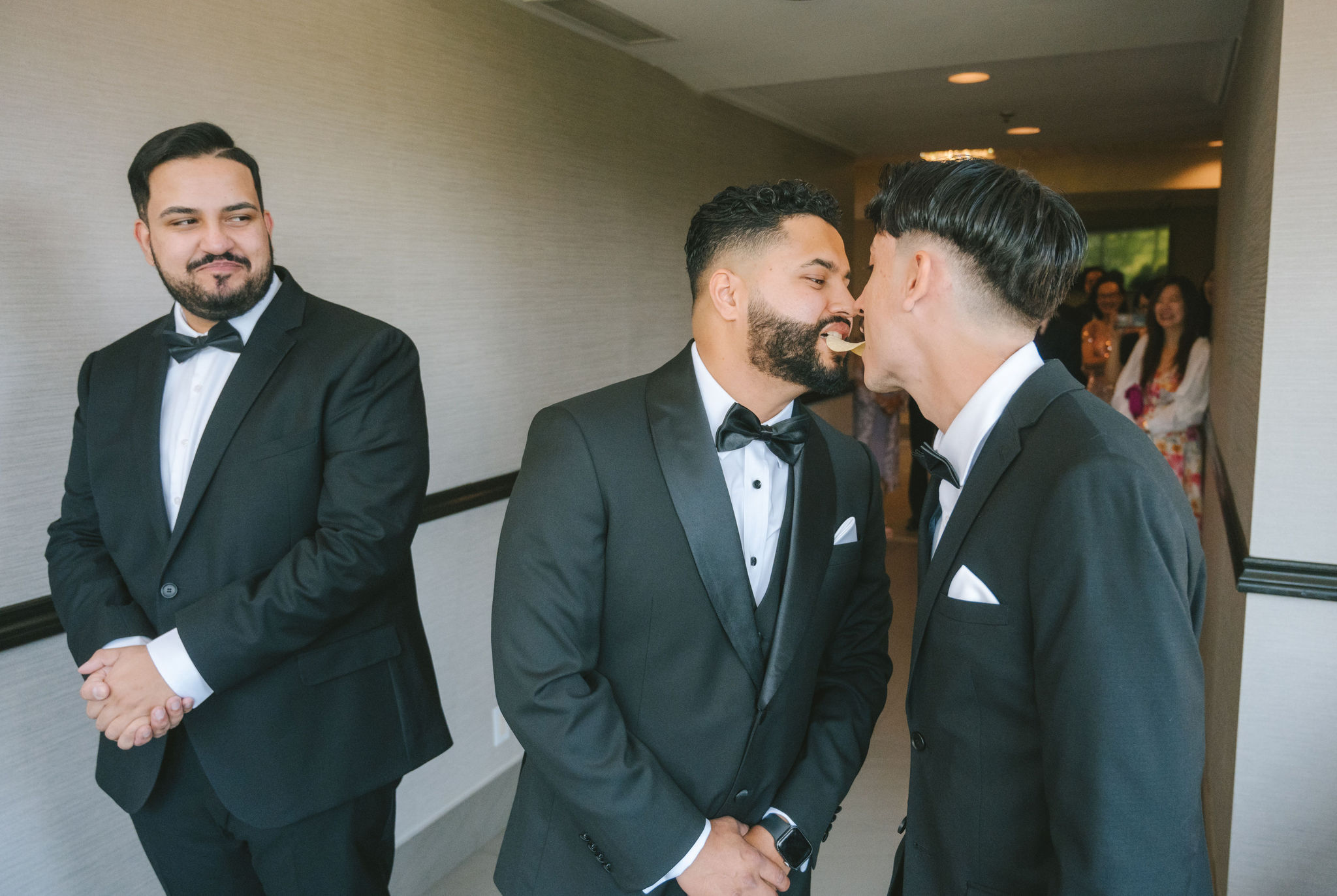 There will always be love stories that bloom in the most wonderful of ways, and there are those that sing across cultures, blending two worlds into something wholly their own. To me, Larissa and Tejasvi’s wedding was exactly that! It was a very luminous celebration where tradition and emotion were beautifully intertwined with one another. I will always love how every glance shared and every gesture between the two of them felt like an echo of two families becoming one, a harmony of laughter, faith, and devotion that seemed to stretch beyond time itself. The journey of their wedding day began with the most lighthearted joy as Larissa and Tejasvi took part in the delightful door games of Chinese tradition that filled the air with laughter and heartfelt moments. It will always be wonderful to get to capture such moments! The room buzzed with warmth as loved ones cheered and teased, their joy setting the tone for the days ahead. Afterwards, I couldn’t even begin to express how beautiful it was when I followed them to their Hindu wedding ceremony that had been held in the intimate space of Tejasvi’s family home! Surrounded by sacredness and bright colors, the rituals unfolded in a graceful rhythm of devotion. The air shimmered with meaning—fire, garlands, and blessings weaving the spiritual fabric of their union as parents watched with tender eyes. Next occurred their Chinese tea ceremony, a moment that’s incredibly rich with devotion and honoring one’s culture. I was obsessed with that exchange of tea because Larissa and Tejasvi honored the generations that came before them, and they offered their cups with bowed heads and soft smiles, receiving blessings wrapped in love, laughter, and a few happy tears. The ceremony carried within it such quiet poetry, with two cultures standing side by side, each gesture speaking of respect and harmony. It was a reminder that family, in all its beautiful forms, is the truest foundation of marriage! Then came the heart of their celebration. The wedding ceremony and reception at The Manor showcased every detail that felt thoughtfully crafted to reflect the couple’s story. The venue, bathed in daylight and surrounded by lush greenery, became a perfect canvas for their elegant, light-and-airy aesthetic. White florals framed the aisle, peach and pink blooms softened every corner, and a sense of serenity seemed to linger in the air. The moment Larissa walked in, looking incredibly elegant and beautiful, her bridal glow was nothing short of breathtaking—every step filled with grace and anticipation. Tejasvi’s eyes lit up with the quiet awe of a man seeing not just his bride, but his best friend, his past, his present, and his future walking toward him. After the vows they’ve longed to say were finally uttered, the day melted into celebration. Their evening shimmered with heartfelt speeches—words filled with gratitude, laughter, and gentle tears. Their loved ones reminisced about how these two had grown together over ten years—from colleagues at work to soulmates who built a life anchored in patience and devotion. The dance floor then came alive, the music flowing between upbeat energy and slow, tender rhythms. Their first dance was a soft blur of motion and emotion, the kind of moment that stays etched in memory long after the lights fade! Every layer of the day—from sacred fire to shared tea, from laughter to tears—was a portrait of love in all its forms. Larissa and Tejasvi didn’t just merge traditions; they created something new, something uniquely theirs. Their wedding wasn’t simply about two people saying “I do”—it was about honoring where they came from, who they’ve become, and who they’ll continue to be together. It was a reminder to me that love, when nurtured with respect and rooted in joy, transcends language, distance, and difference. As their night ended under the warmth of the golden light, their loved ones held one another close, music still humming faintly in the background. And I was grateful to be able to witness Larissa and Tejasvi share intimate glances and loving touches, surrounded by laughter, family, and the lingering scent of jasmine and roses. To me, I had such a warm realization that this was more than a wedding—it was a beautiful promise fulfilled, a story still being written, and a memory that will glow softly in every heart that was lucky enough to witness it!