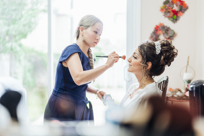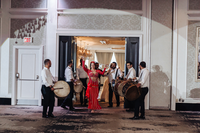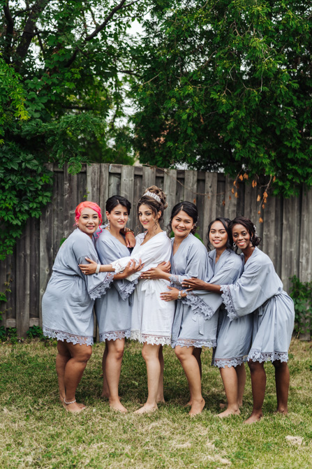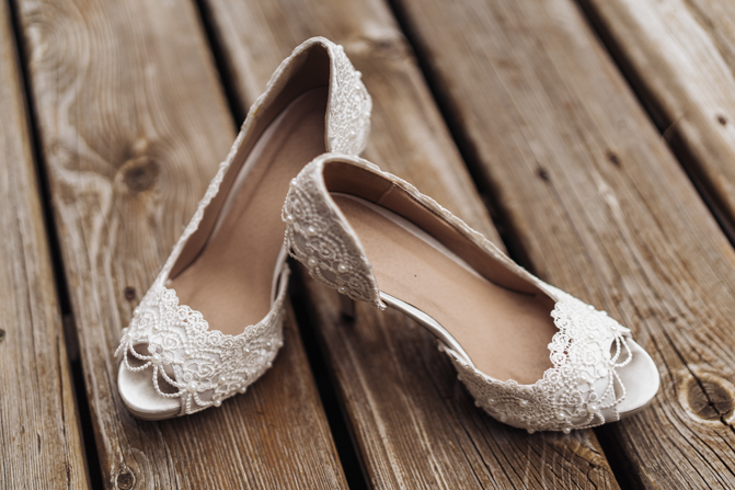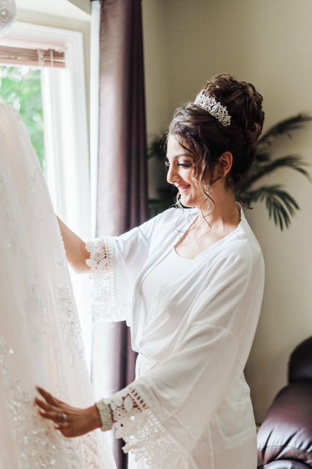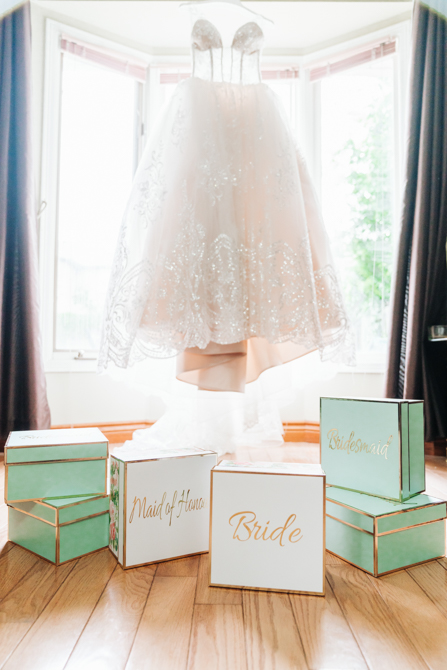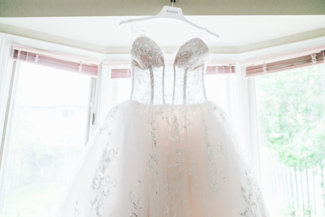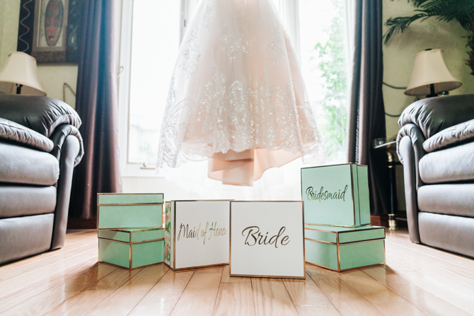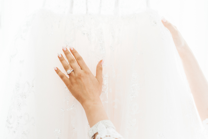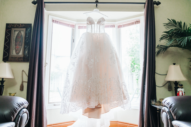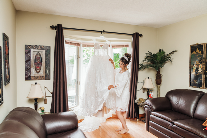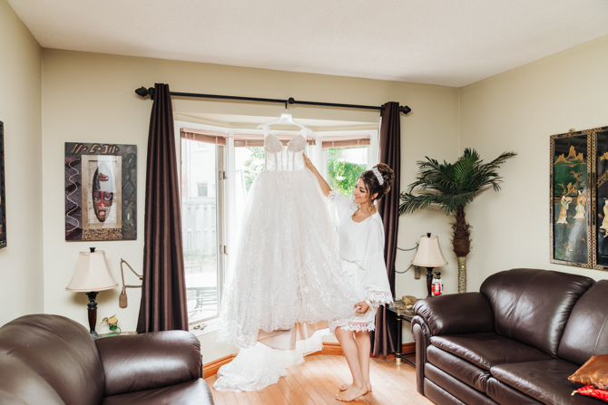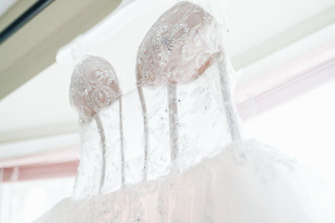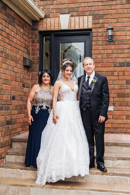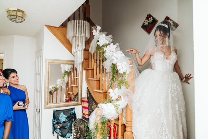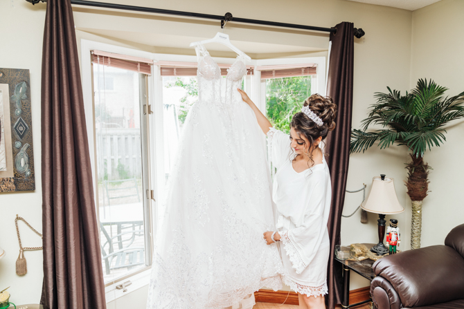 Nadein got ready at her parent’s home while Joe prepared at the couple’s residence nearby. Starting with the shoes, Nadein wore one of the most beautiful pair of bridal heels you’ve ever seen. They were draped in pearls and probably way too pretty to be hiding underneath the dress. But then the dress was even more impressive with detailed beading, a sheer bodice and a stunning full skirt. The professional hair and makeup artist created a bold look that was very glamorous. With all her bridesmaids around her to offer support and love, Nadein looked like a princess.