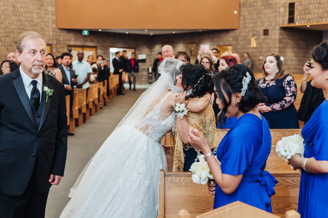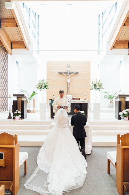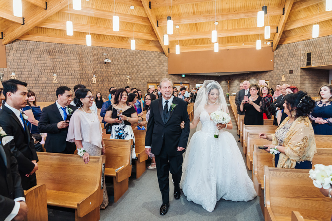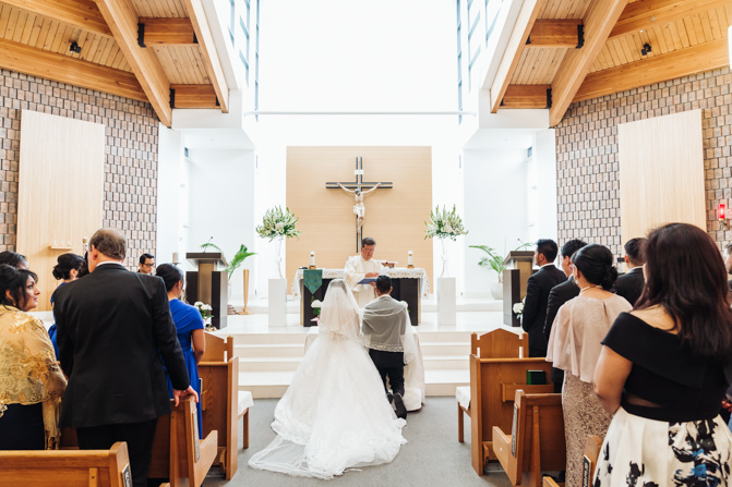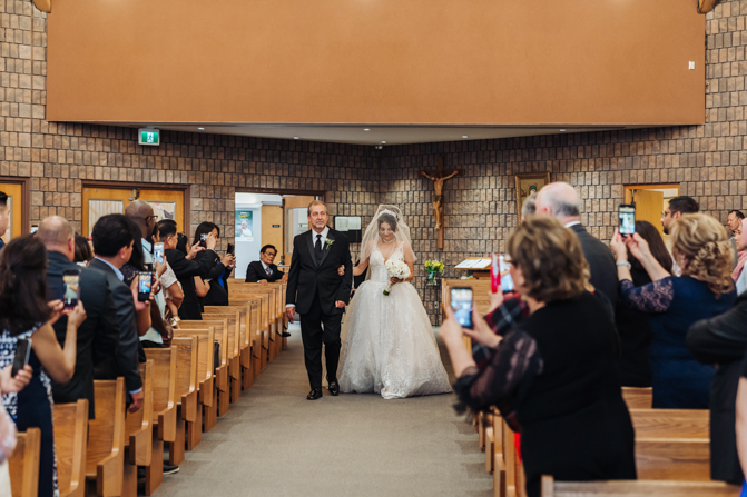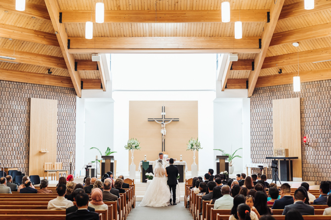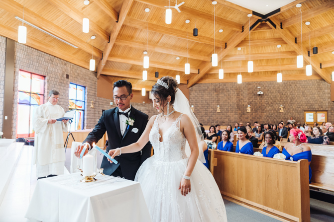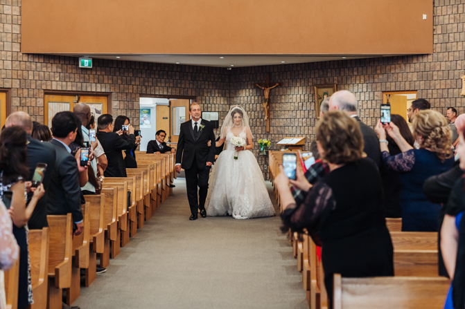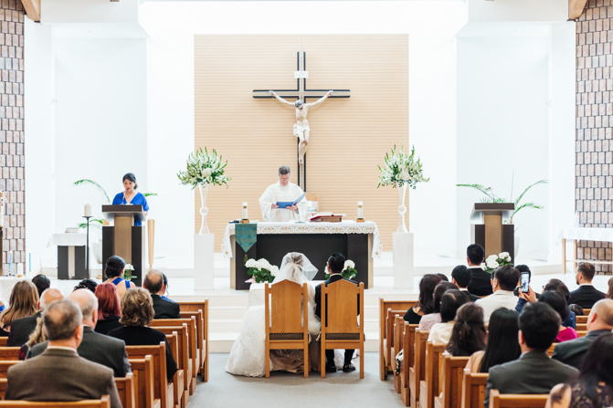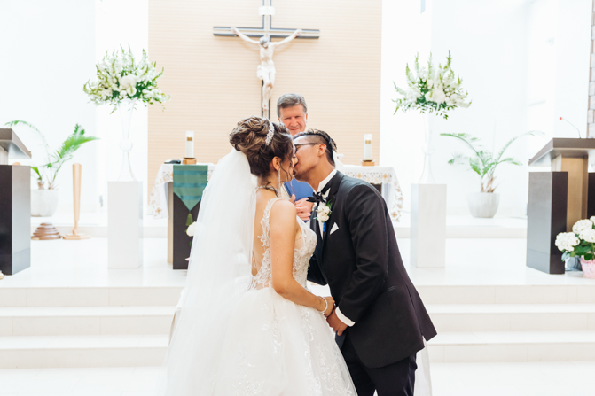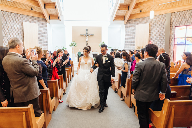 After the ring exchange, Joe took his bride’s veil off and following some Catholic religious traditions, the couple were announced as man and wife. Everyone rejoiced as the joyful couple left the church through the front doors and stepped into the sunlight.