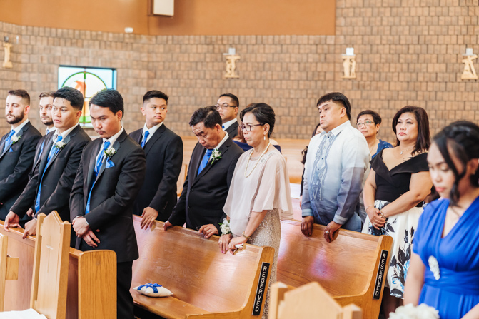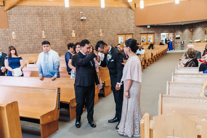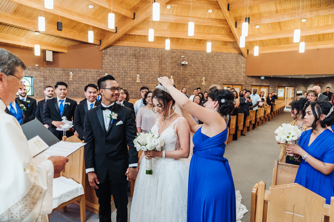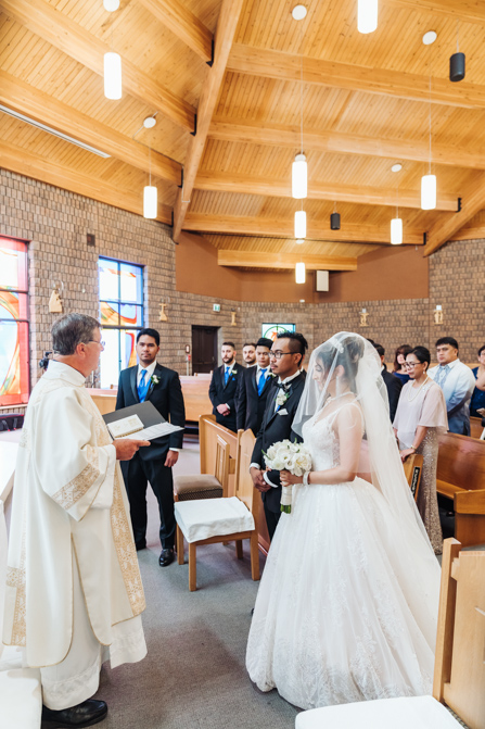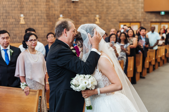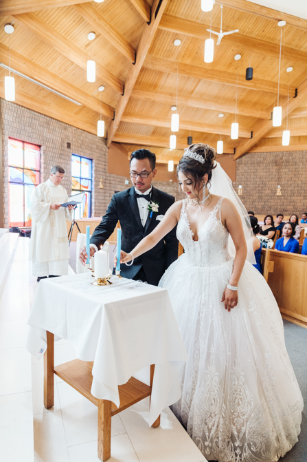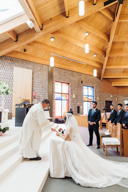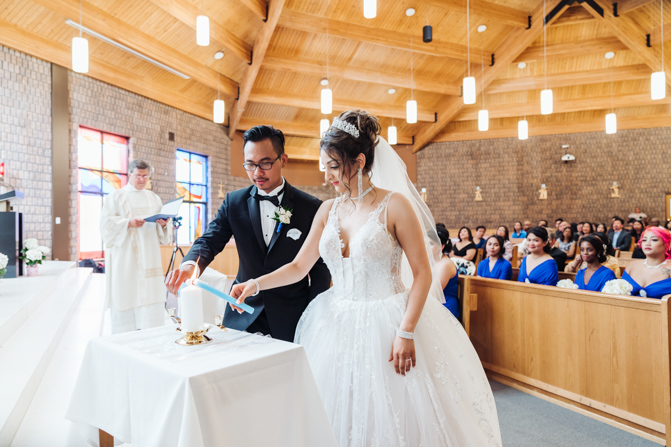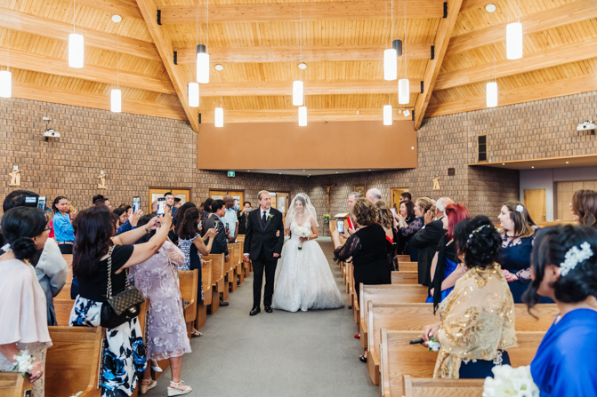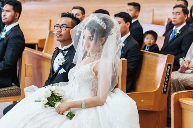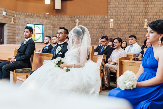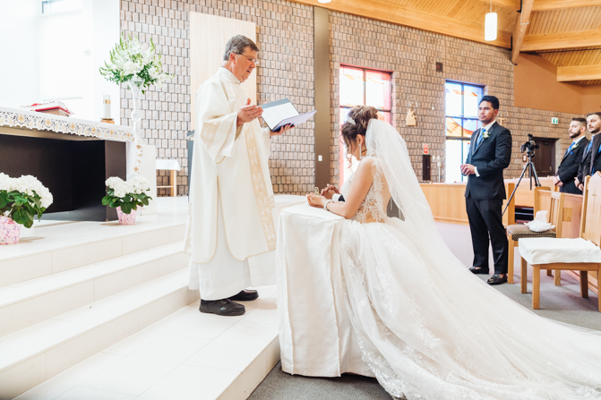 After the ring exchange, Joe took his bride’s veil off and following some Catholic religious traditions, the couple were announced as man and wife. Everyone rejoiced as the joyful couple left the church through the front doors and stepped into the sunlight.