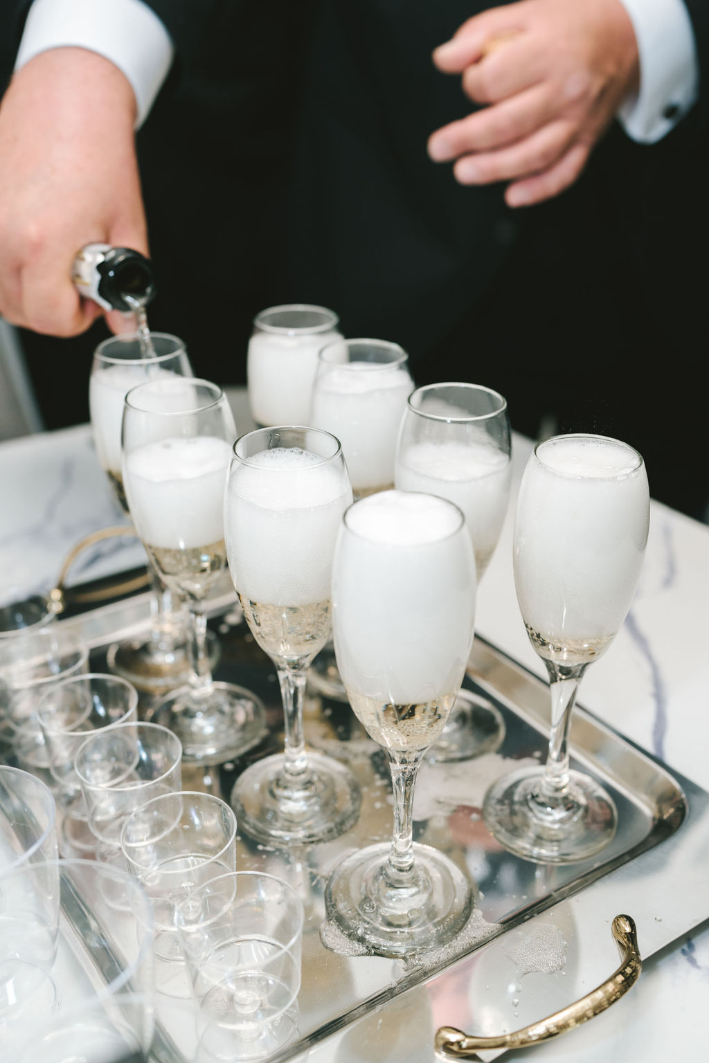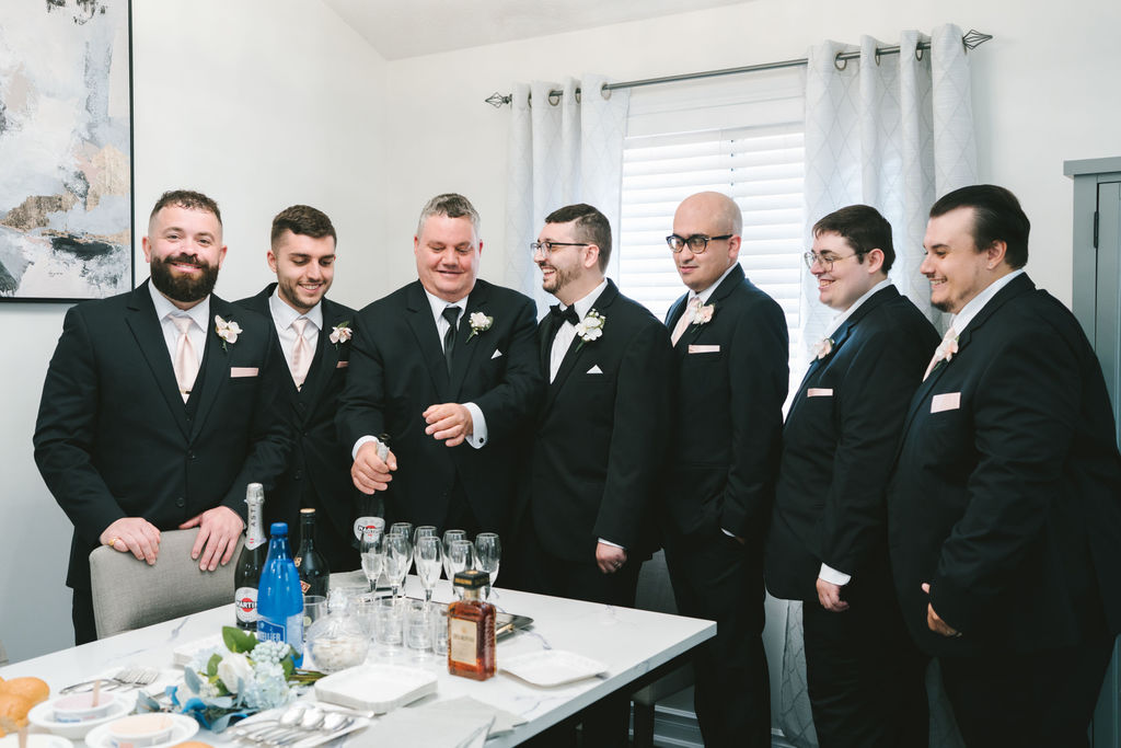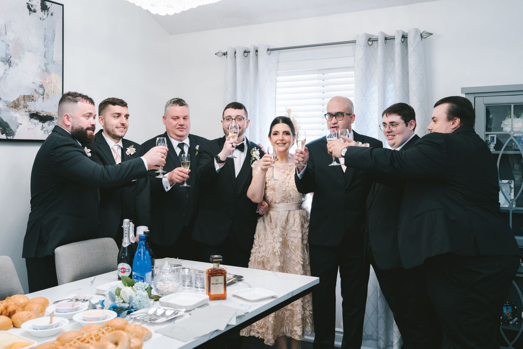 Once they had sent Sarah on her way inside of the limousine, I went over to Alessandro’s. By the time I had gotten there, everybody was already dressed to the nines. I was able to capture the moment that they popped the cork and splashed the bubbly beverage into champagne flutes. Every one of his loved ones clinked their glasses and cheered to this new milestone that Alessandro had taken.
