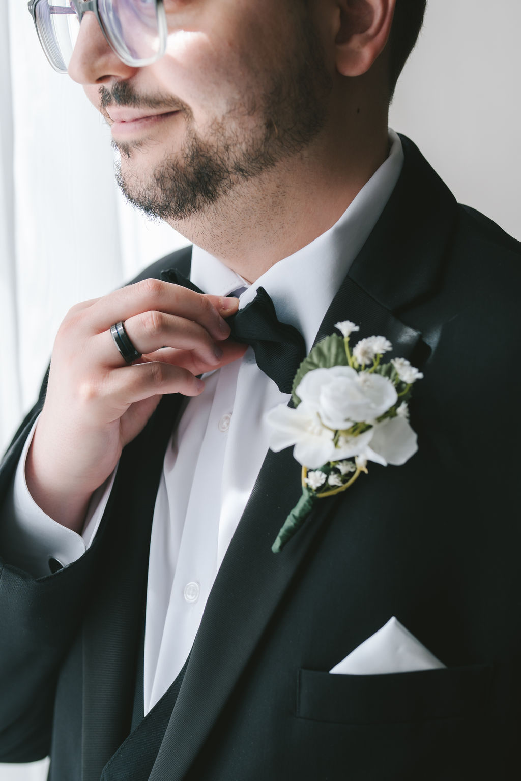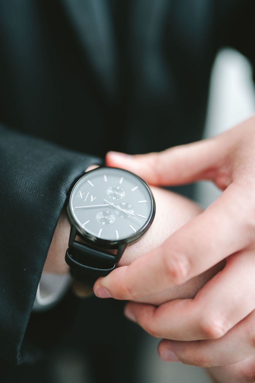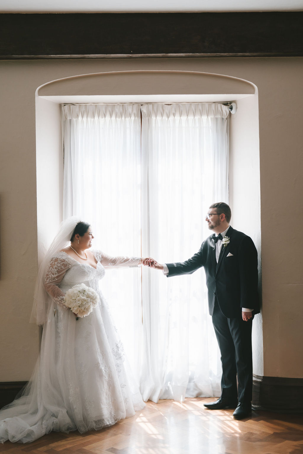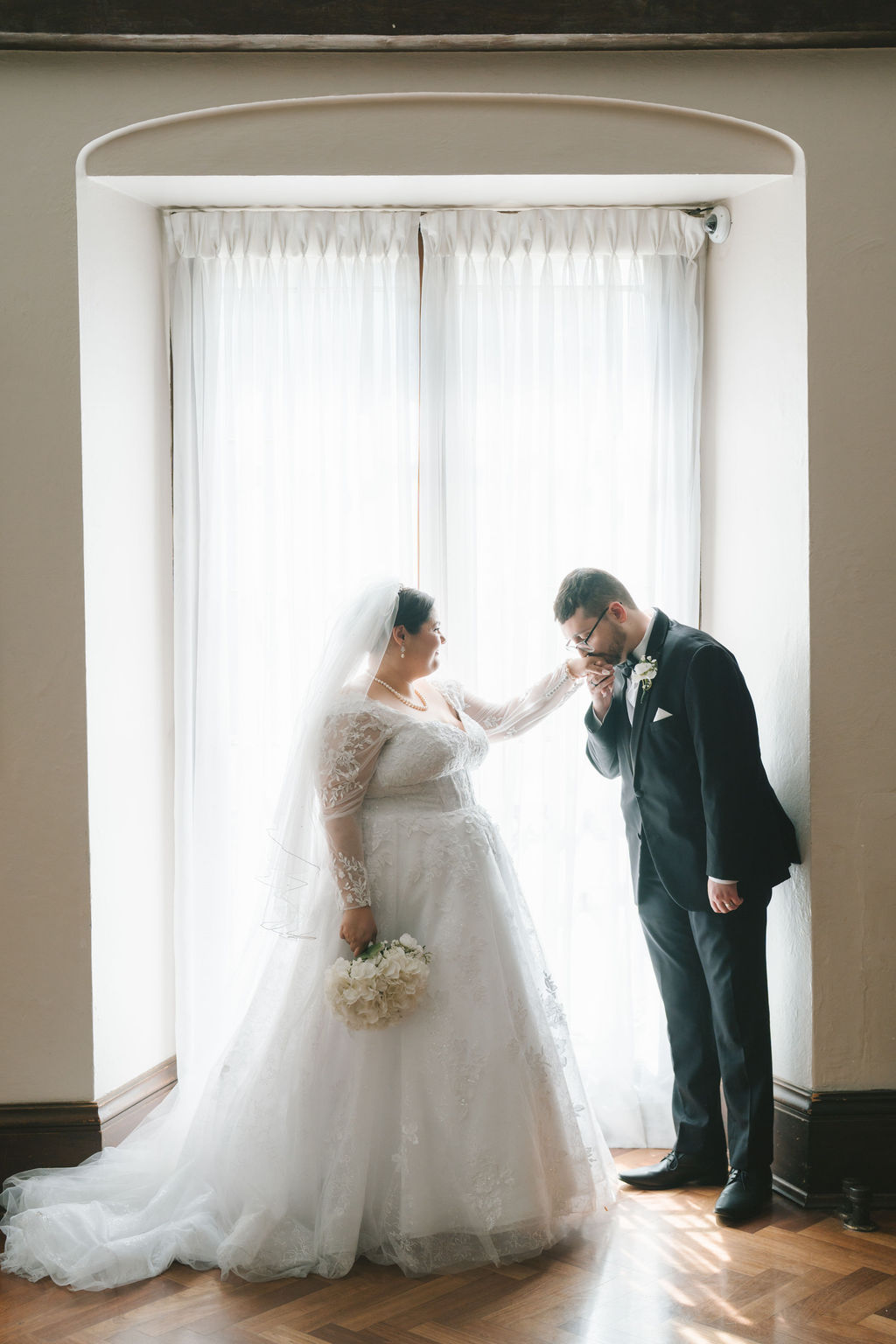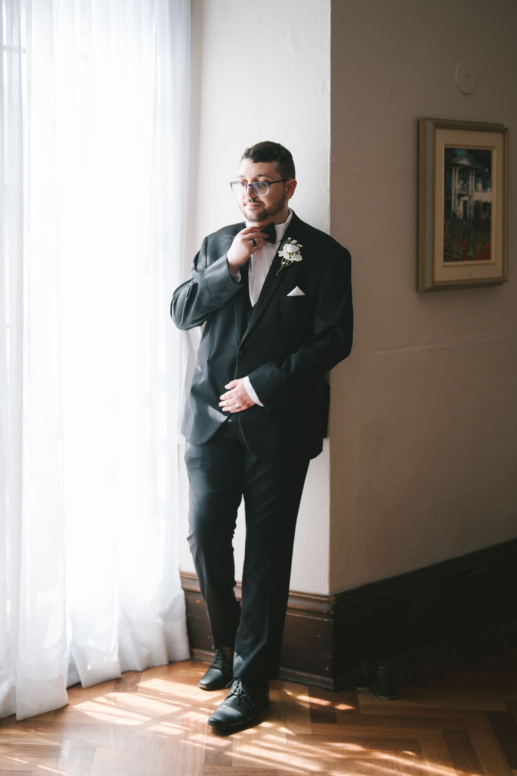 After they had finished, I pulled Alessandro aside and photographed him by a window covered in white sheer curtains. It spanned from the ceiling to the floor, allowing for enough light to shine through. I instructed Alessandro to move comfortably, suggesting that he adjust his sleeves or clasp the buttons of his suit. Alessandro absolutely smashed it and delivered every pose exactly as I had envisioned.