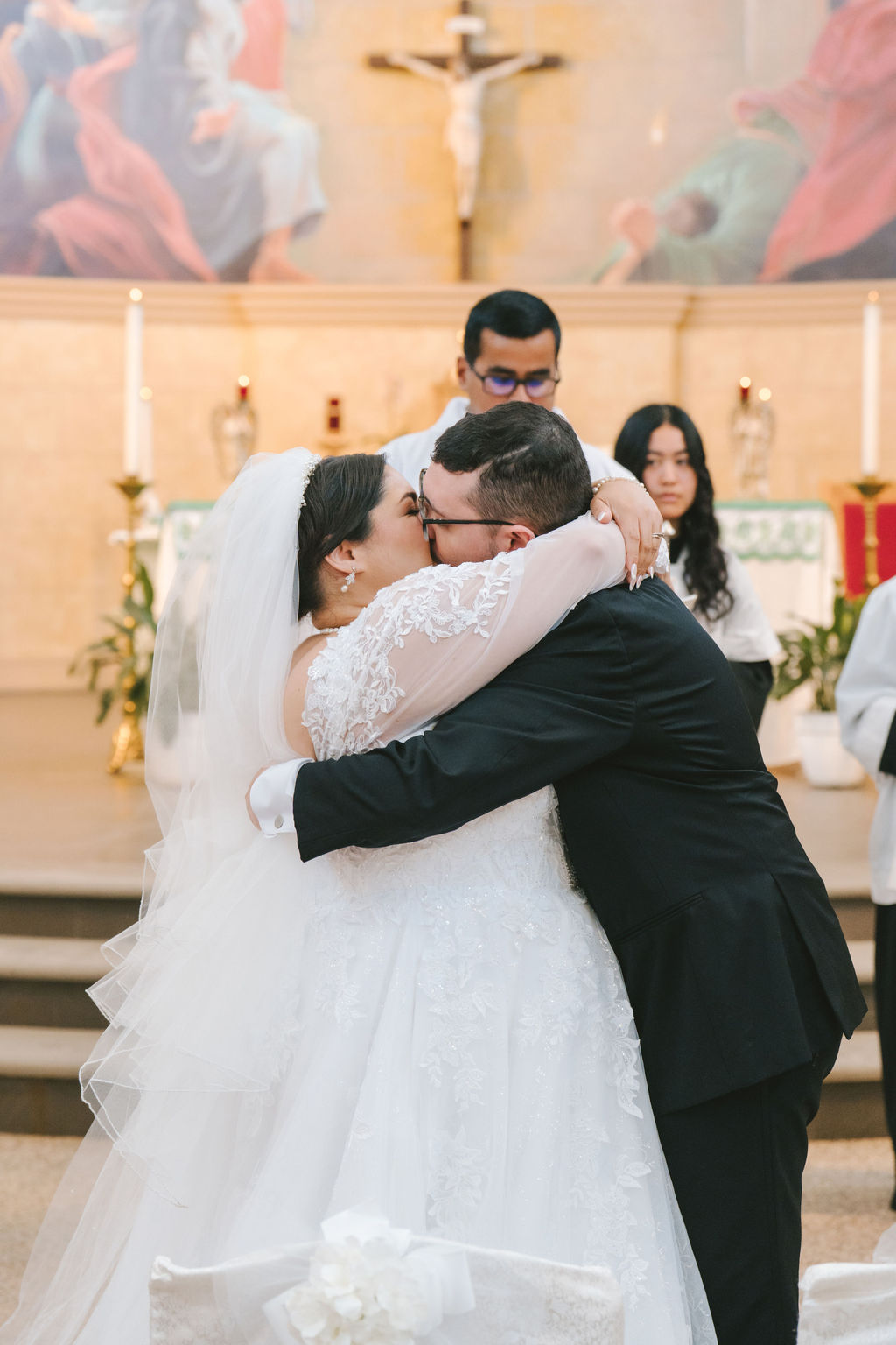 And right before they left for the reception, I snuck a few pictures of them kissing and showing off their rings.