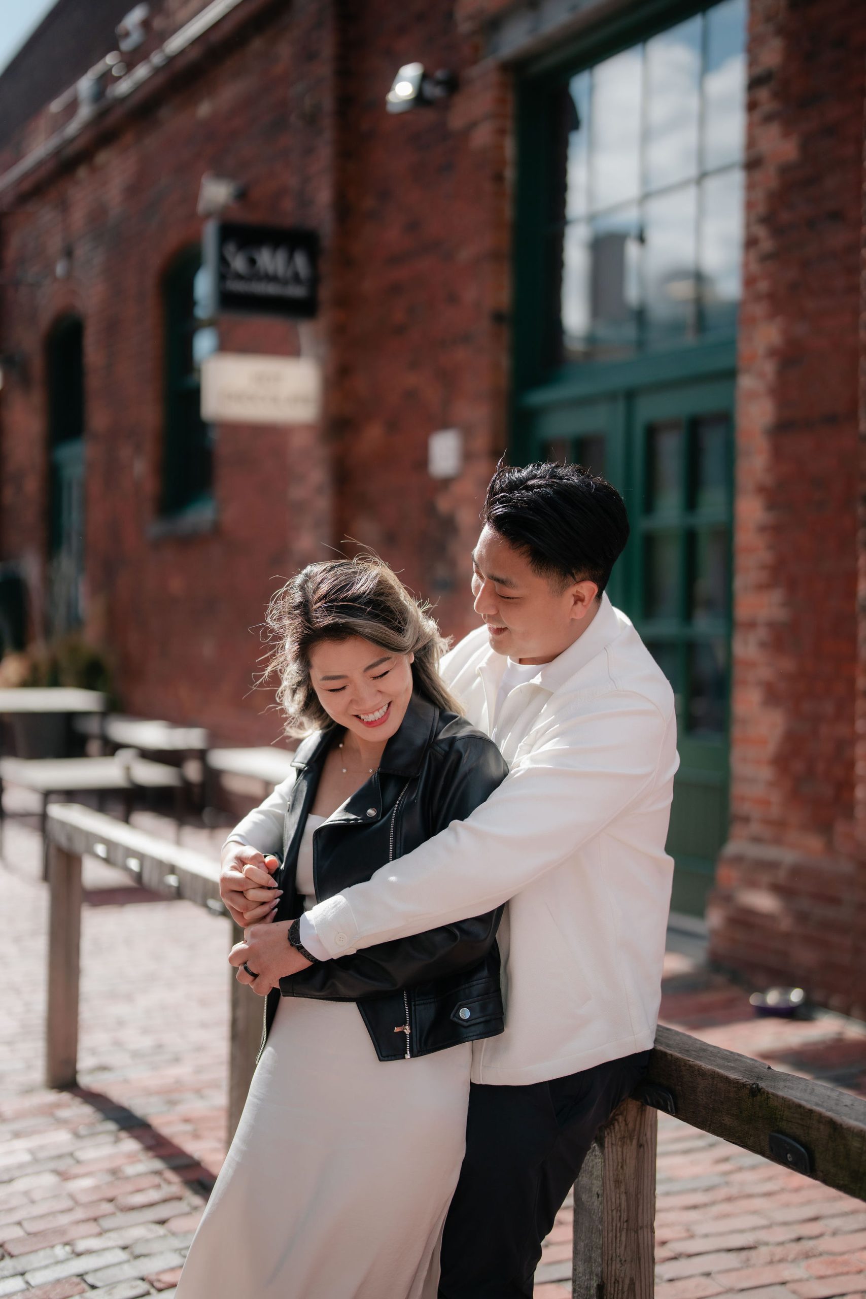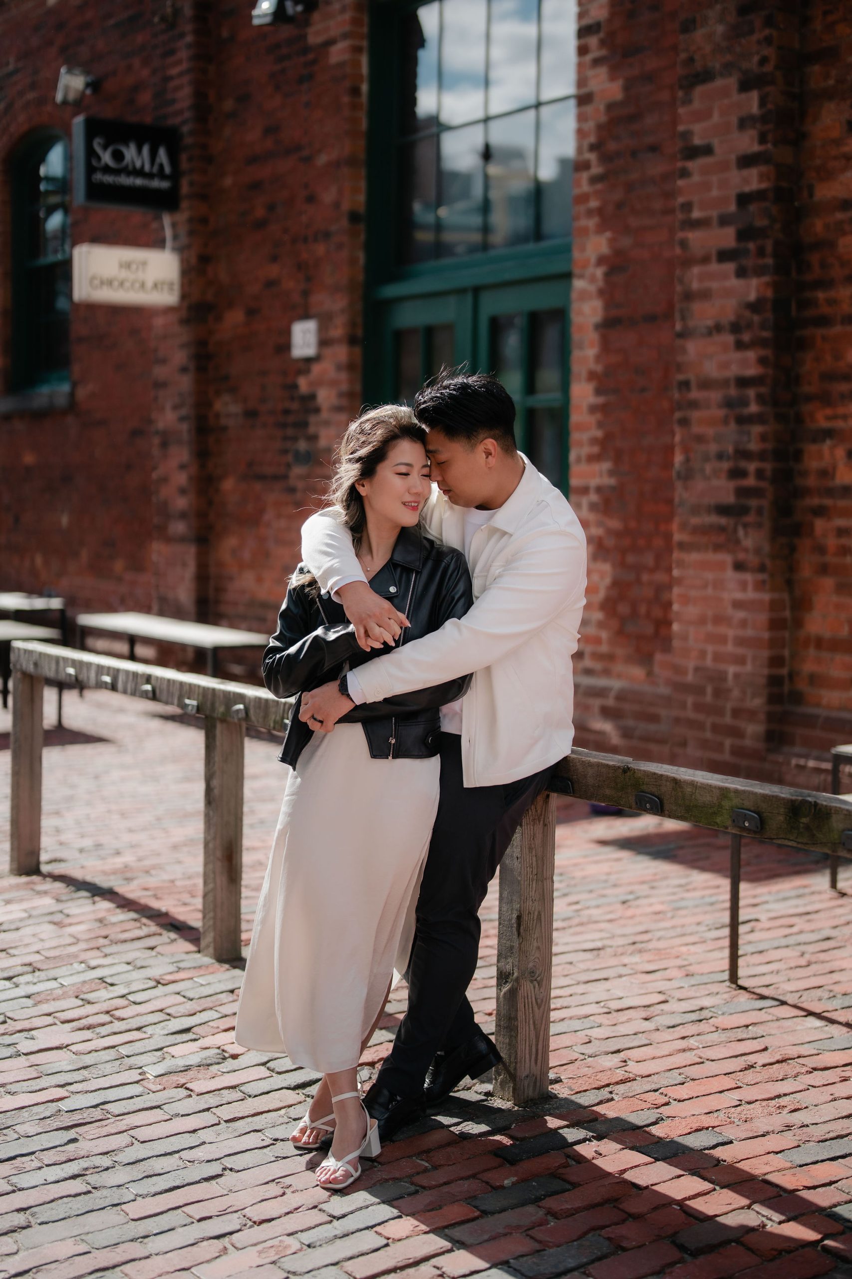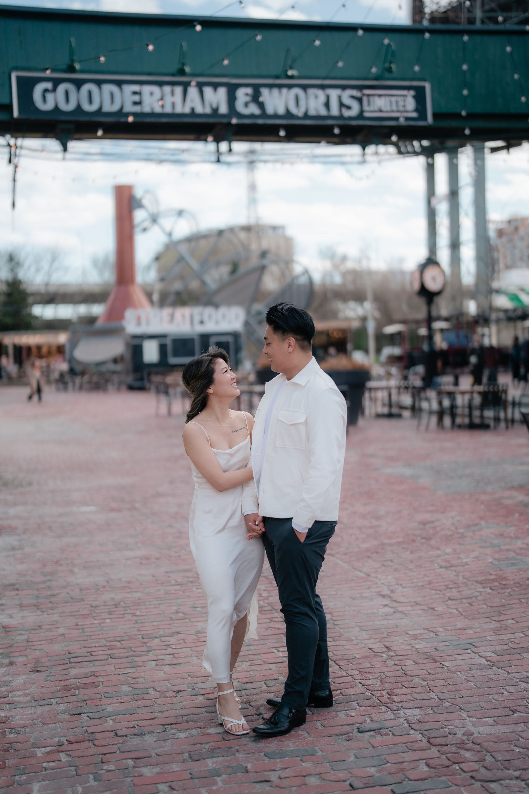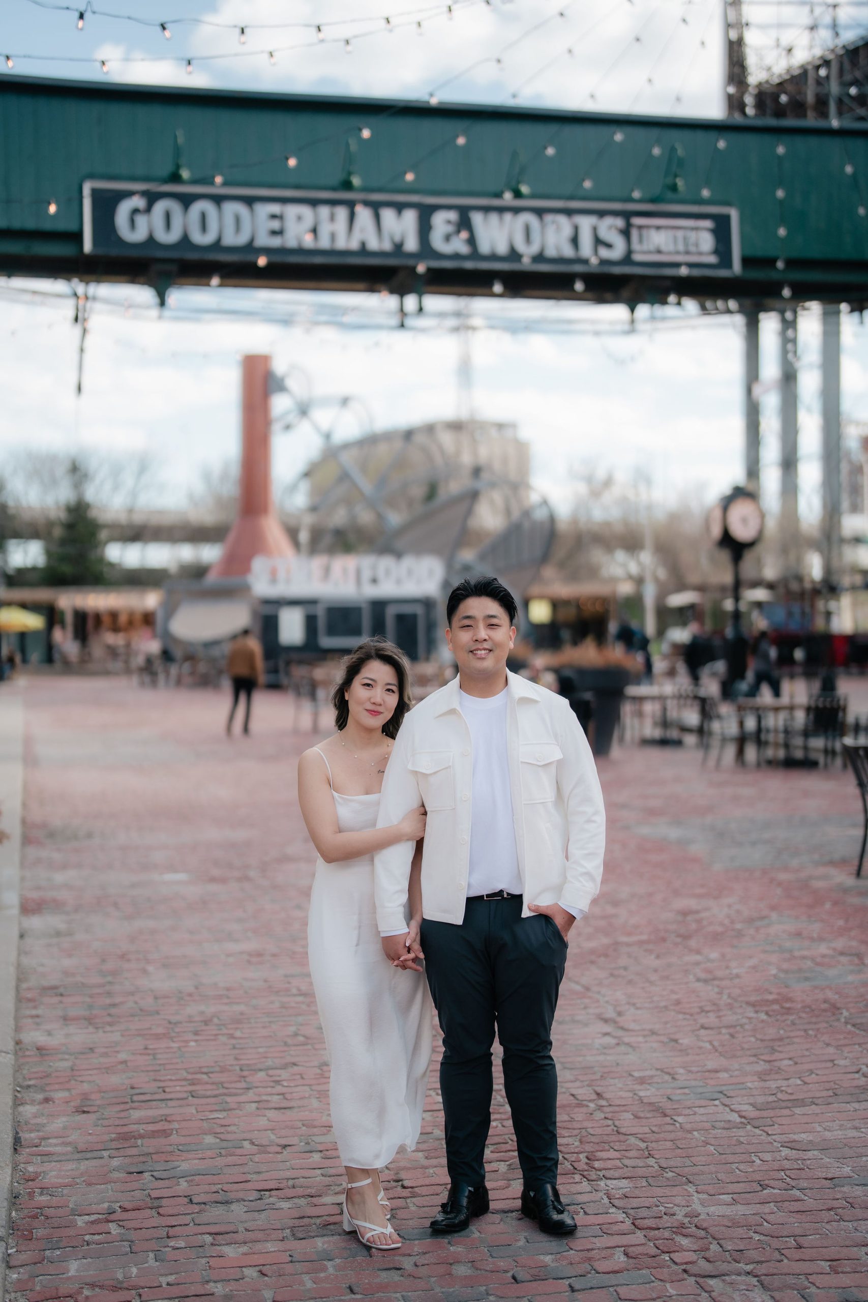 For their photoshoot, they decided to have it at the Distillery Historic District. Christina looked like a Disney princess herself. She wore a white silken dress and a studded leather jacket over it. Okay, maybe she looked more like a punk-rock Disney princess, but beautiful regardless! And Sean looked dashing as well. He wore a white relaxed jacket with a simple tee and black pants.