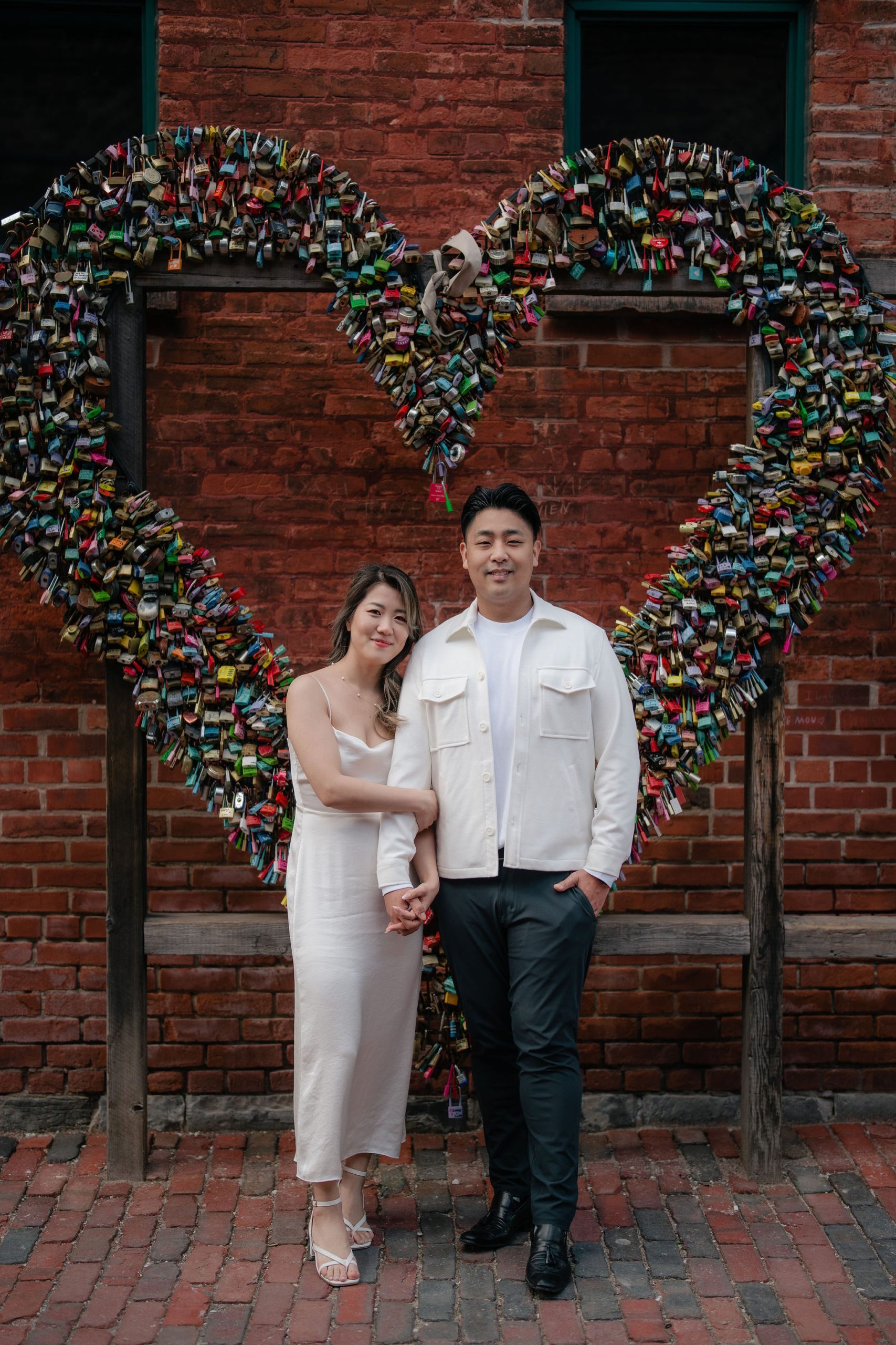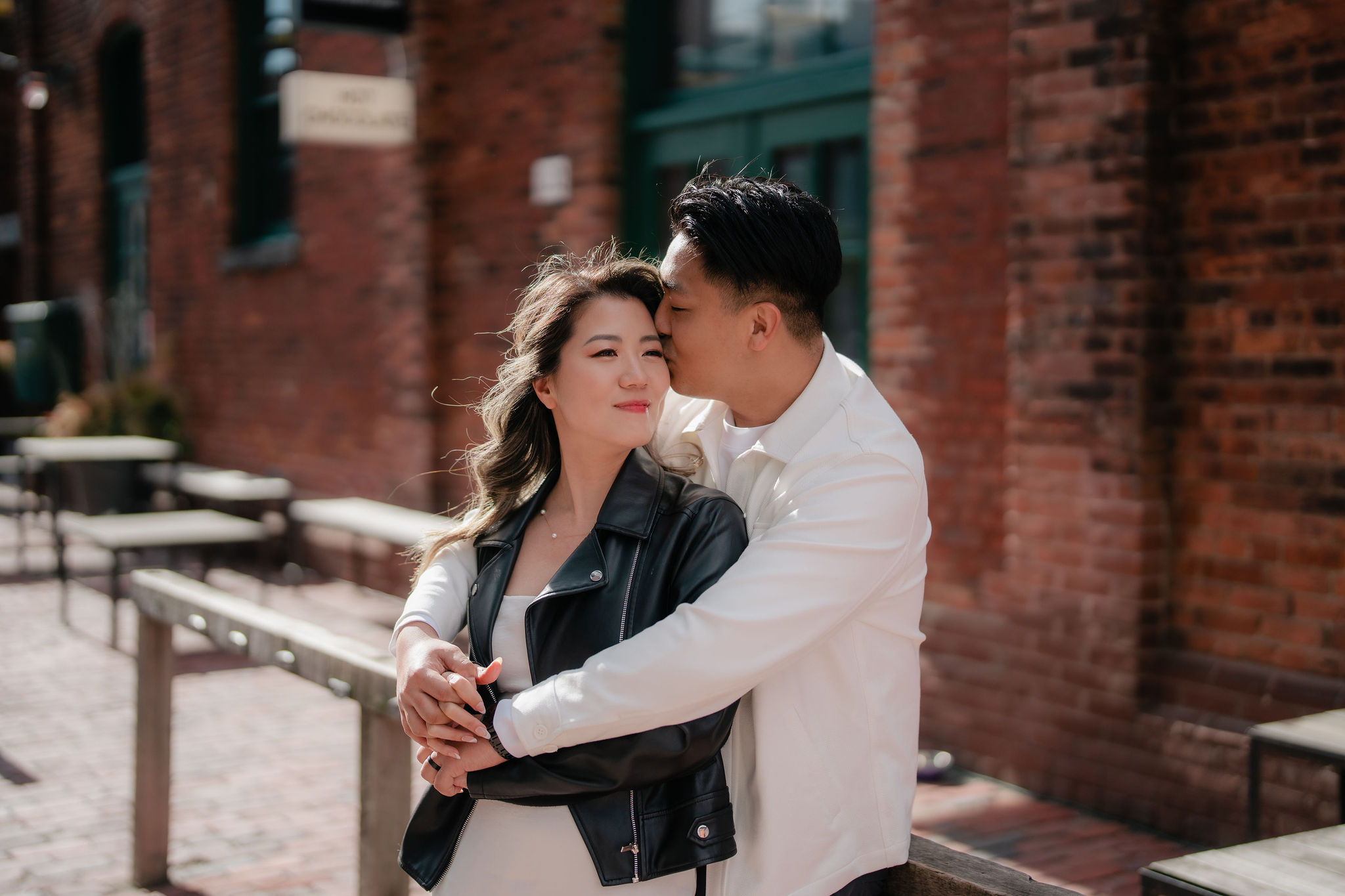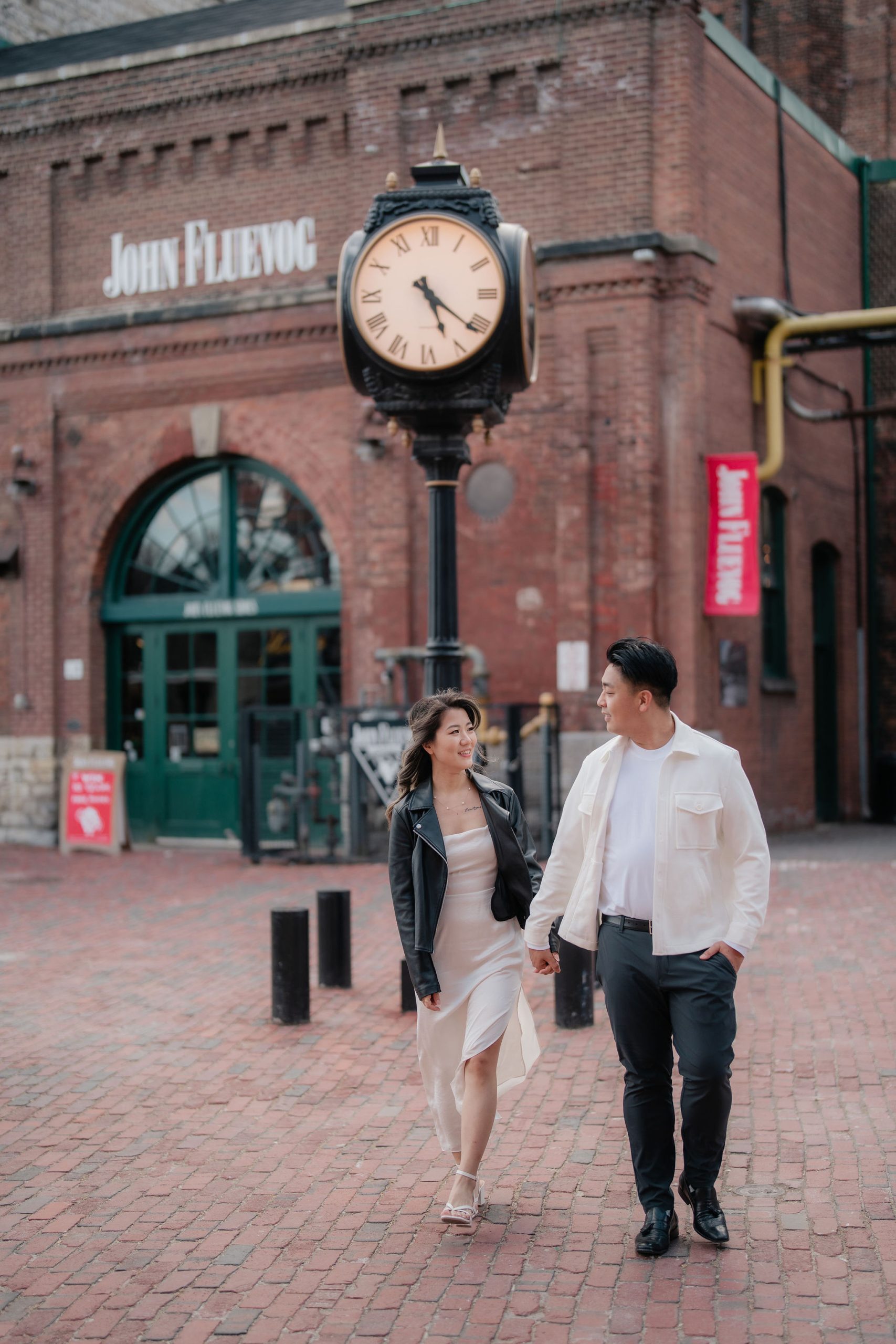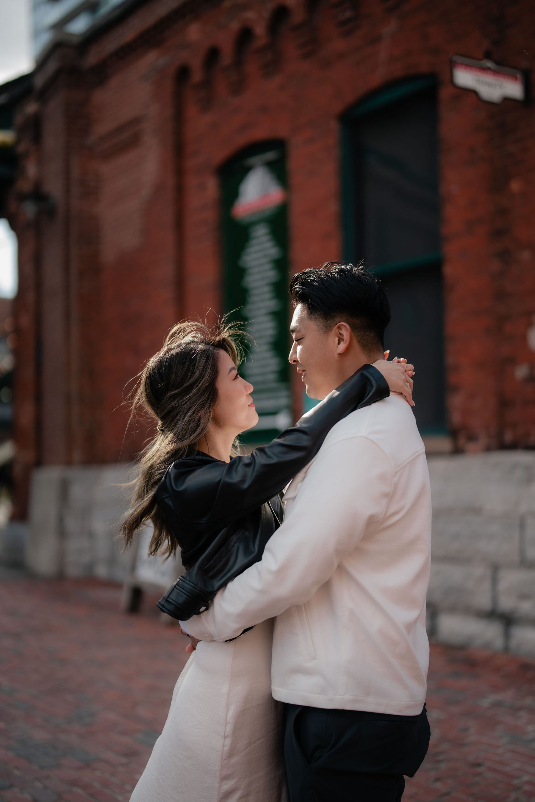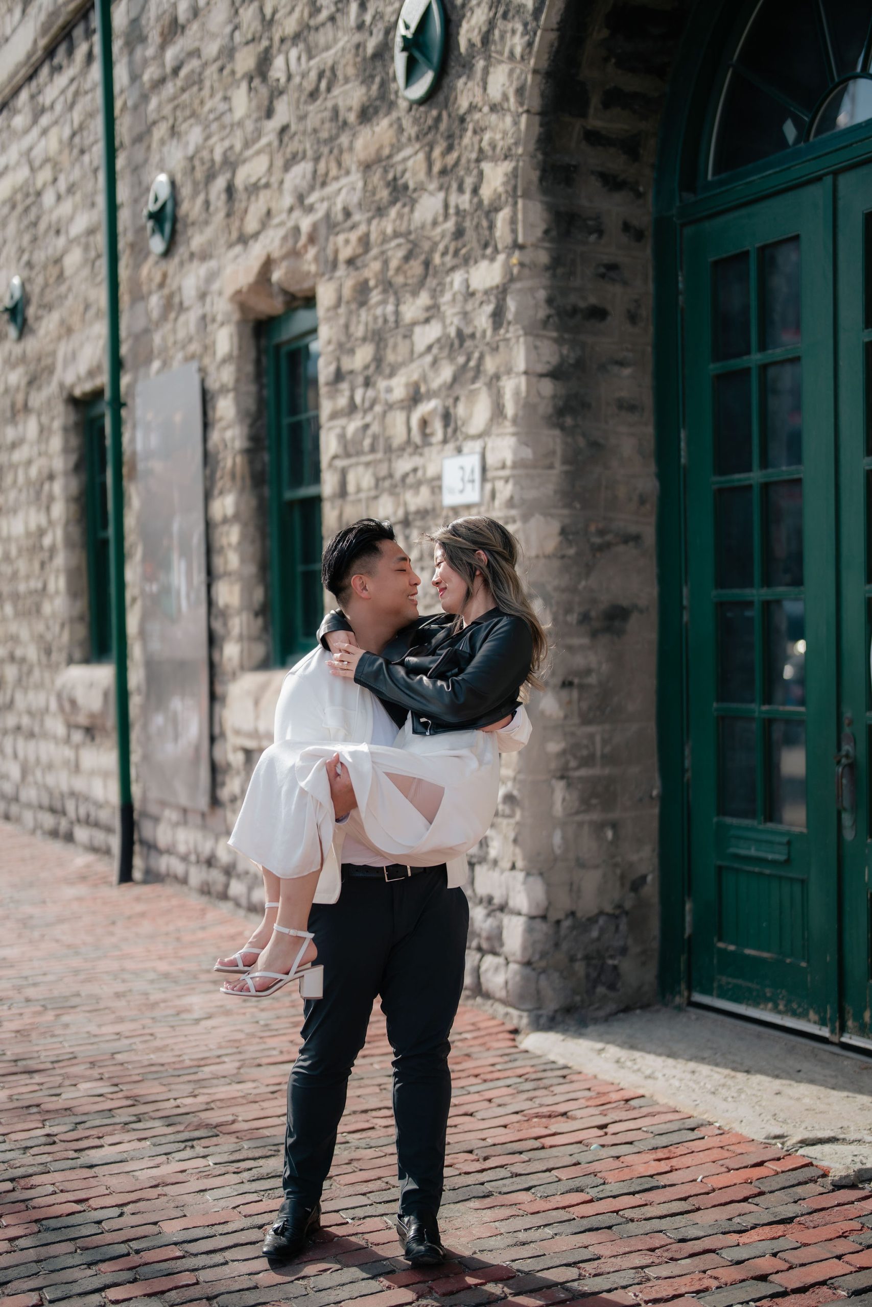 For their photoshoot, they decided to have it at the Distillery Historic District. Christina looked like a Disney princess herself. She wore a white silken dress and a studded leather jacket over it. Okay, maybe she looked more like a punk-rock Disney princess, but beautiful regardless! And Sean looked dashing as well. He wore a white relaxed jacket with a simple tee and black pants.