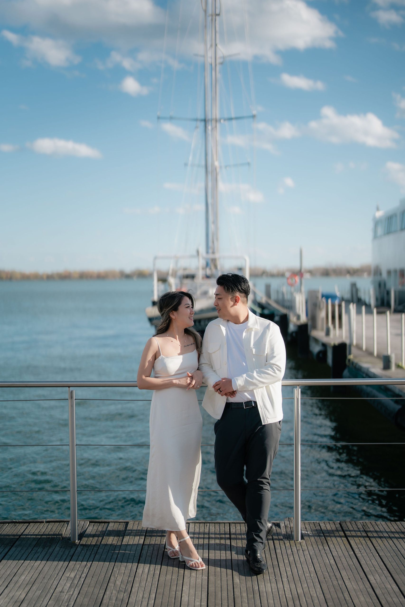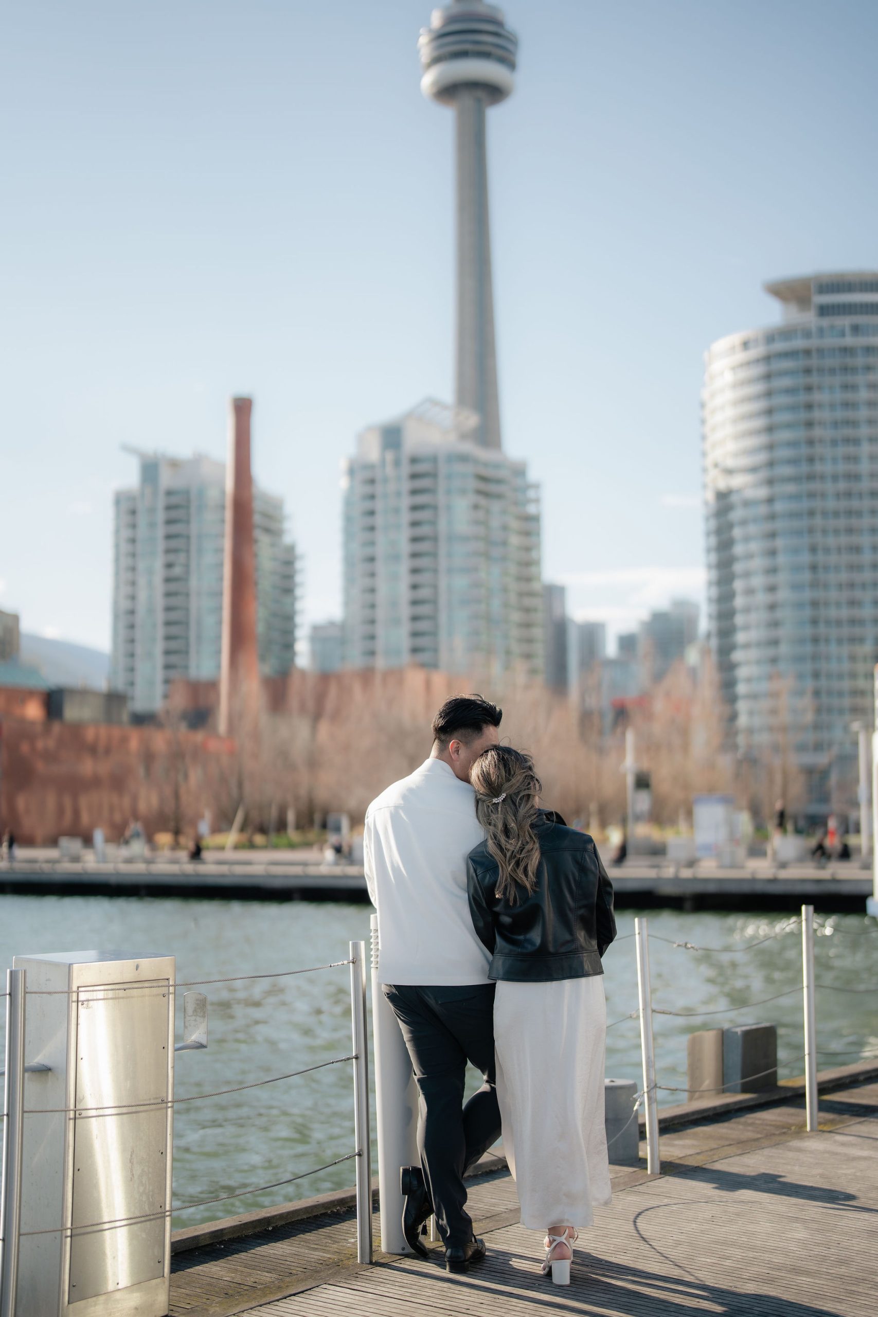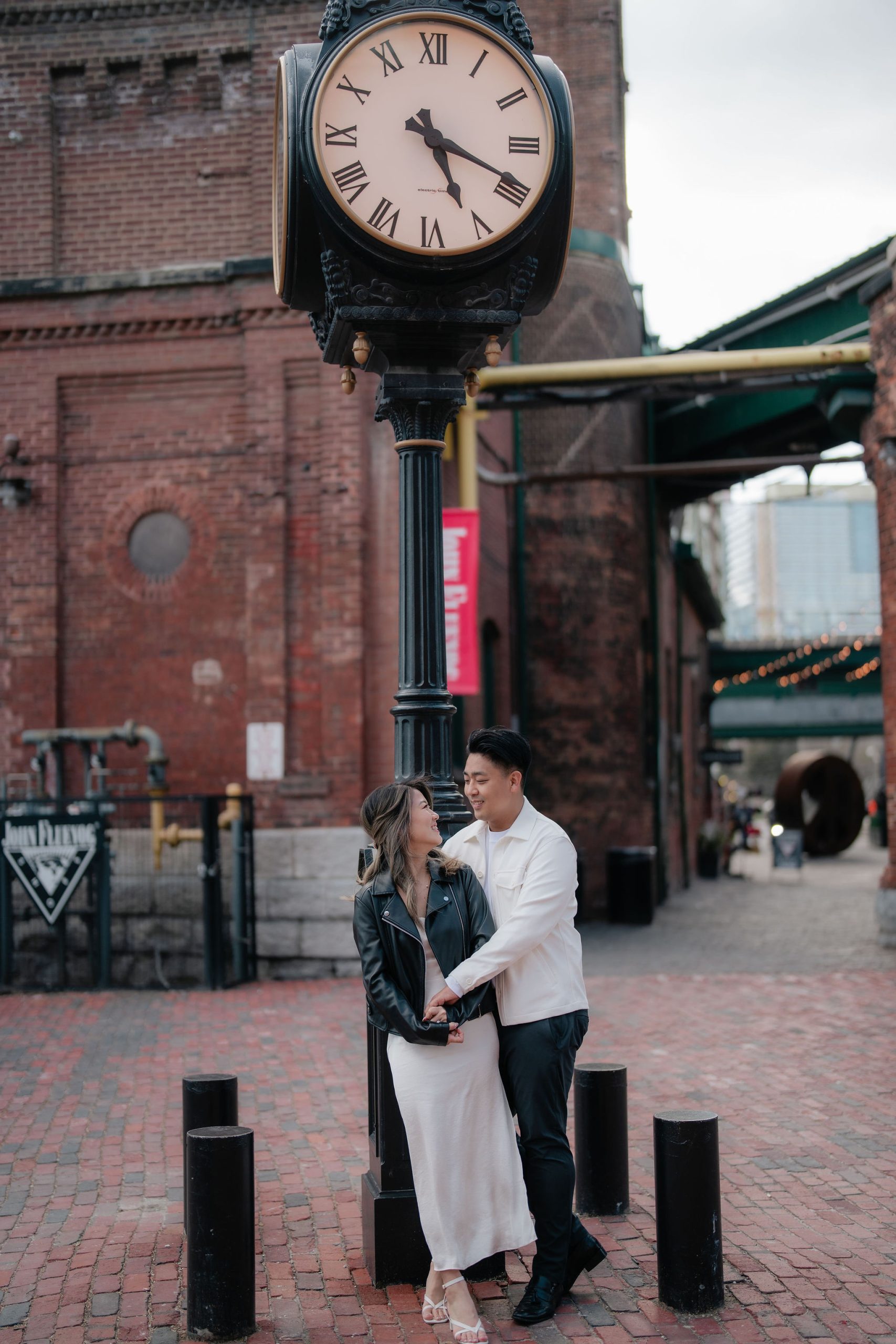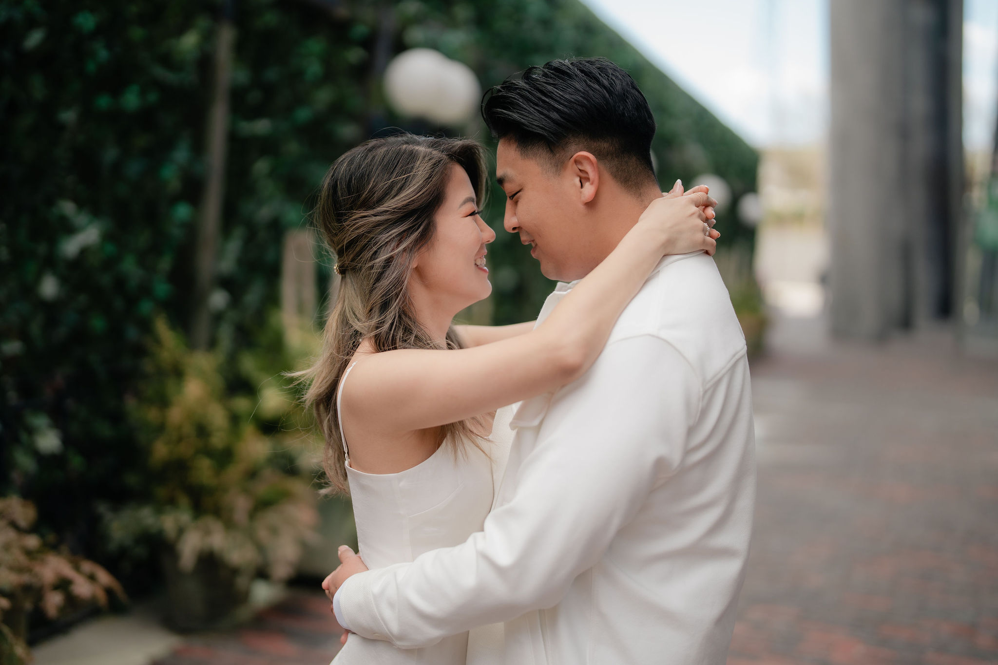 For their photoshoot, they decided to have it at the Distillery Historic District. Christina looked like a Disney princess herself. She wore a white silken dress and a studded leather jacket over it. Okay, maybe she looked more like a punk-rock Disney princess, but beautiful regardless! And Sean looked dashing as well. He wore a white relaxed jacket with a simple tee and black pants.