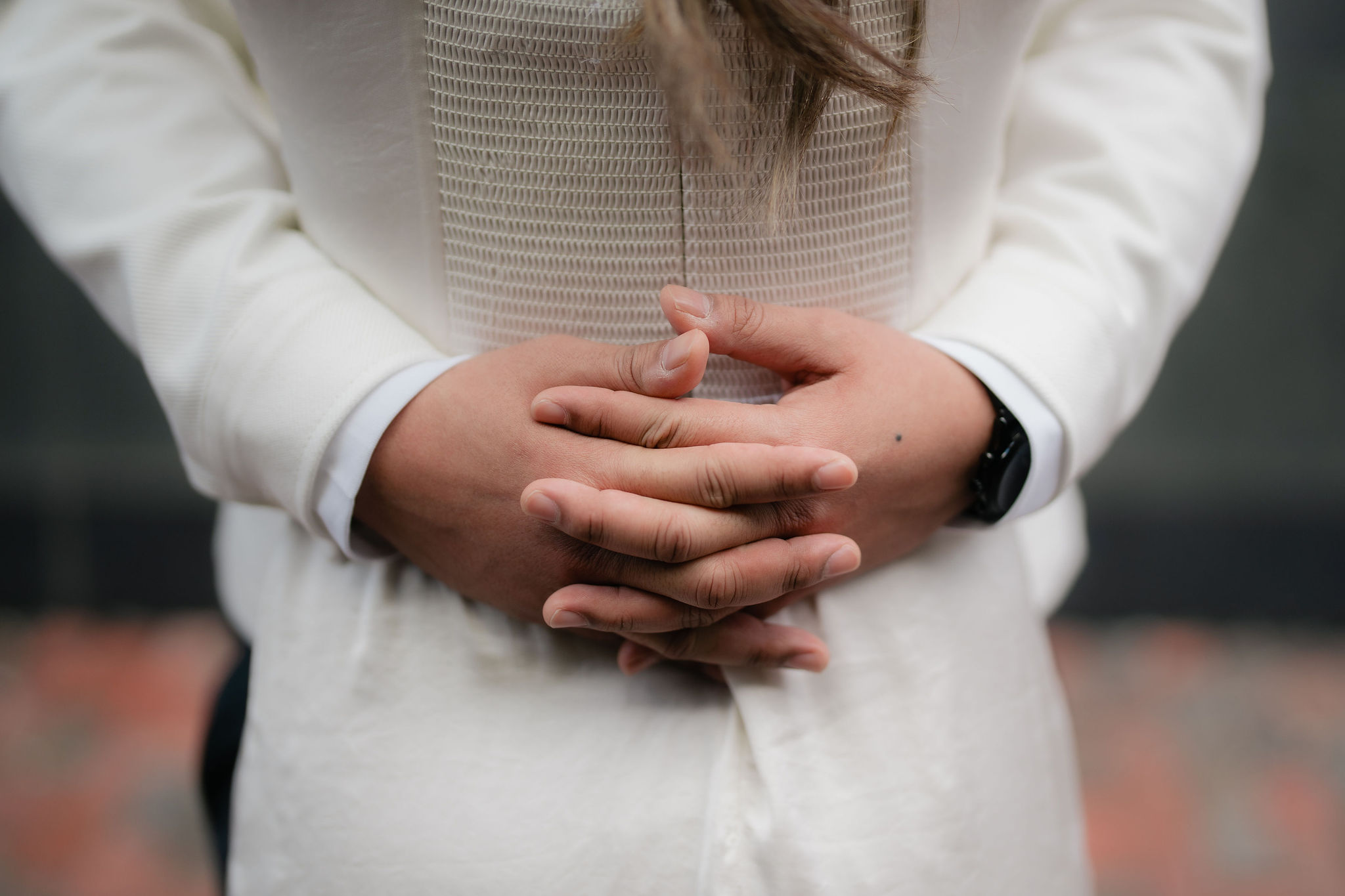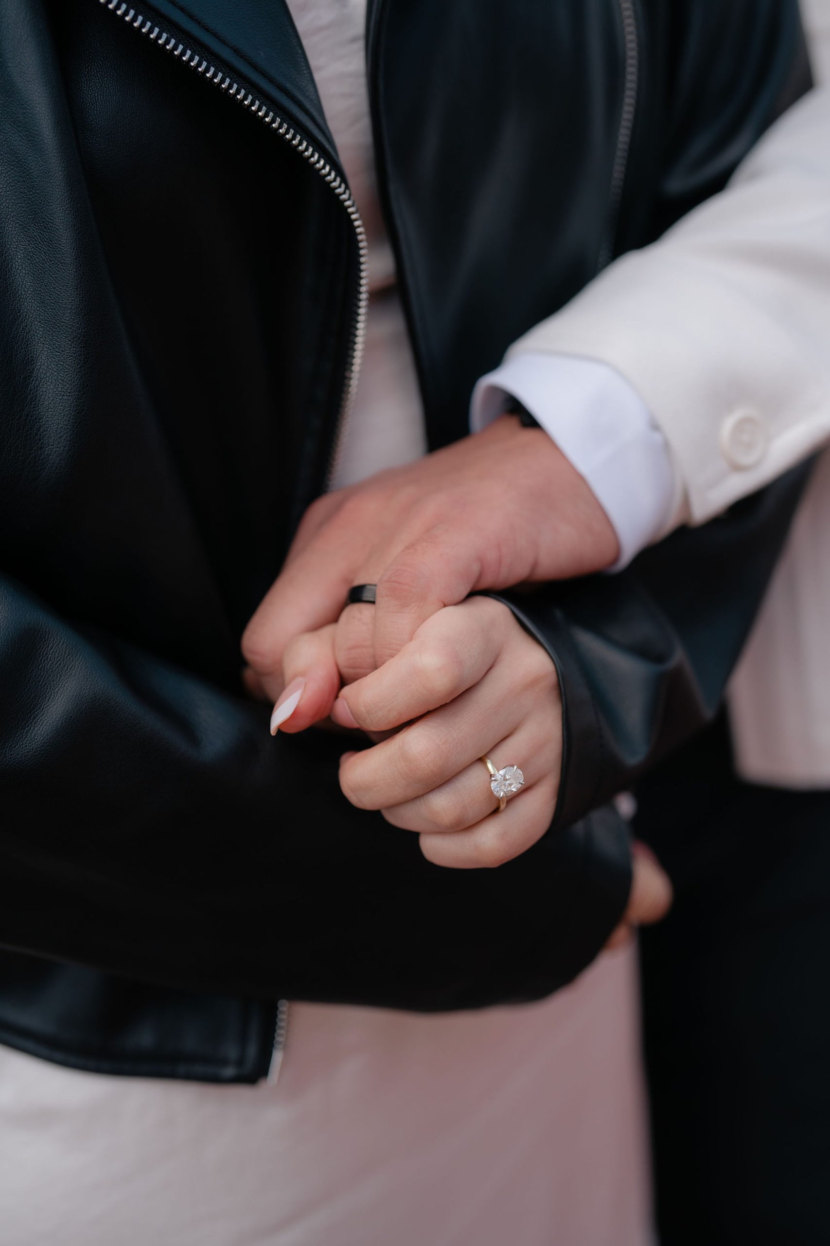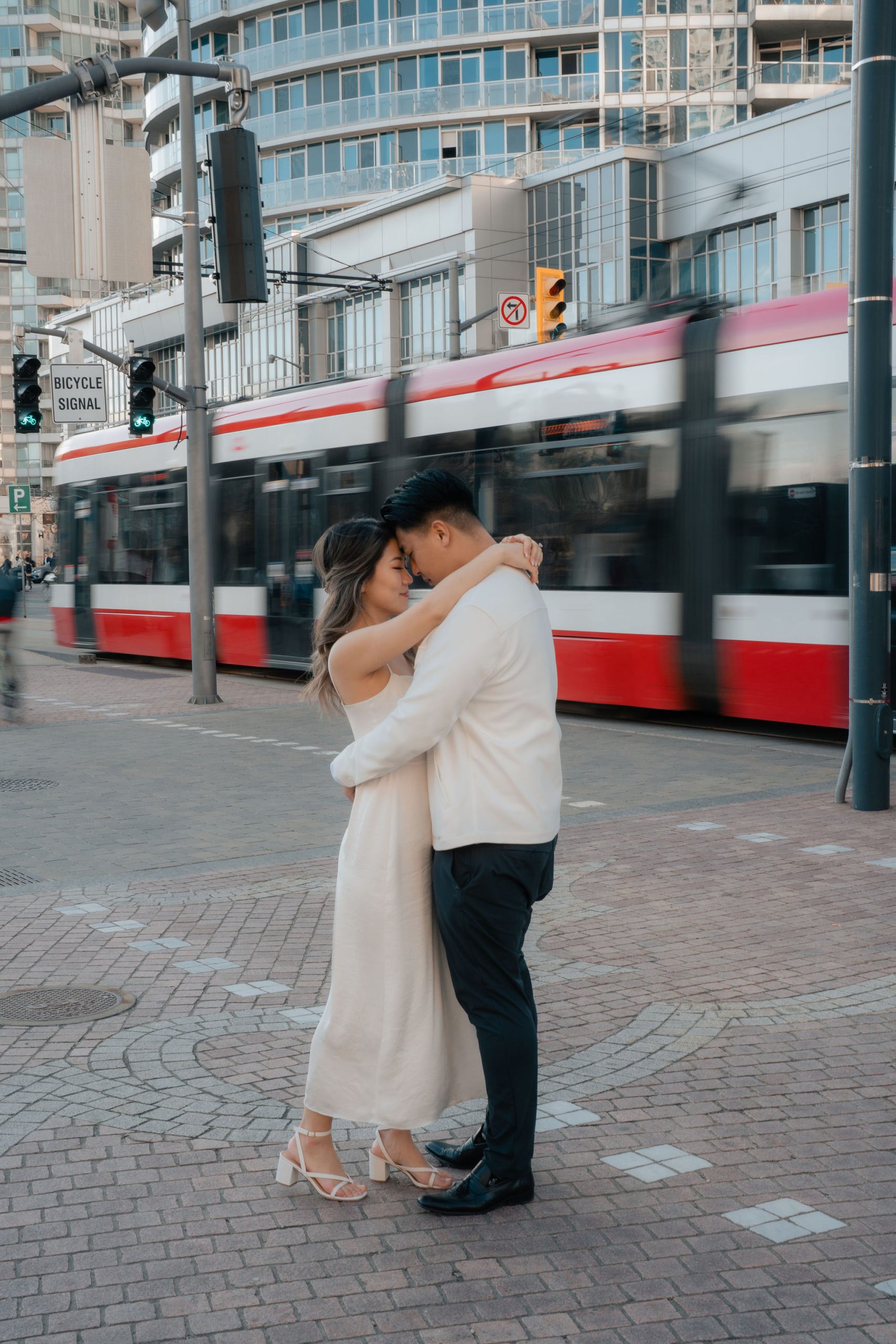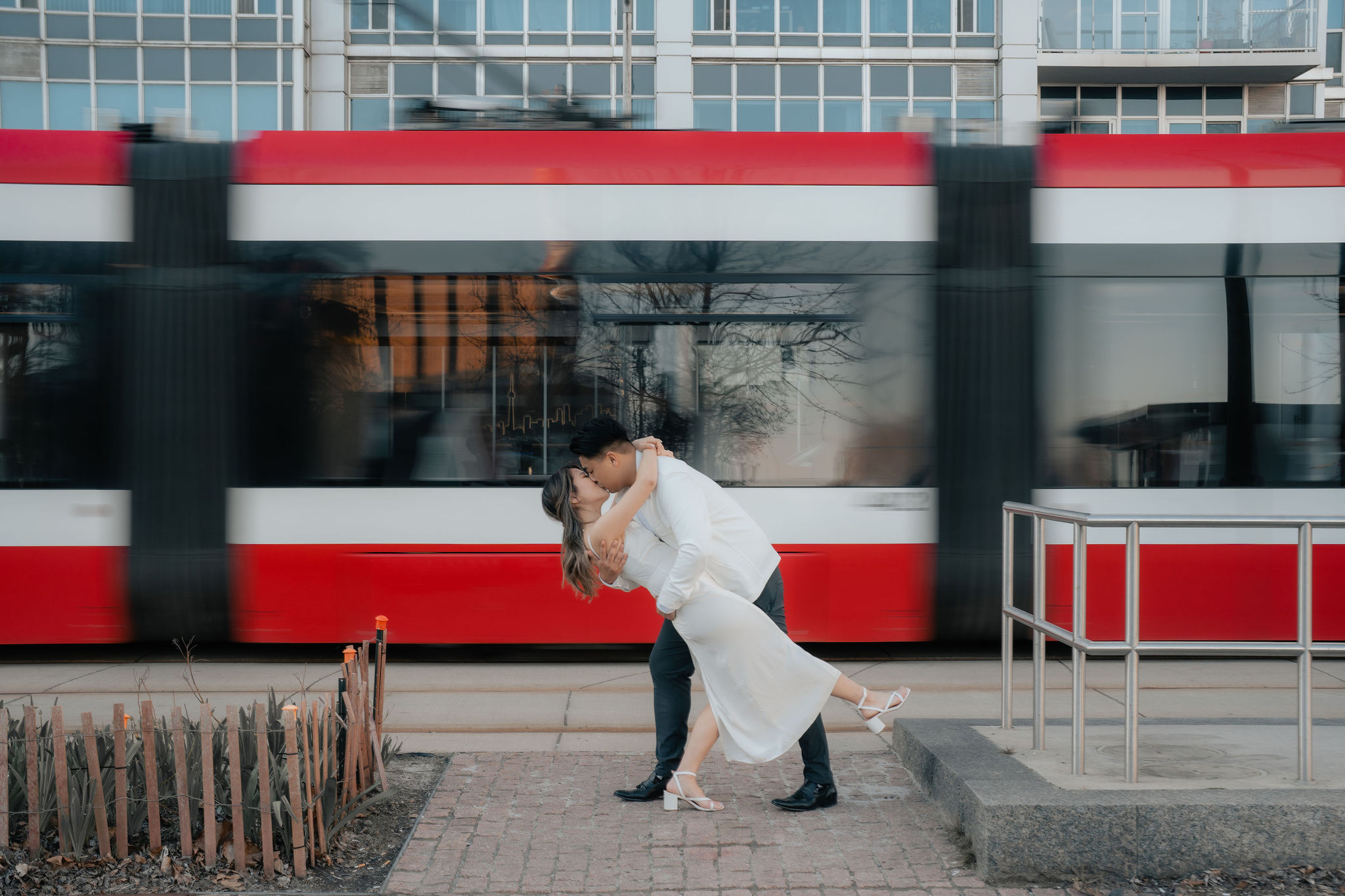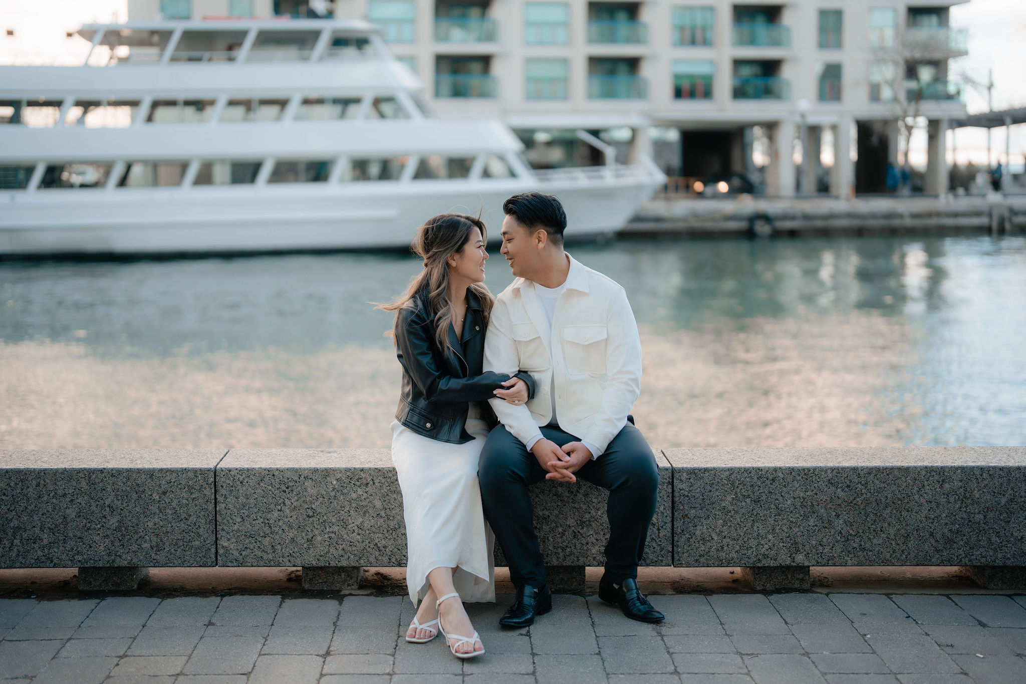 For their photoshoot, they decided to have it at the Distillery Historic District. Christina looked like a Disney princess herself. She wore a white silken dress and a studded leather jacket over it. Okay, maybe she looked more like a punk-rock Disney princess, but beautiful regardless! And Sean looked dashing as well. He wore a white relaxed jacket with a simple tee and black pants.