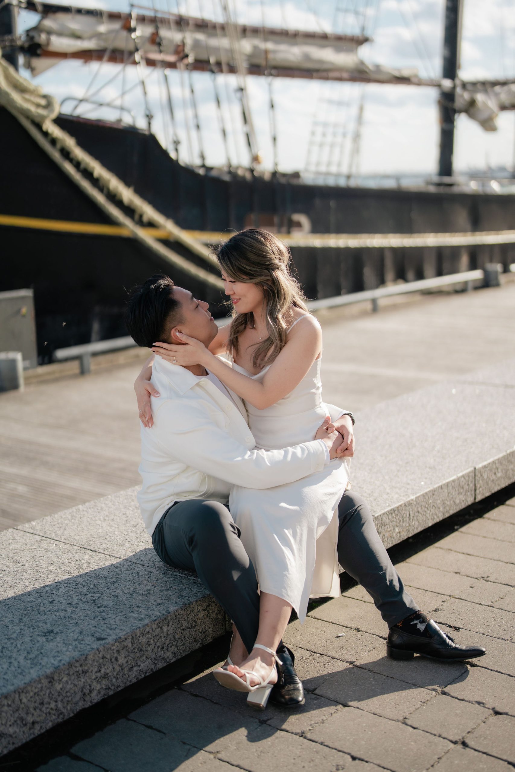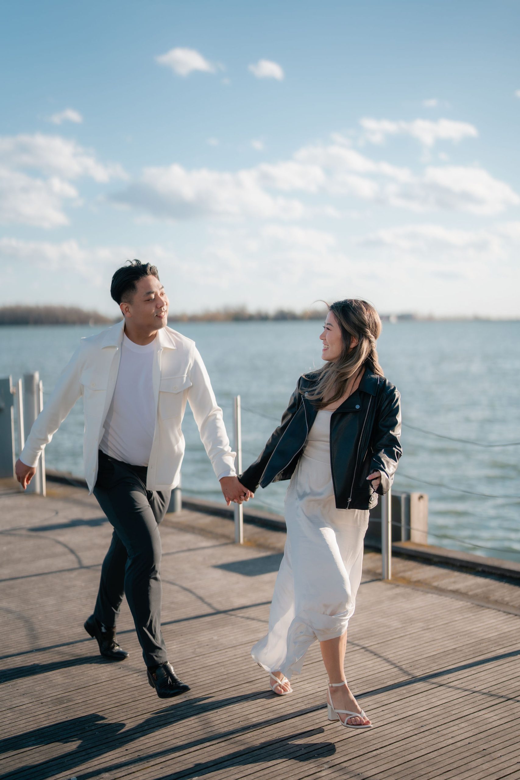 After taking enough pictures of them walking around the district, I decided to take them out on to the docks. The water looked so calm, steady, and clear. And the wind wasn’t too harsh, so we were able to avoid the hassle of their hair flying around everywhere. The day was so beautiful, I couldn’t help but take a picture of them running around while holding hands.
