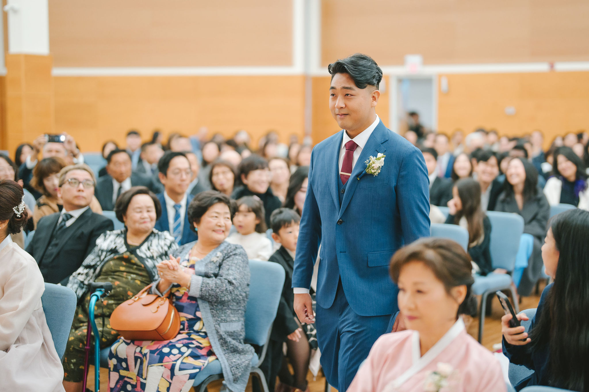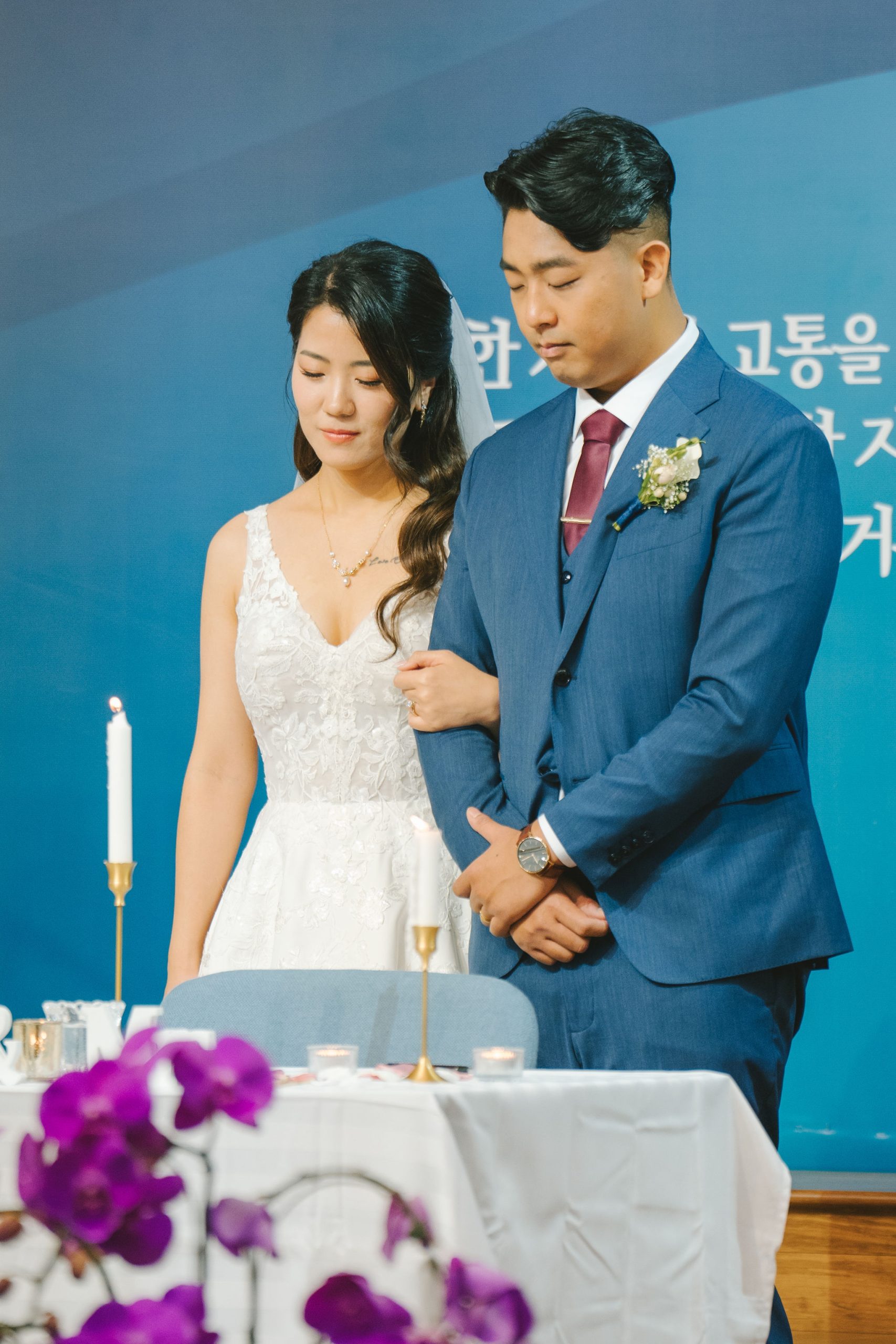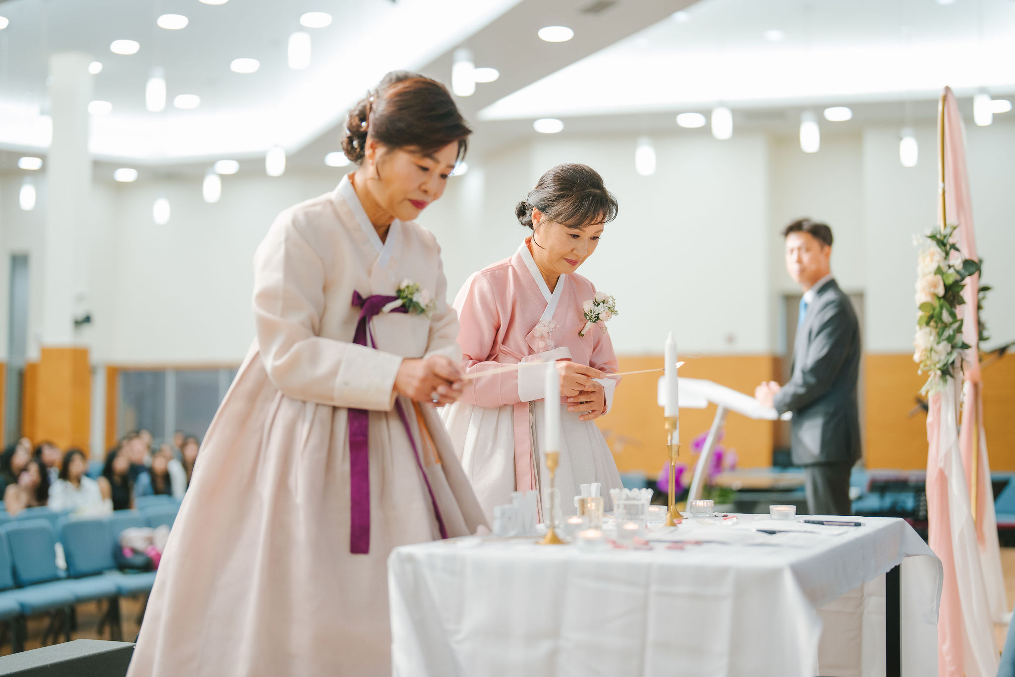 Sean and Christina looked so wonderful. Sean wore a bluegreen suit, and Christina had a lace wedding gown. And while they were the stars of the day, their moms looked so adorable in their traditional Korean wear! I couldn’t help but snap multiple photos of their moms, especially while they were waiting around for the guests and greeting each and every one of them.