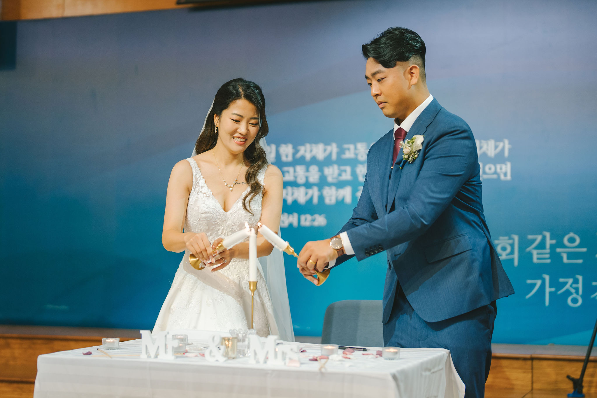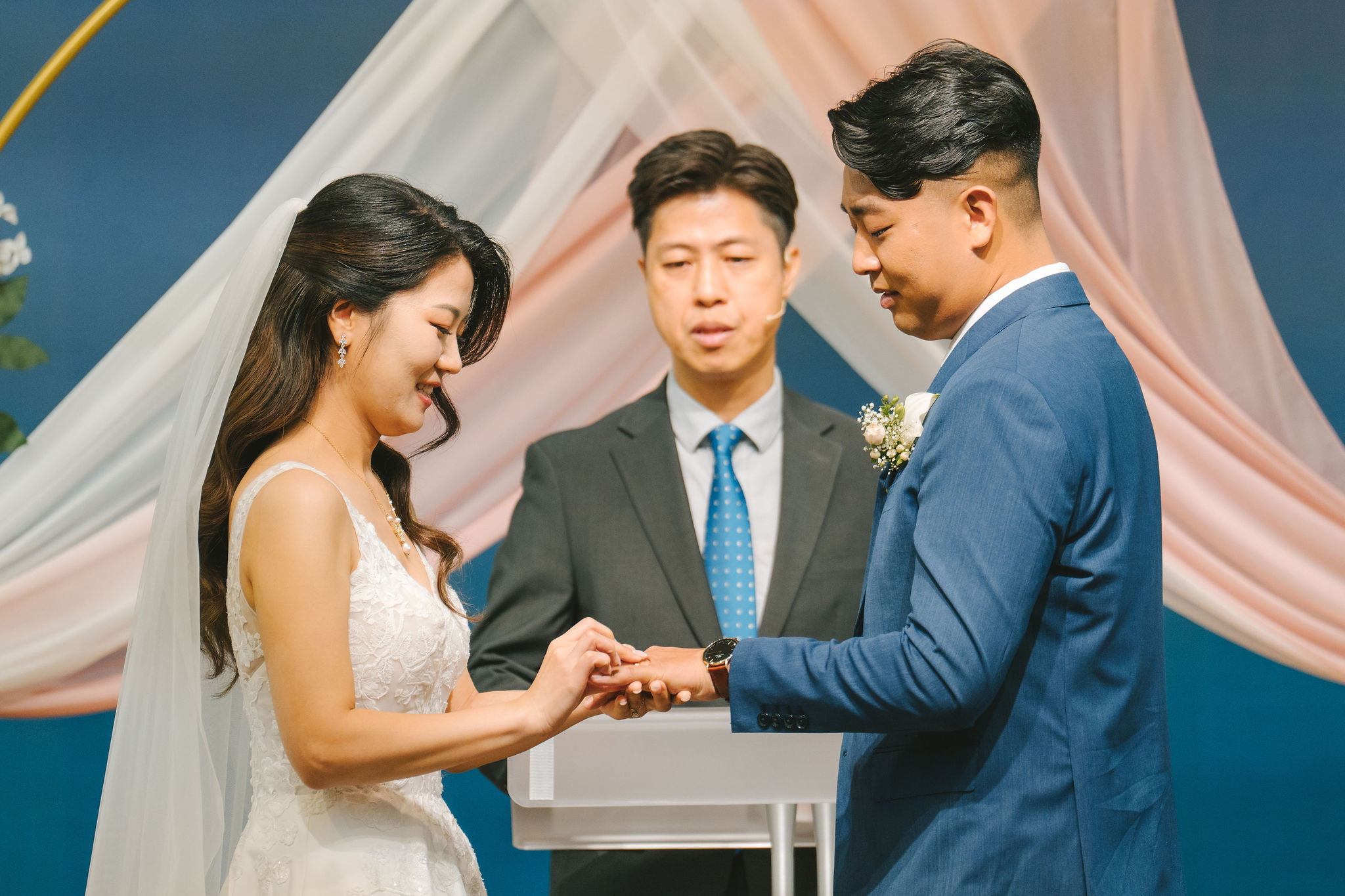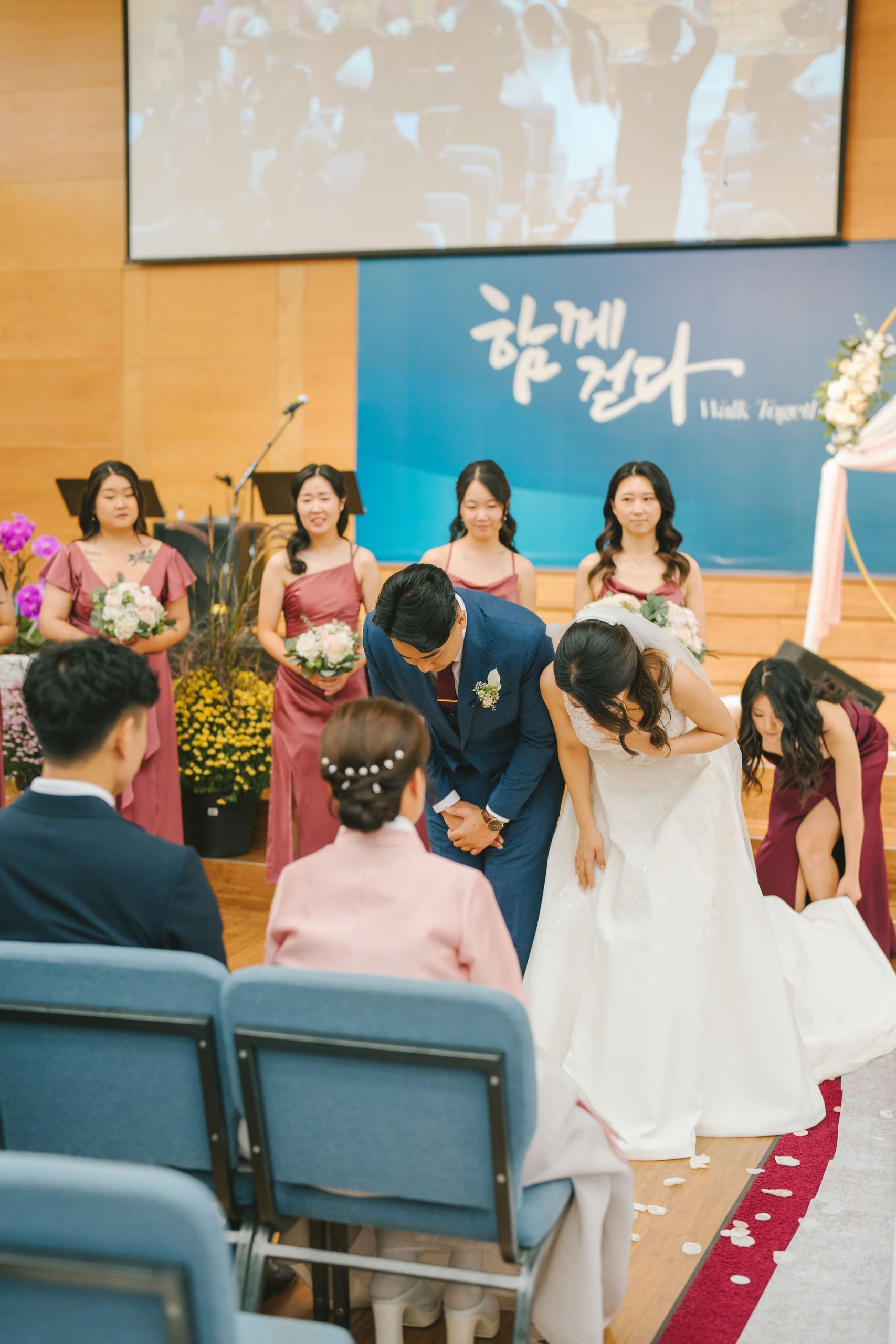 Sean and Christina looked so wonderful. Sean wore a bluegreen suit, and Christina had a lace wedding gown. And while they were the stars of the day, their moms looked so adorable in their traditional Korean wear! I couldn’t help but snap multiple photos of their moms, especially while they were waiting around for the guests and greeting each and every one of them.